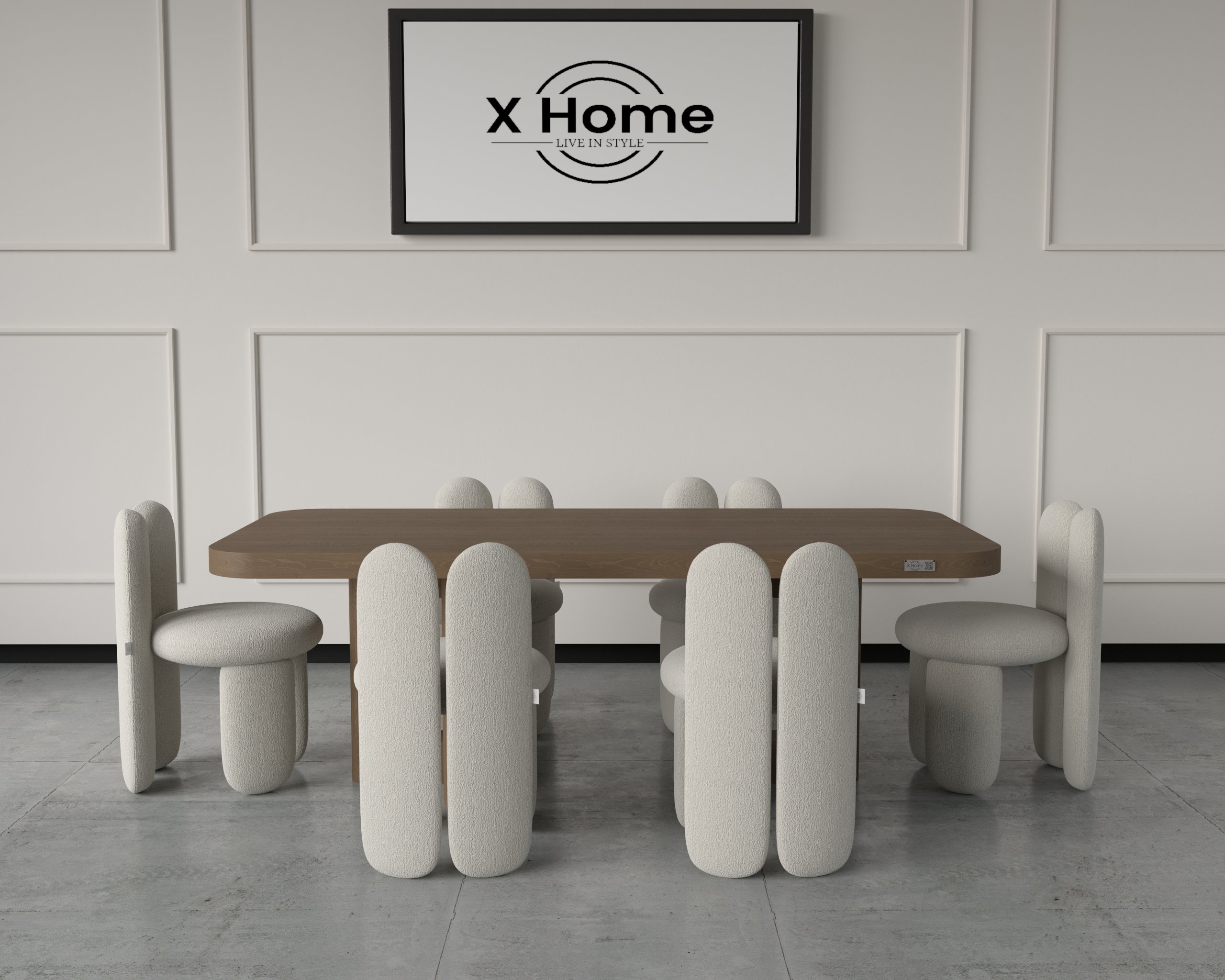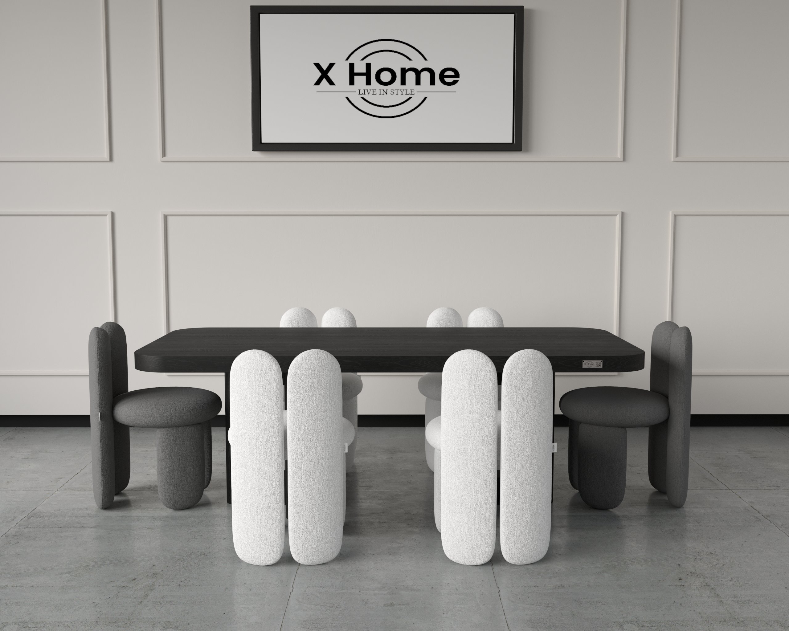 The Arcadia Dining Set combines a sleek, structurally refined table with uniquely rounded boucle chairs for a striking contemporary aesthetic. Each piece is crafted with premium materials, ensuring durability and comfort. Ideal for interiors seeking a balance of modern elegance and artistic design.