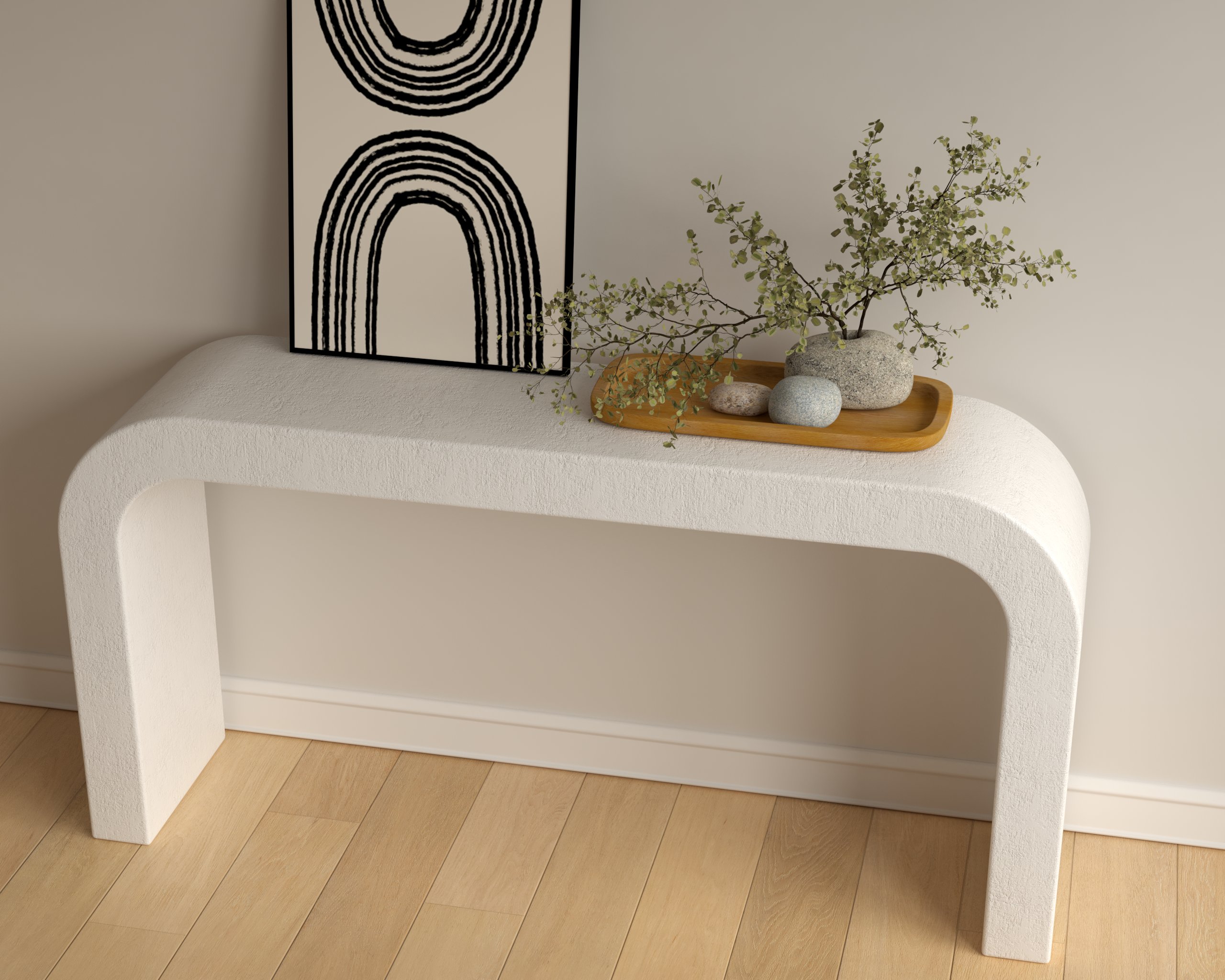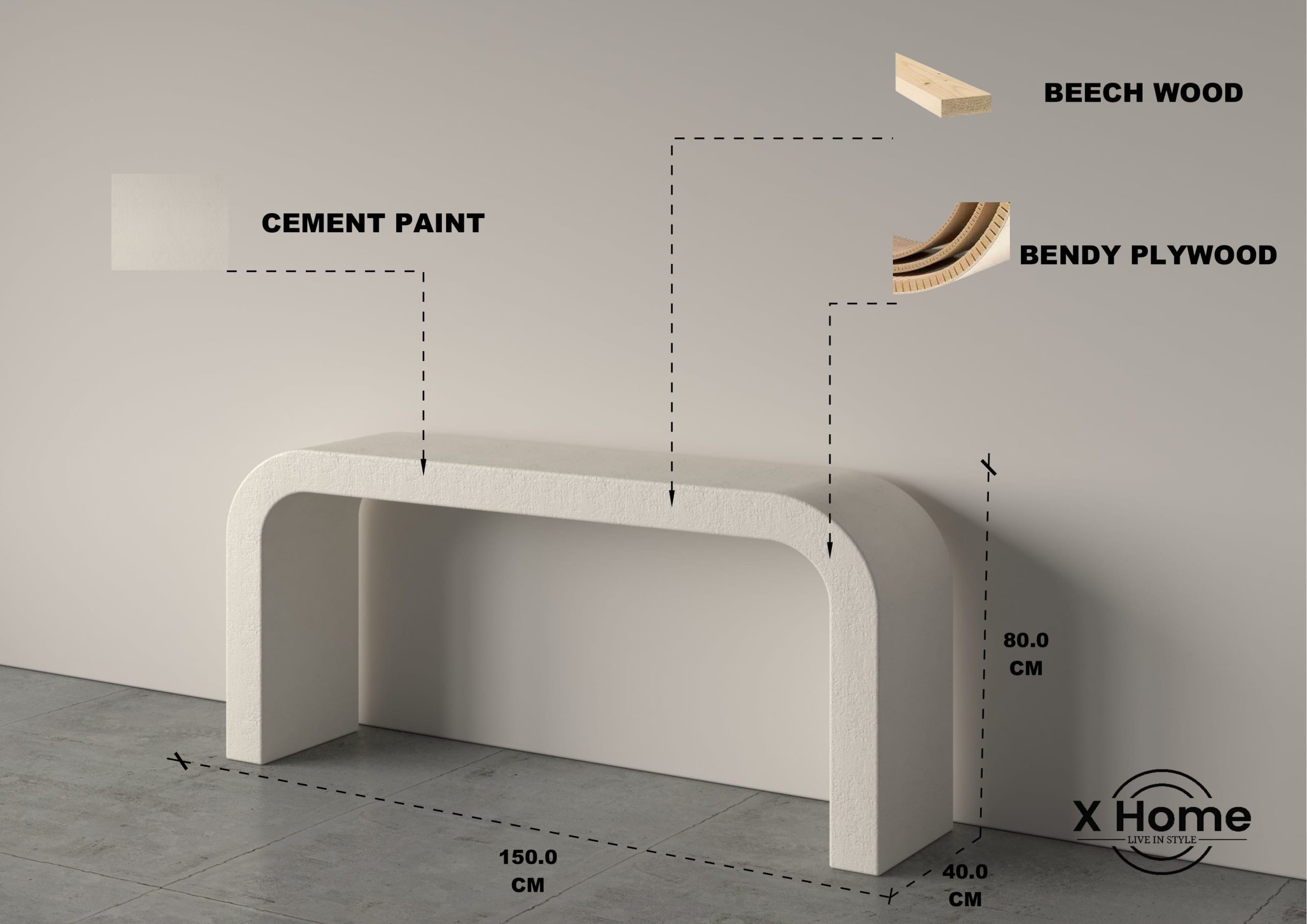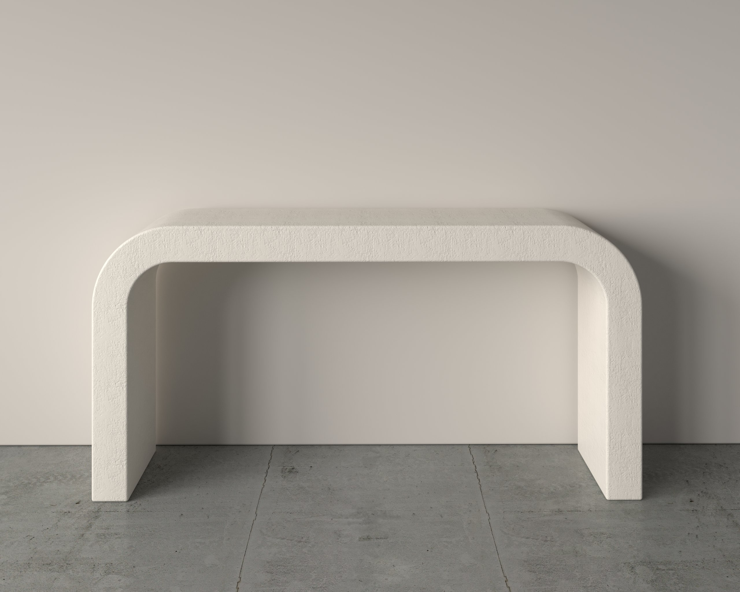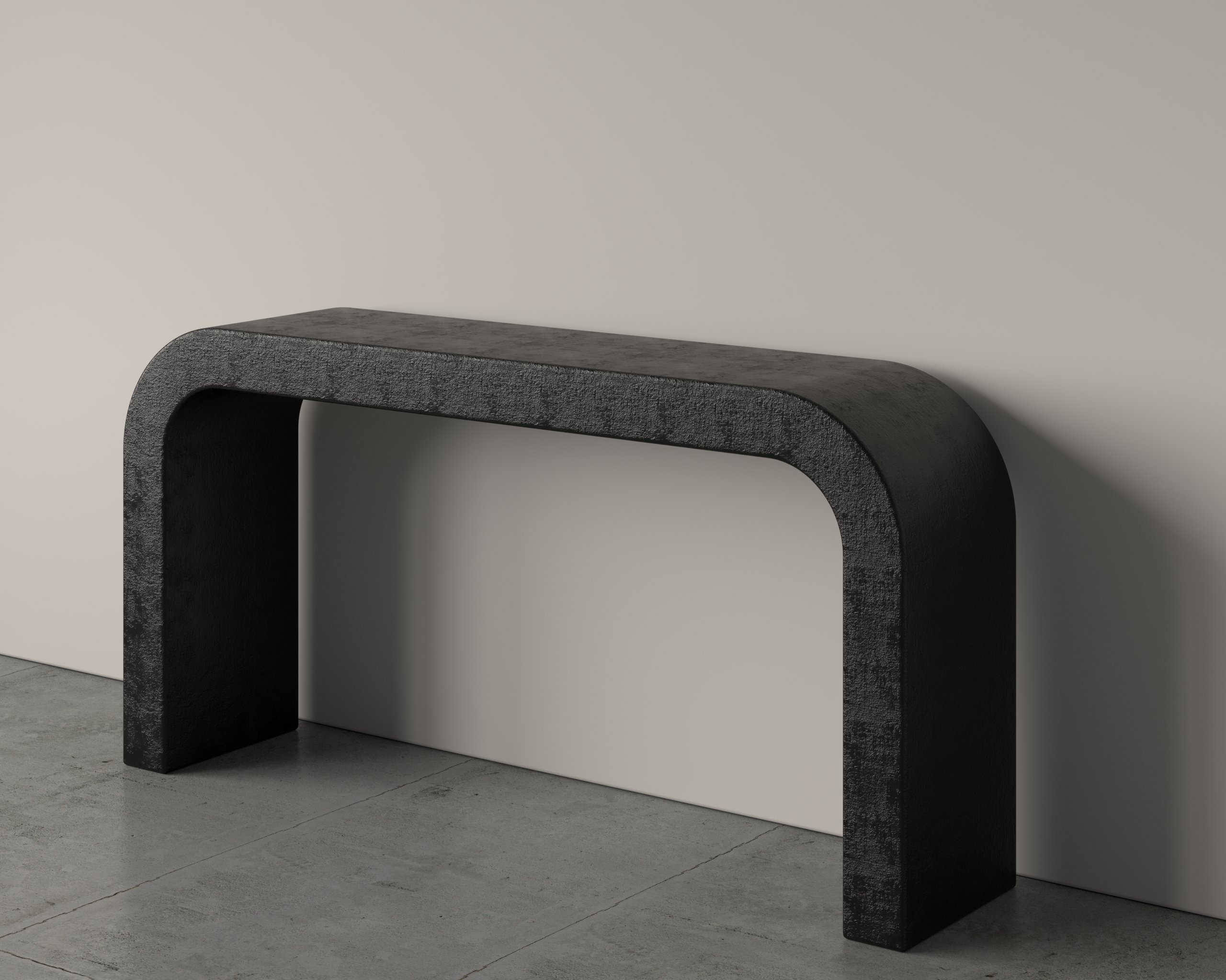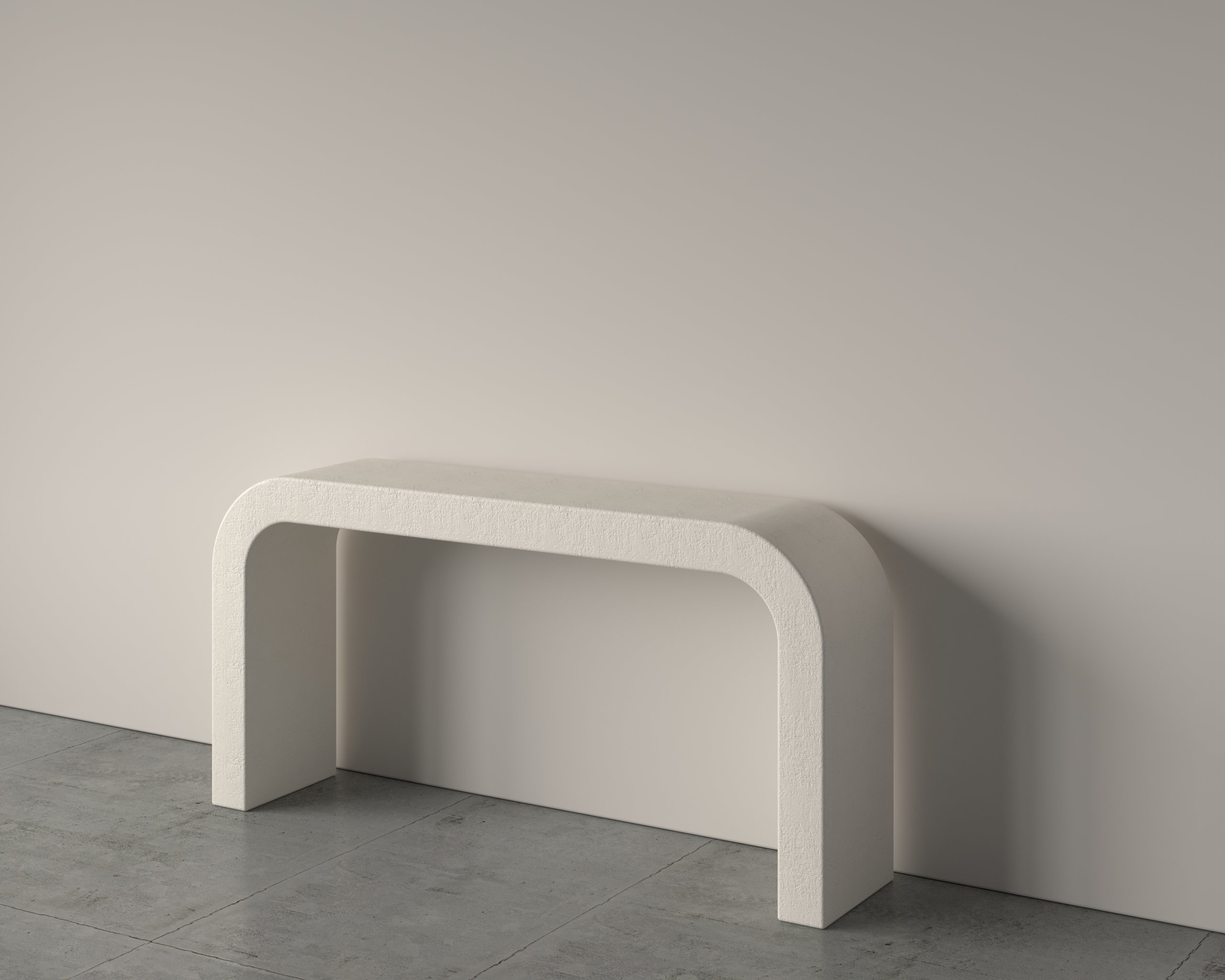 This Arcus console features an elegant arc design that captures the essence of modern minimalism and sculptural sophistication. The smooth, continuous curves create a harmonious flow, while the solid structure adds a sense of balance and presence. Thoughtfully crafted to complement contemporary interiors, it serves as both a functional surface and an artistic statement, enhancing any space with its refined and timeless appeal.