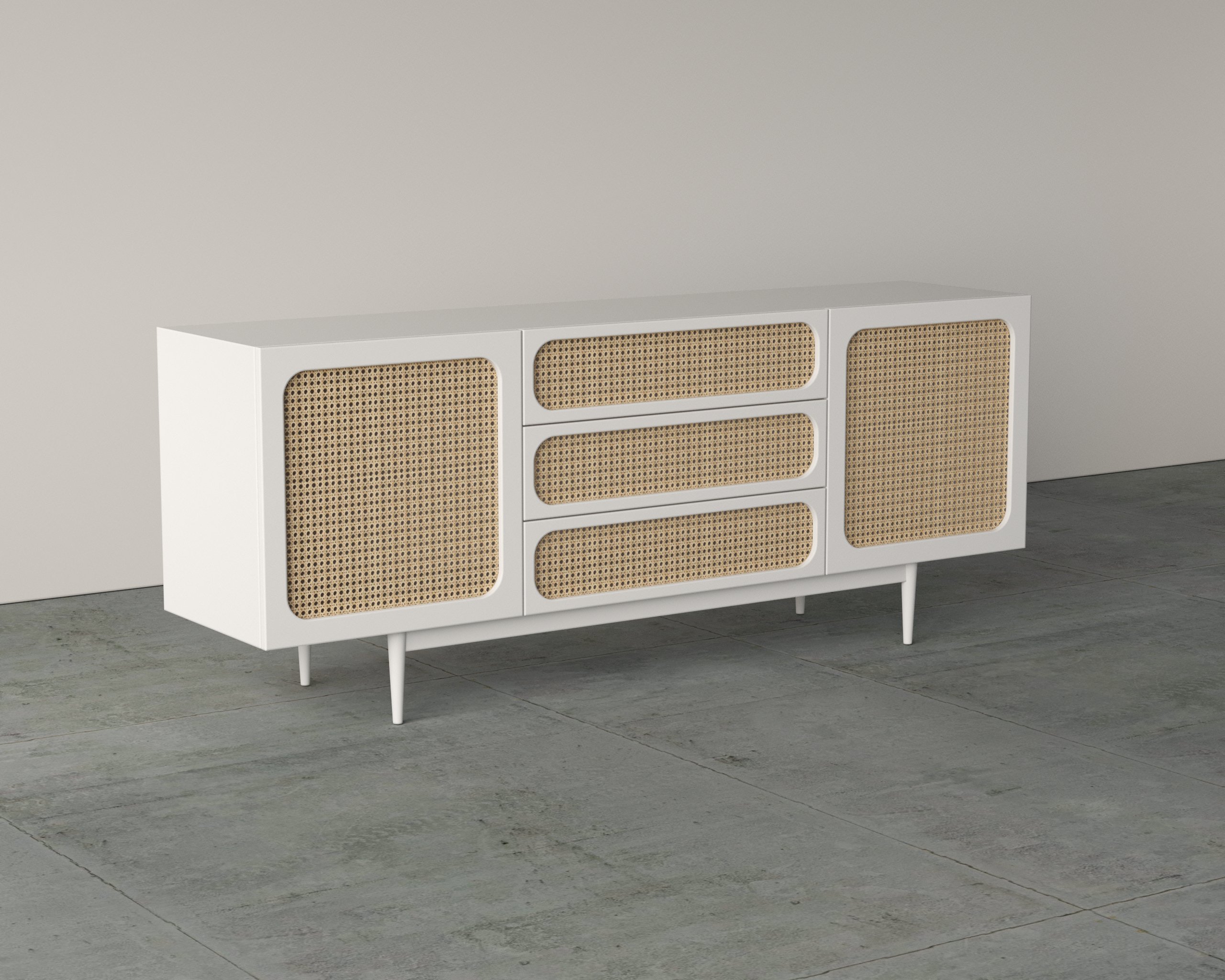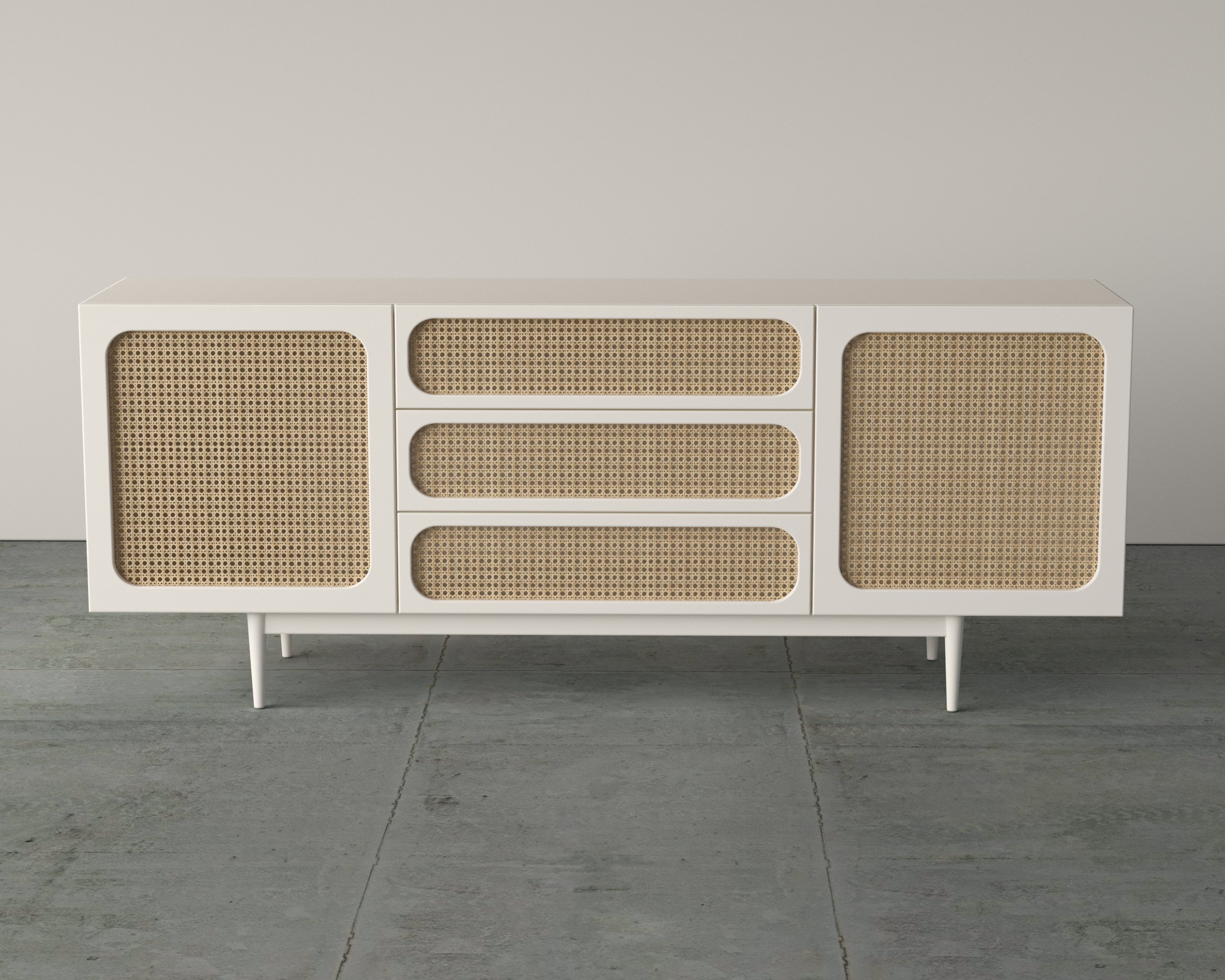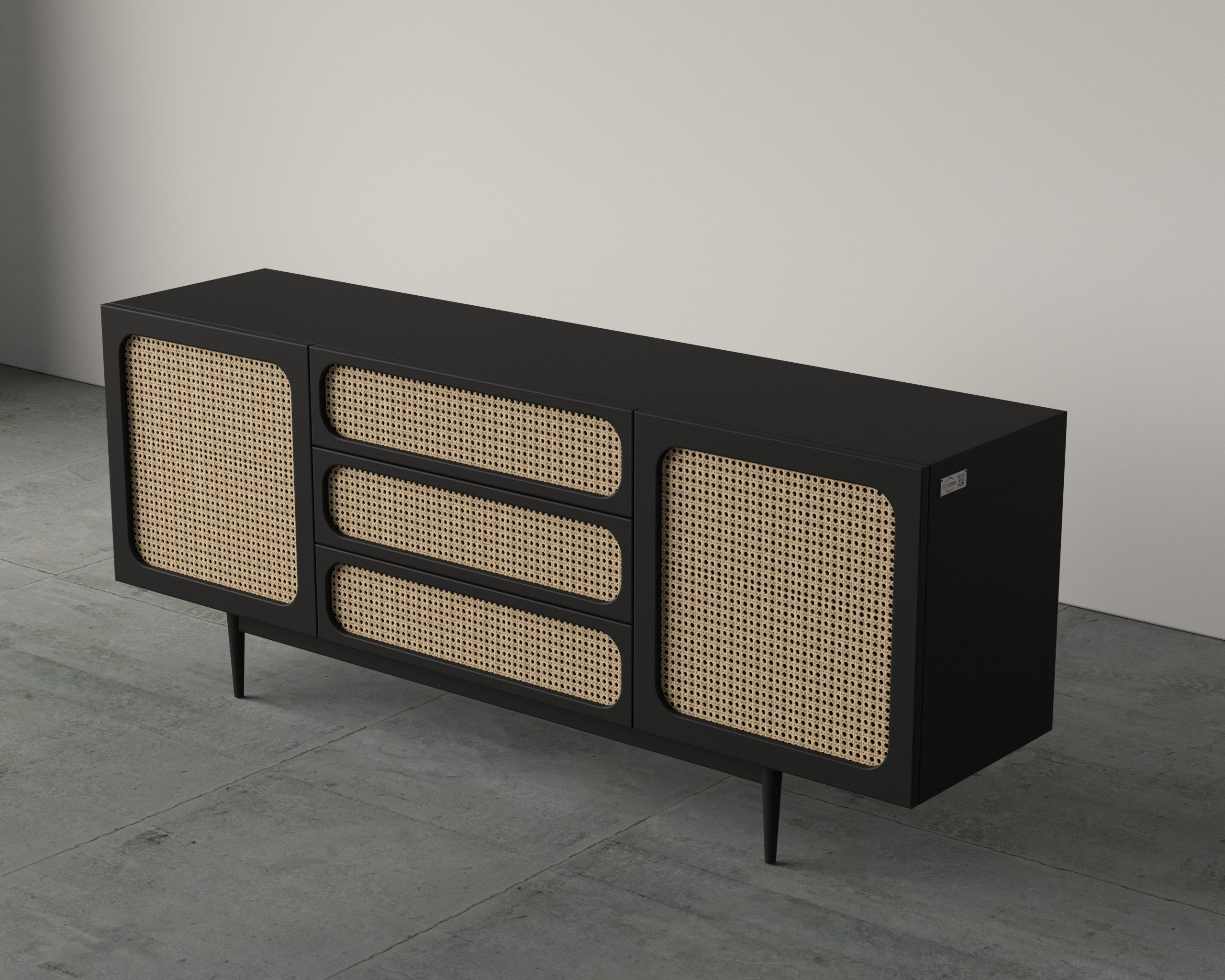Crafted with a modern silhouette and artisanal detailing, the Aurex Dresser showcases woven rattan wood–finished doors and drawers for a distinctive look. Its well-planned layout provides generous storage while maintaining a clean, architectural form. Designed to elevate contemporary living spaces with ease.