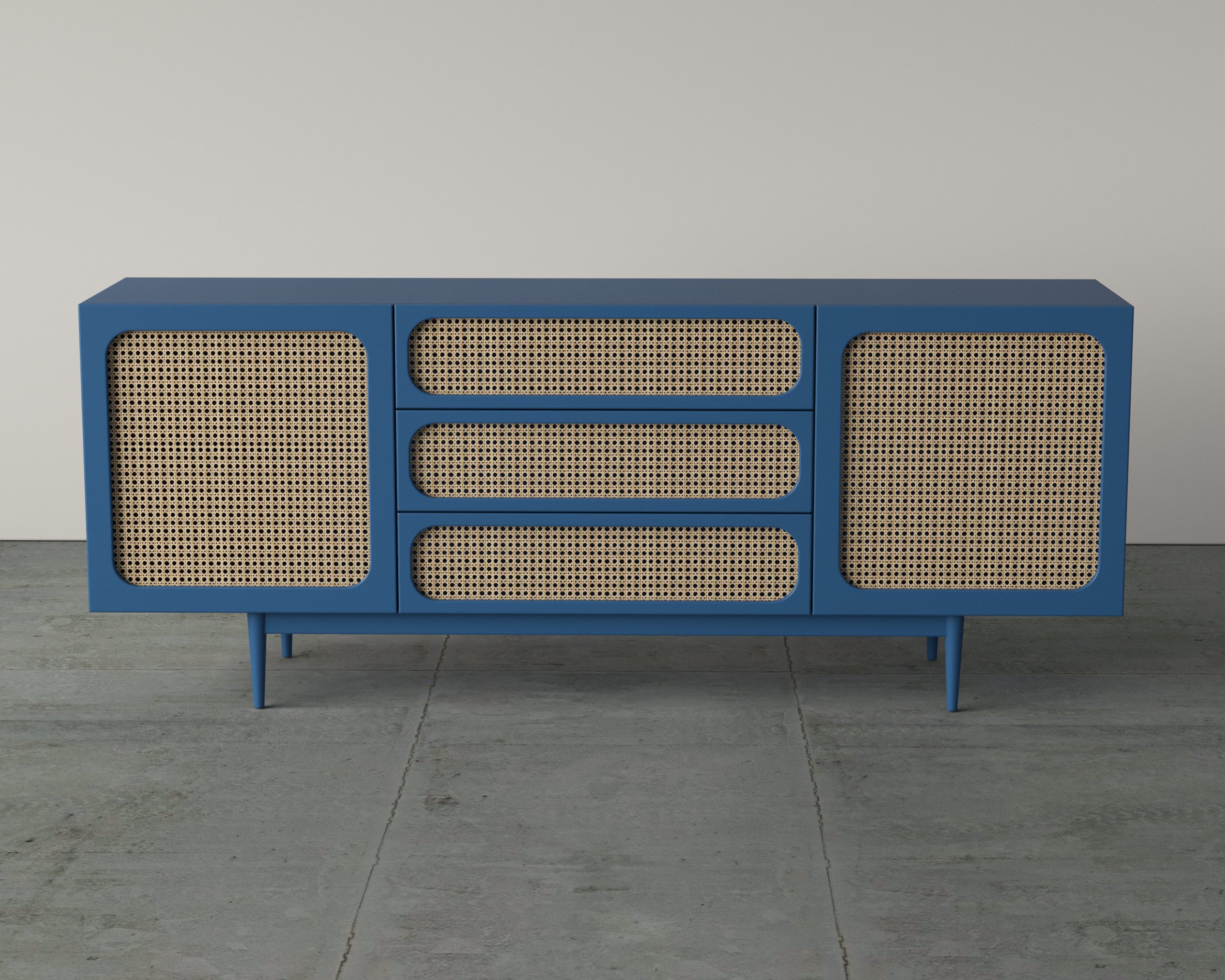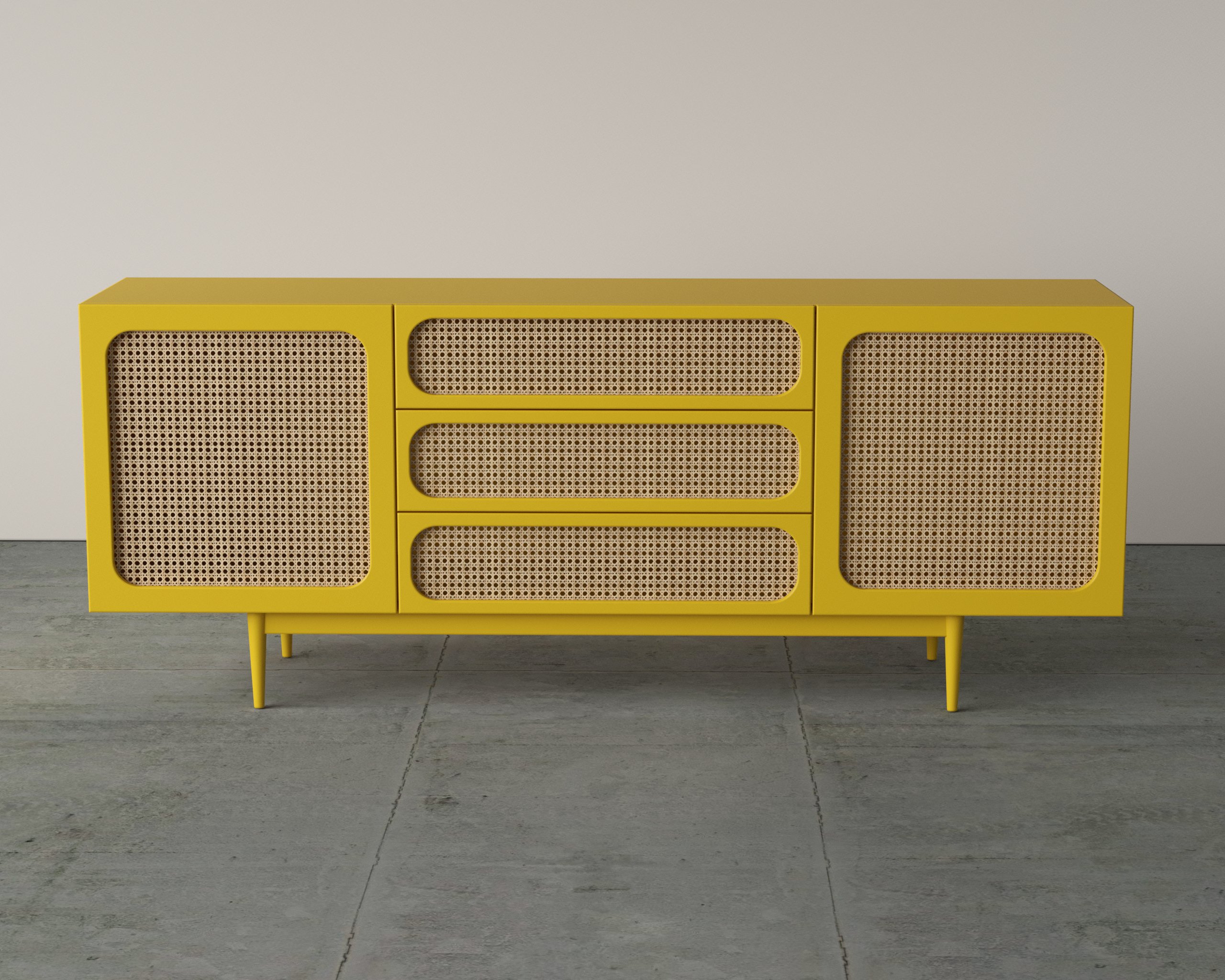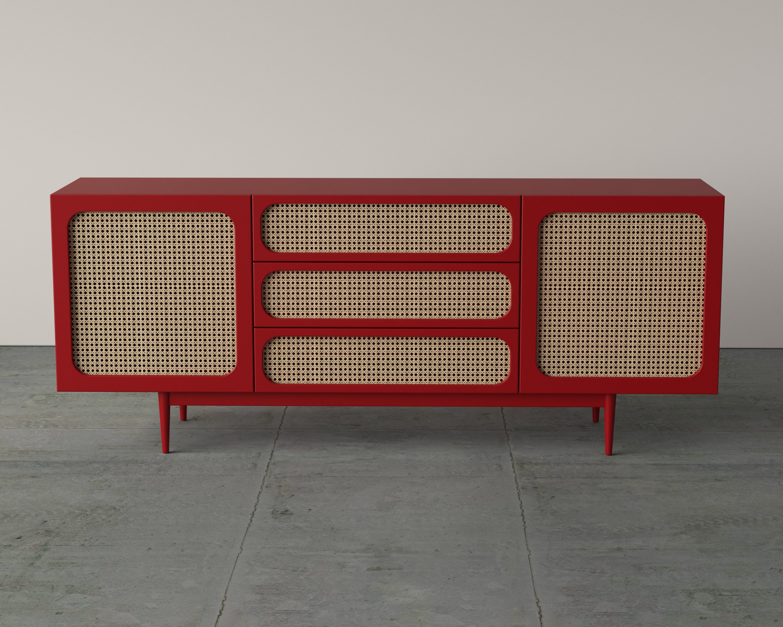 Crafted with a modern silhouette and artisanal detailing, the Aurex Dresser showcases woven rattan wood–finished doors and drawers for a distinctive look. Its well-planned layout provides generous storage while maintaining a clean, architectural form. Designed to elevate contemporary living spaces with ease.