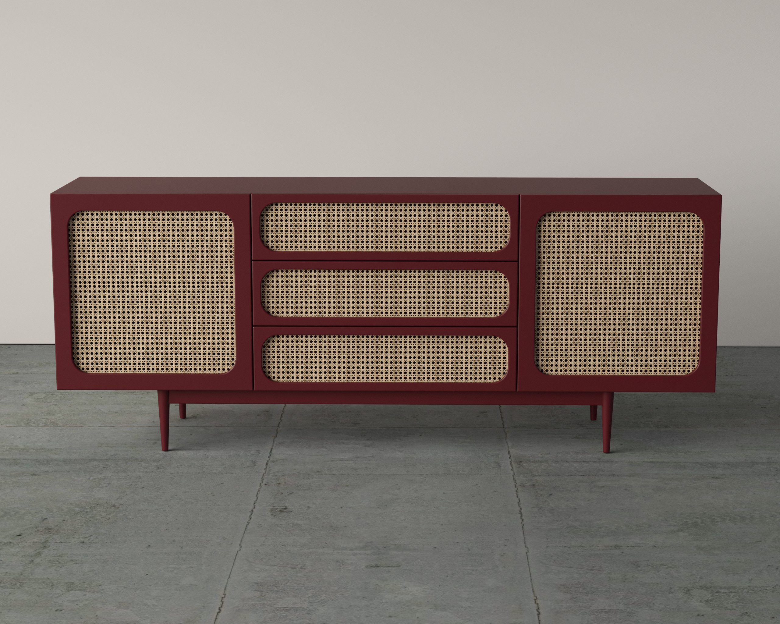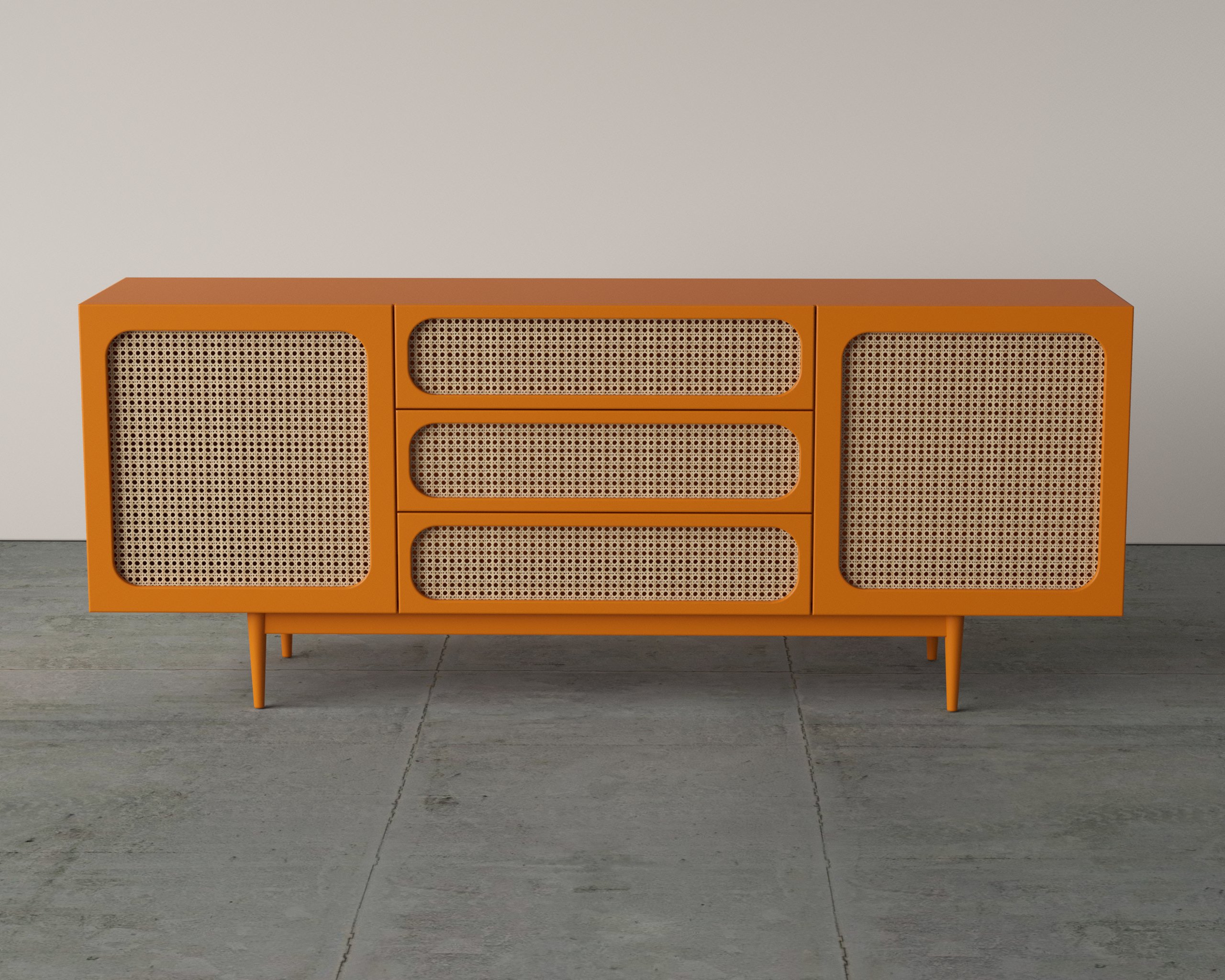 The Aurex Dresser features refined rattan wood–finished panels combined with structured storage, offering a perfect balance of elegance and everyday functionality.