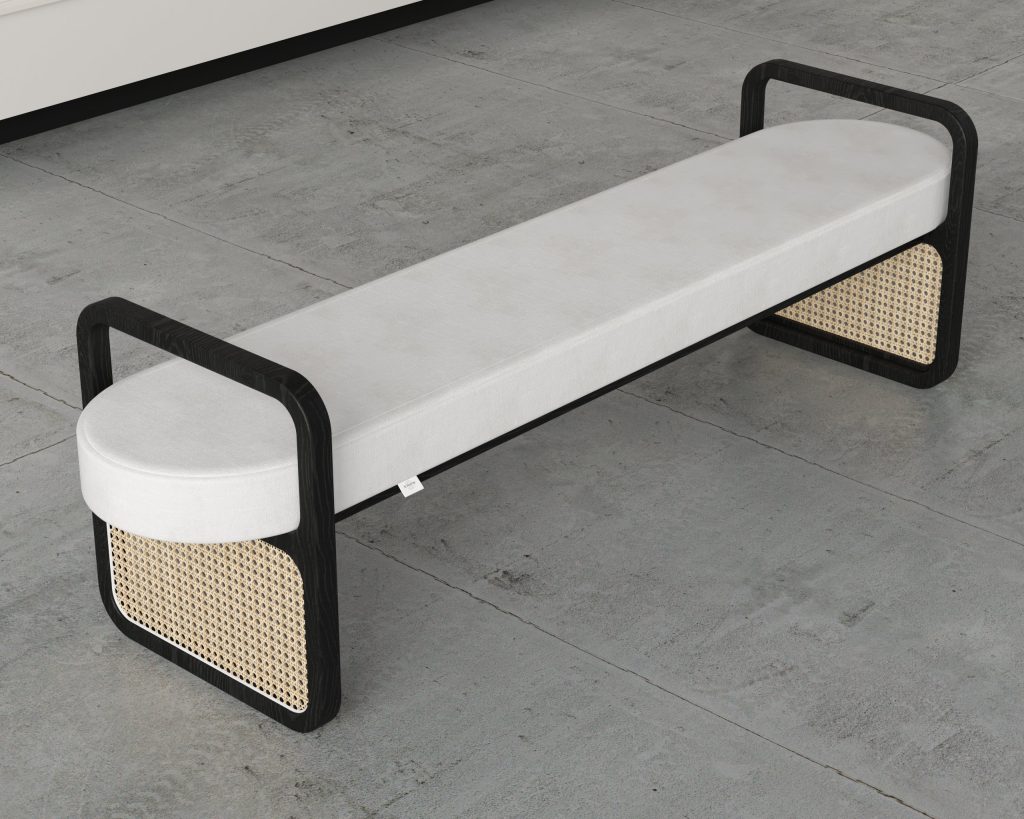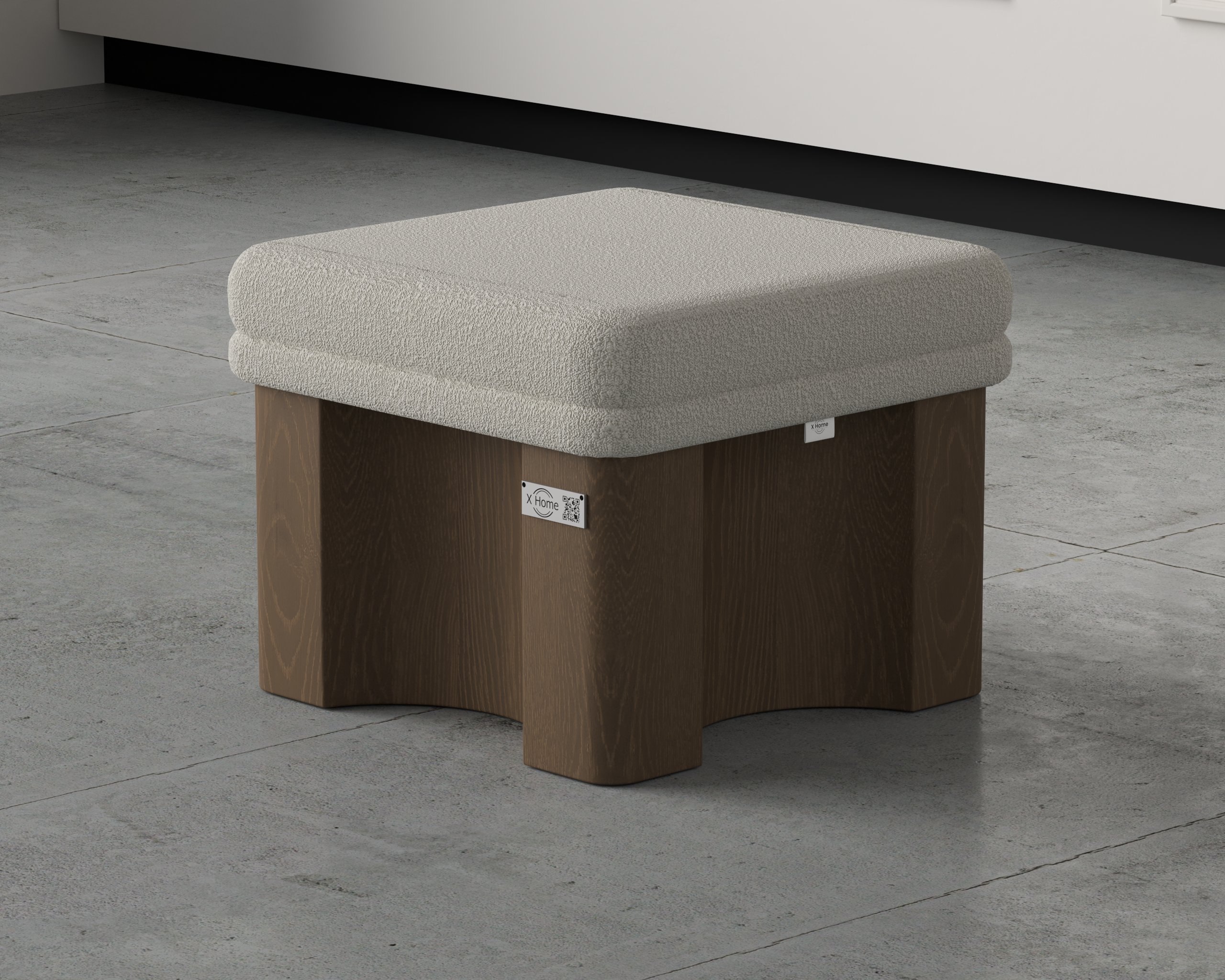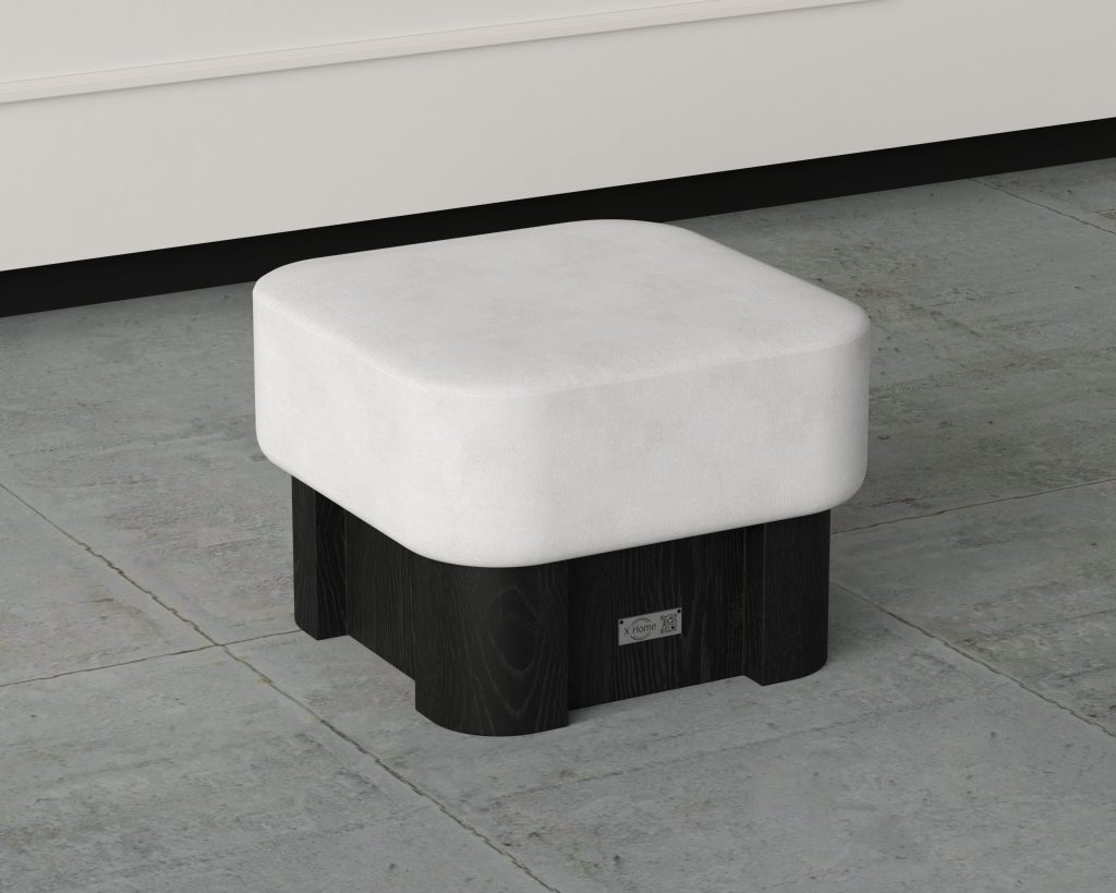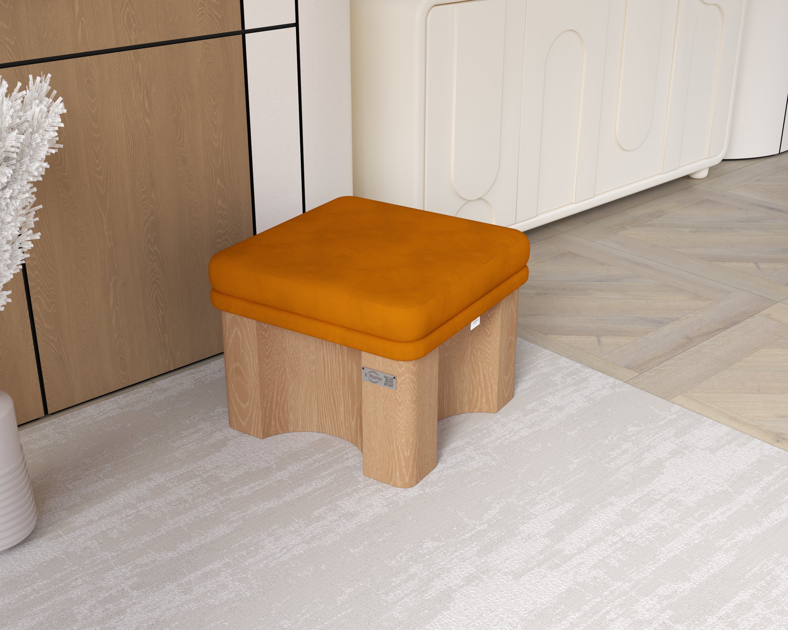 A sculpted cube-style bench combining a softly contoured seat with a bold architectural wooden base. Designed to add comfort and character to any modern interior.