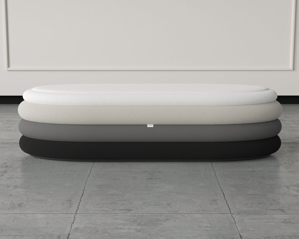 The Bloccurv Bench features a plush boucle-upholstered top resting on a distinctly curved wooden block base, creating a unique fusion of softness and structure. Its balanced proportions make it an ideal accent piece for living rooms, bedrooms, and lounge spaces. Built with premium foam and red oak, it delivers durability, stability, and refined visual appeal.