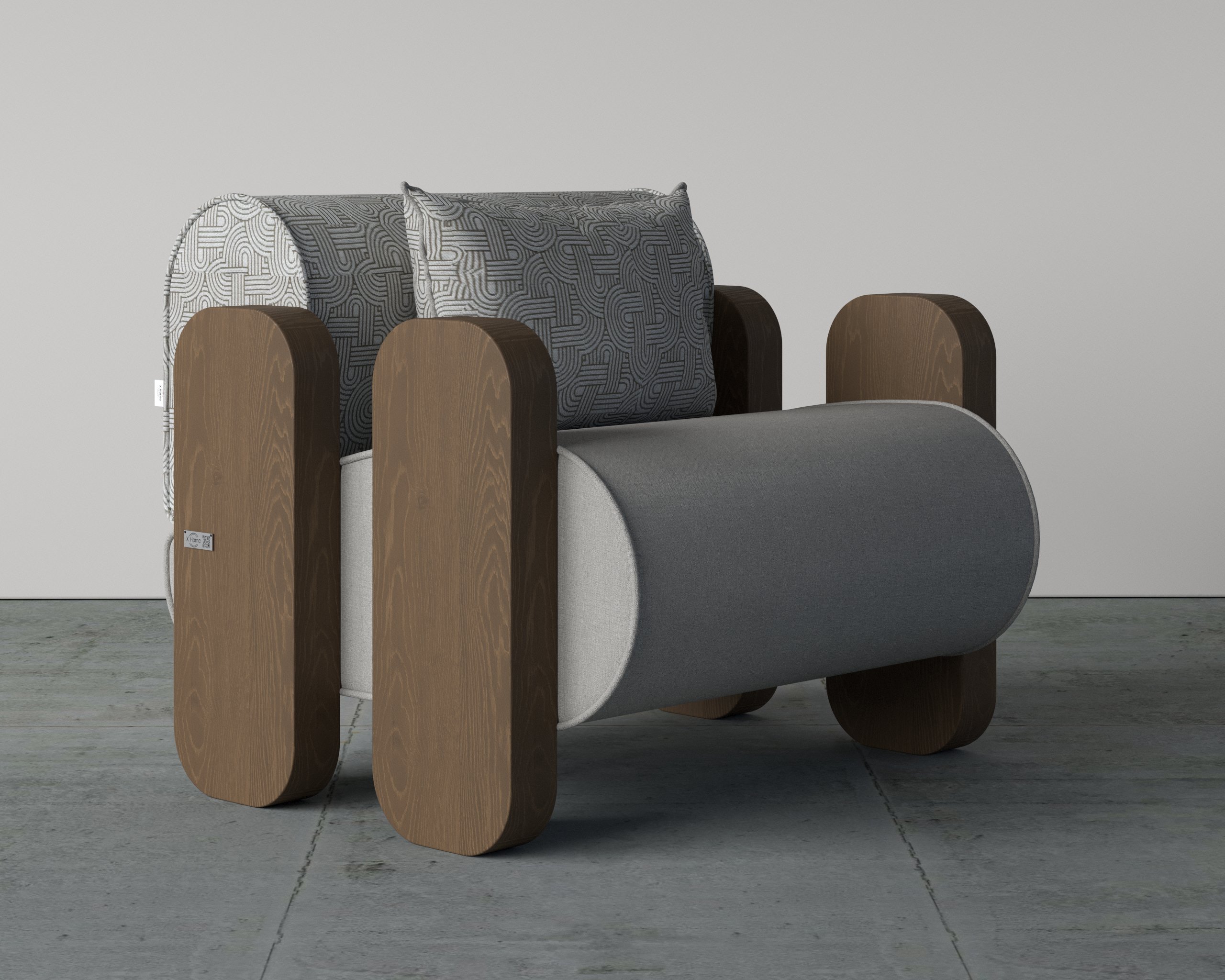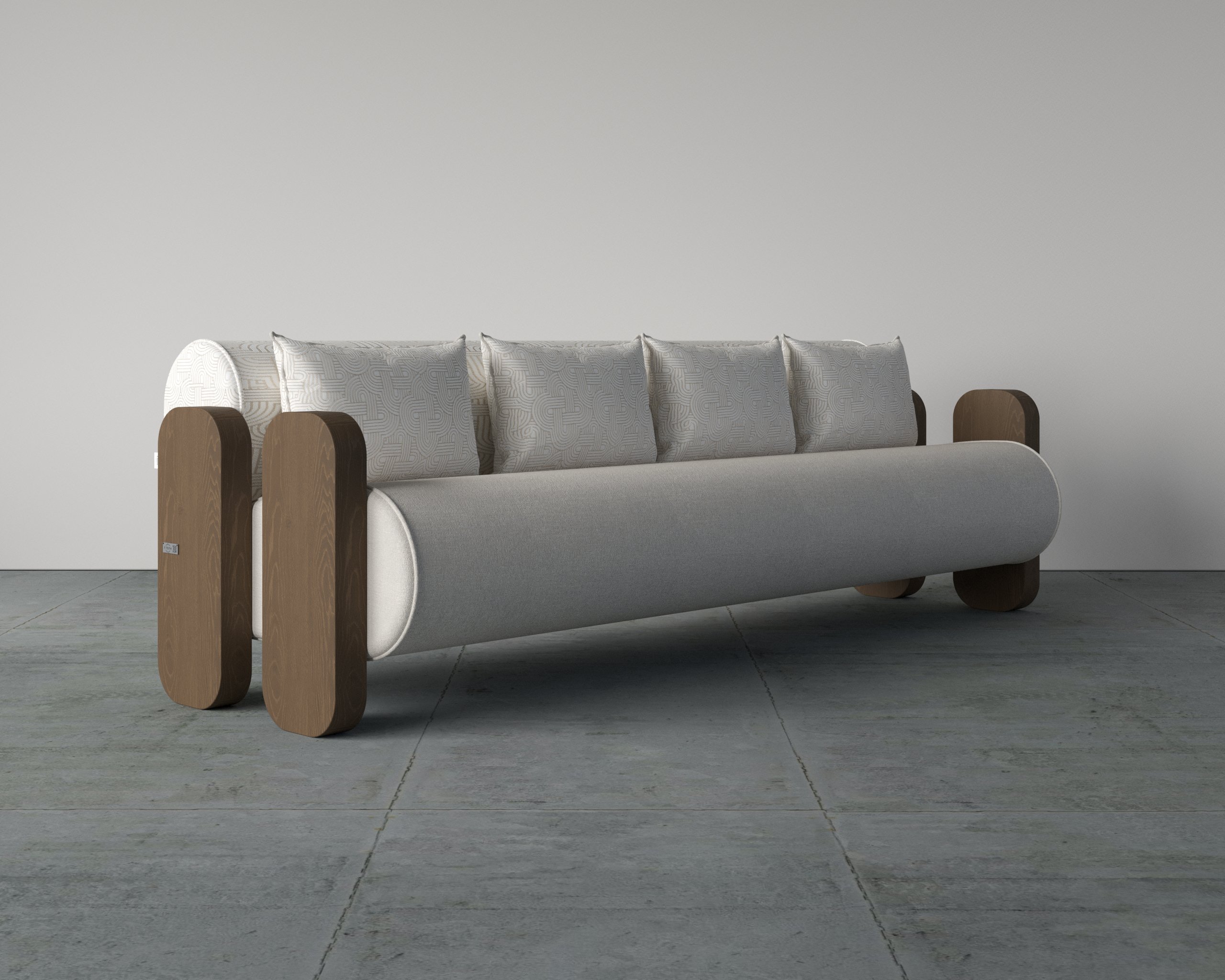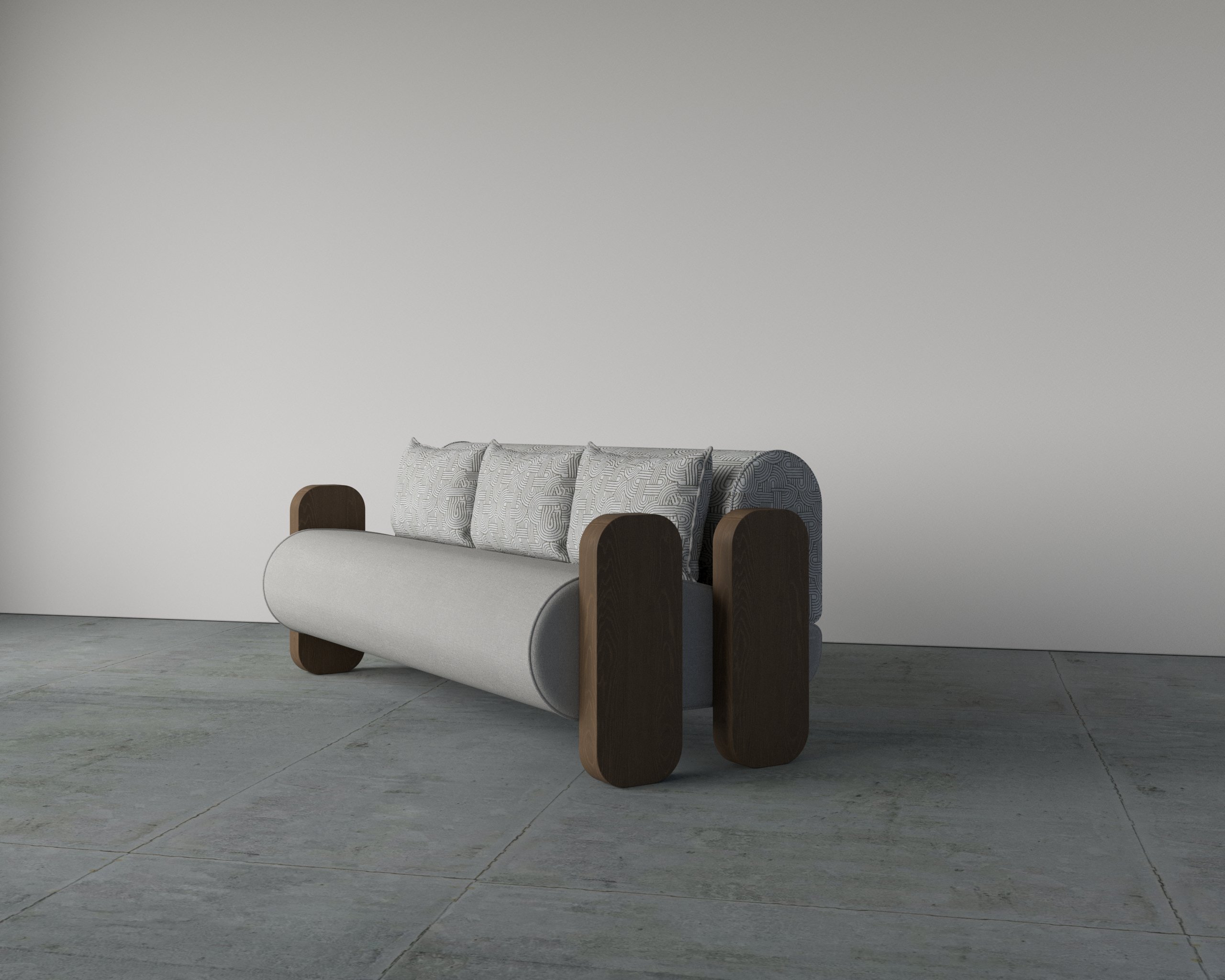 The Bolster Arm Single Seater Sofa is a statement piece crafted for contemporary interiors. Its cylindrical seat profile provides ergonomic comfort, while the structured backrest and plush cushioning ensure relaxed seating. Solid wood arm elements add strength and visual contrast, giving the sofa a bold architectural presence. Upholstered in premium fabrics and supported by high-density foam, it delivers durability alongside refined aesthetics.