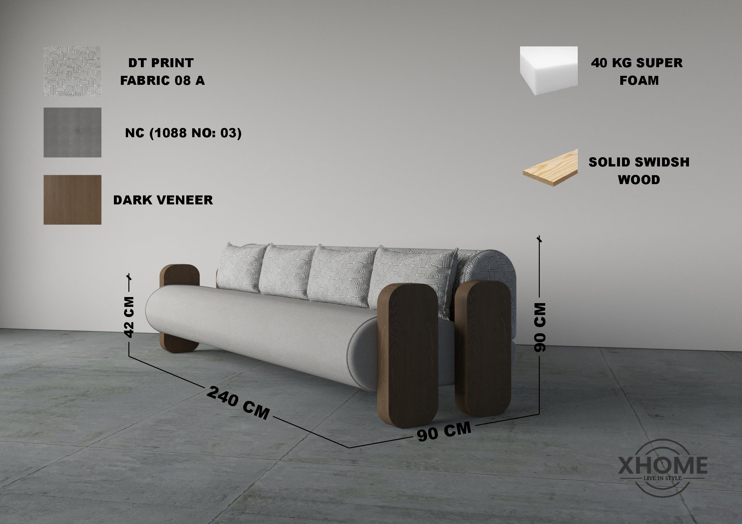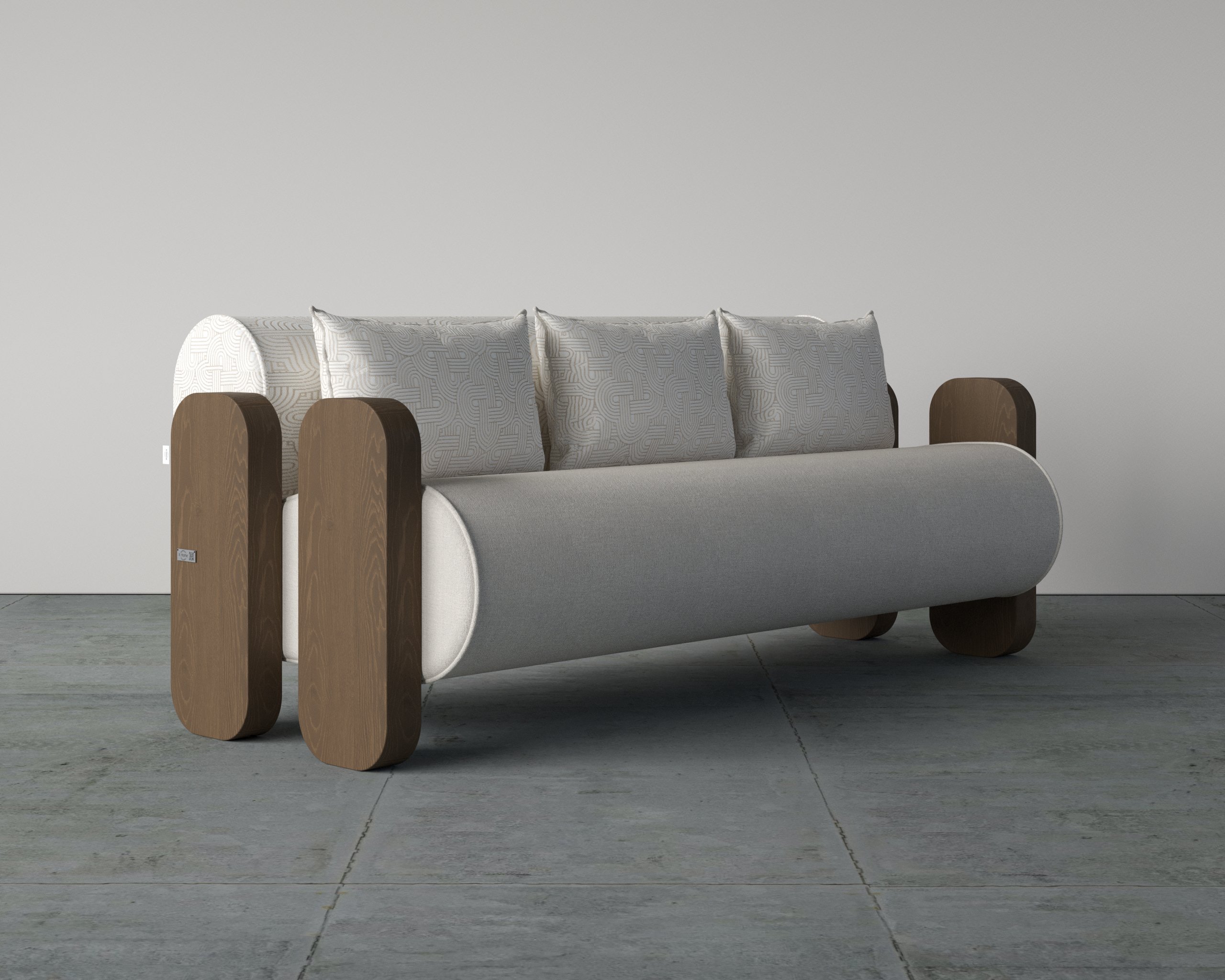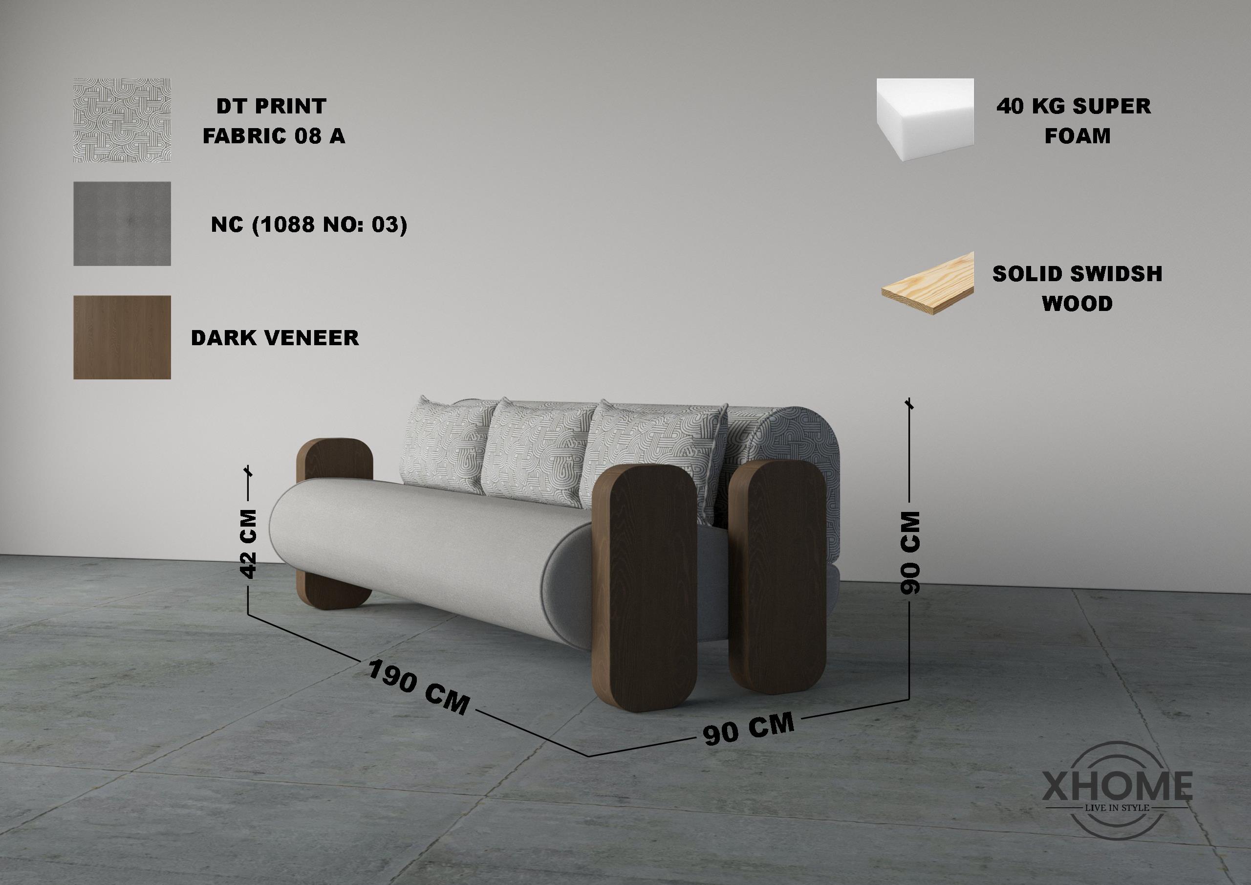 The Bolster Arm Single Seater Sofa is a statement piece crafted for contemporary interiors. Its cylindrical seat profile provides ergonomic comfort, while the structured backrest and plush cushioning ensure relaxed seating. Solid wood arm elements add strength and visual contrast, giving the sofa a bold architectural presence. Upholstered in premium fabrics and supported by high-density foam, it delivers durability alongside refined aesthetics.