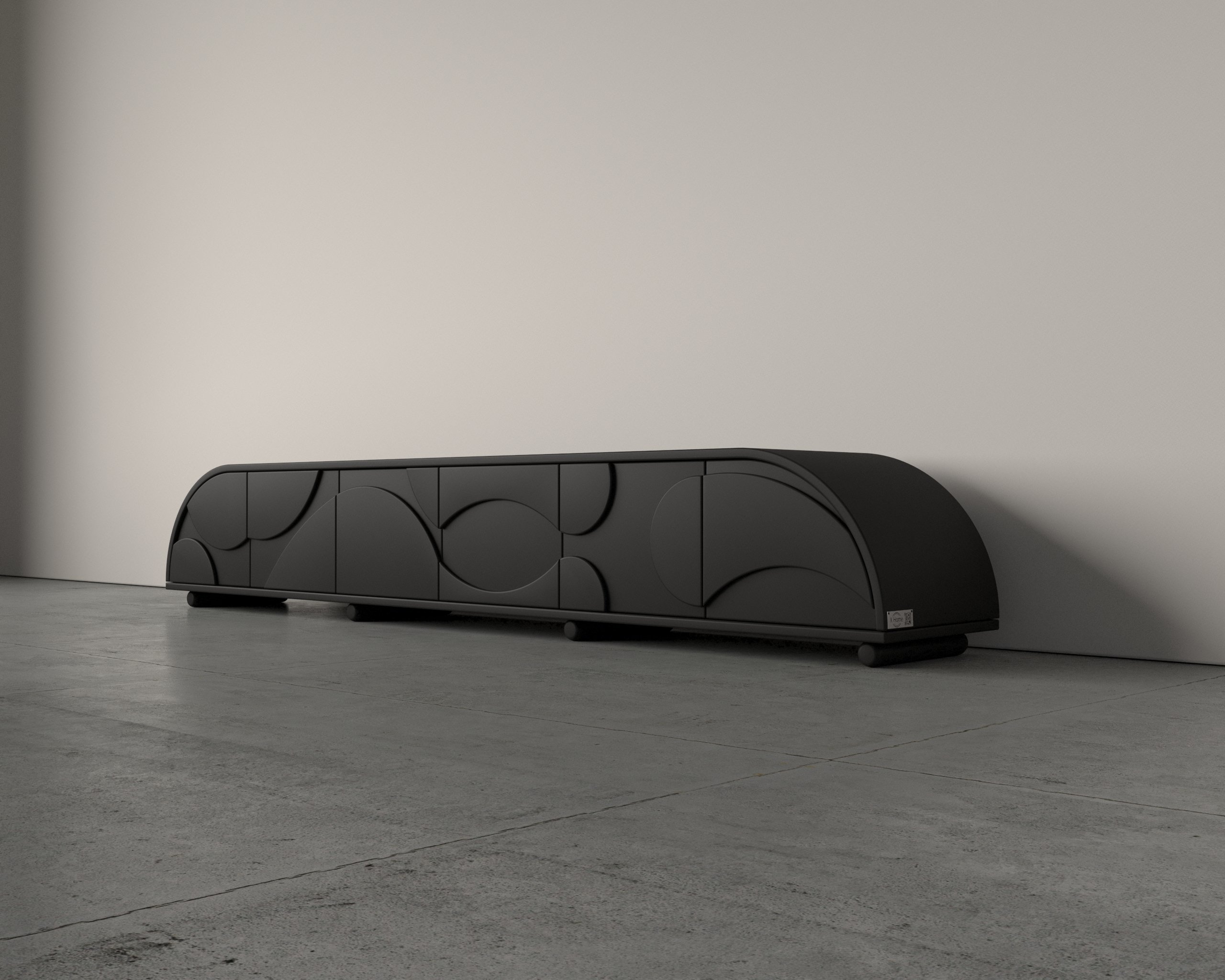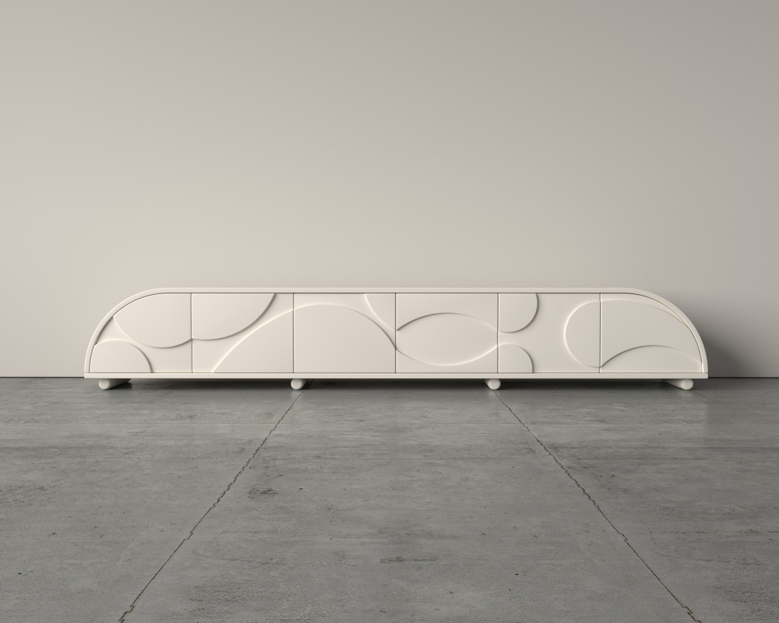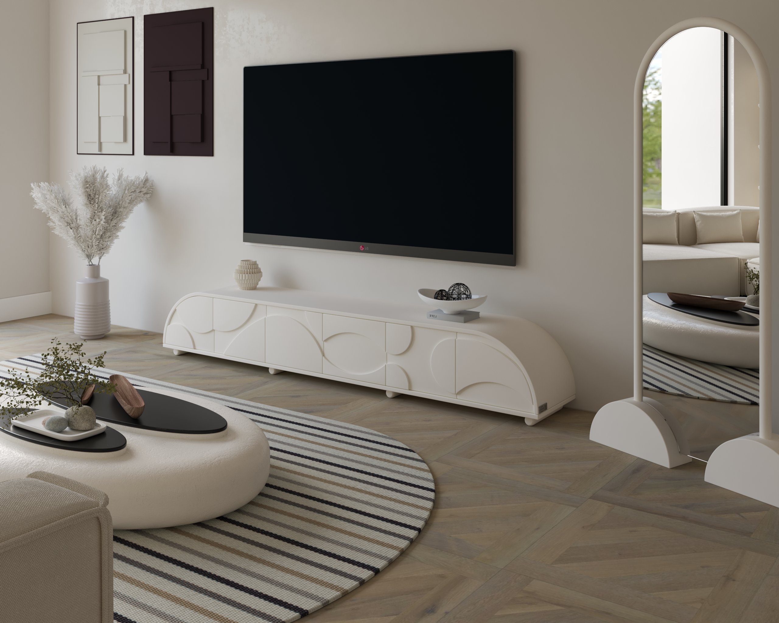 The Circa TV Unit blends fluid curves with geometric front patterns, creating a refined centerpiece for any interior. Its thoughtfully engineered storage and soft-close system deliver both style and practicality. Crafted with premium materials, it ensures durability and timeless design appeal.