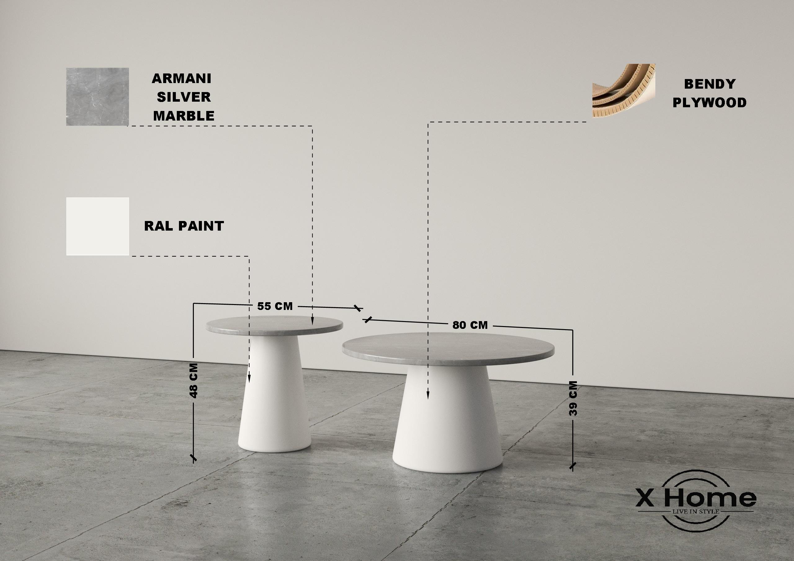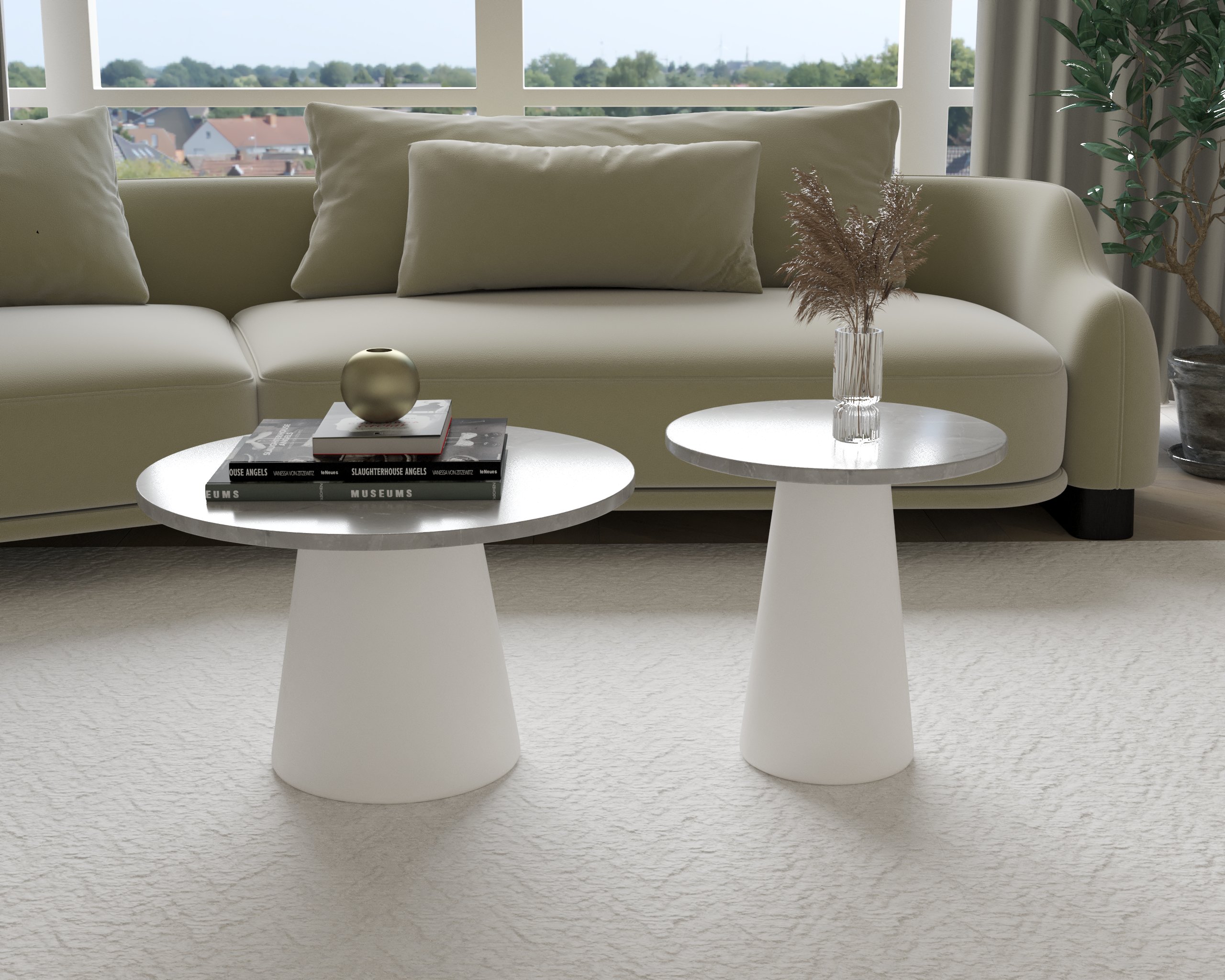 The Circo Coffee Table Set pairs smooth silhouettes with a minimalist form, featuring elegant marble tops that rest on gently curved bases. Perfect for modern interiors, this set blends timeless design with everyday functionality.