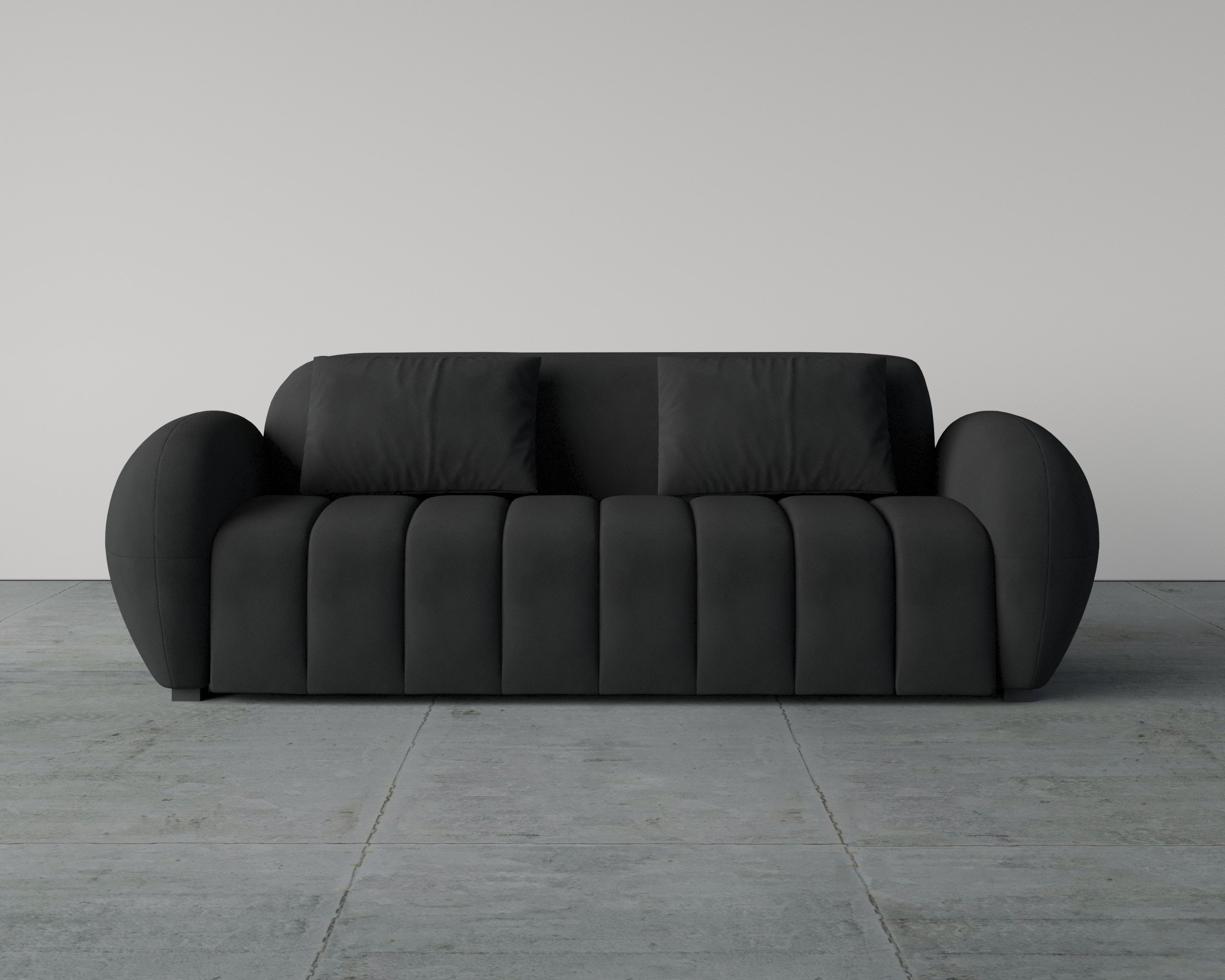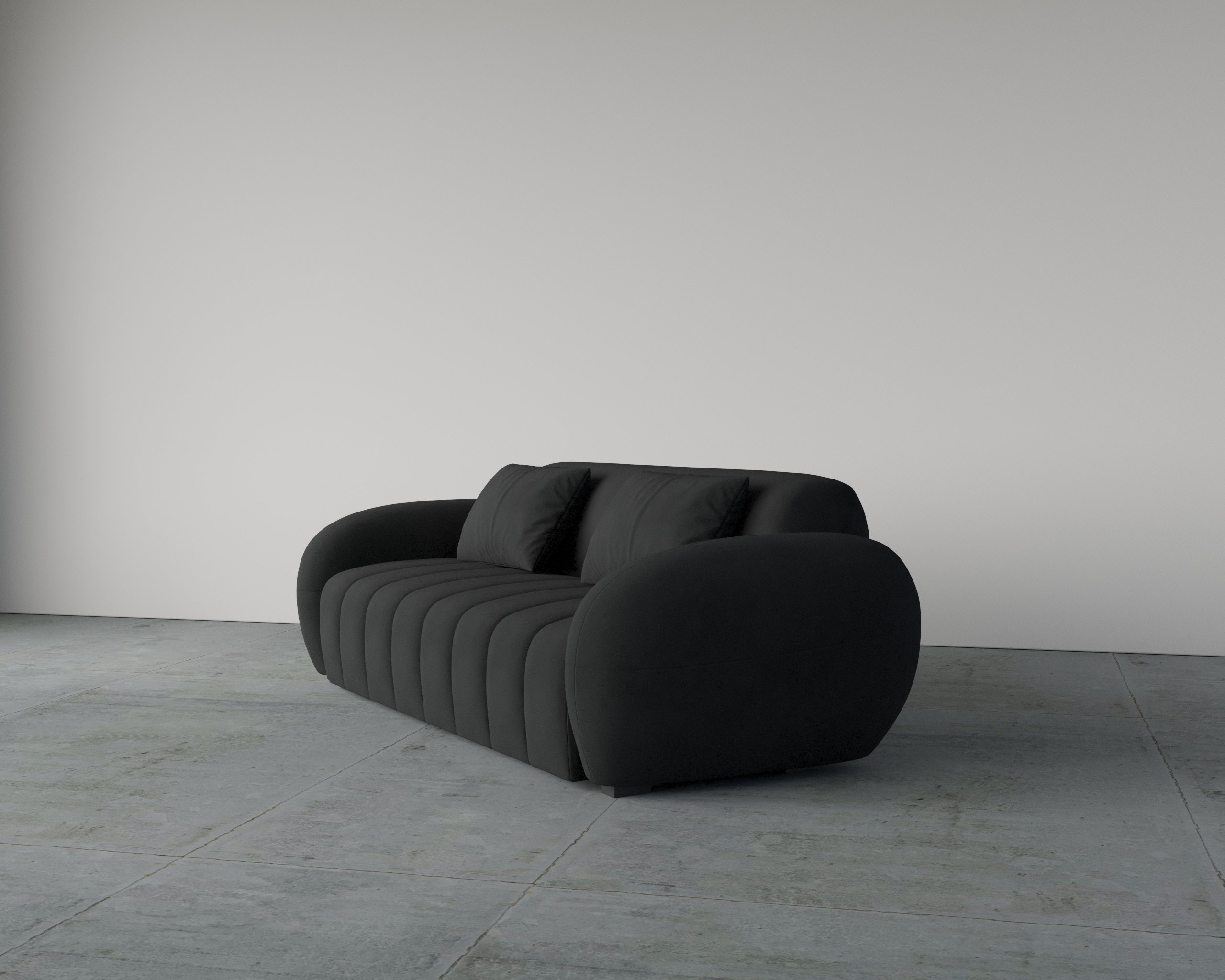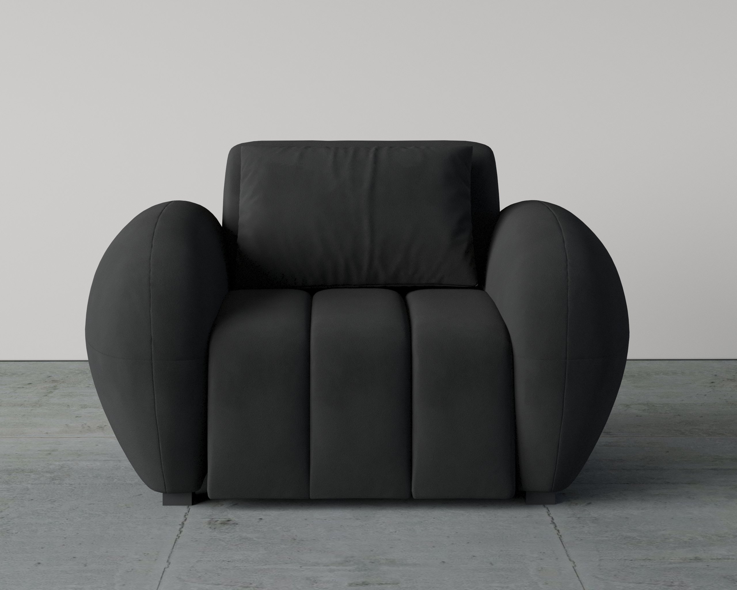 - Rounded arms create a soft, sculptural appearance