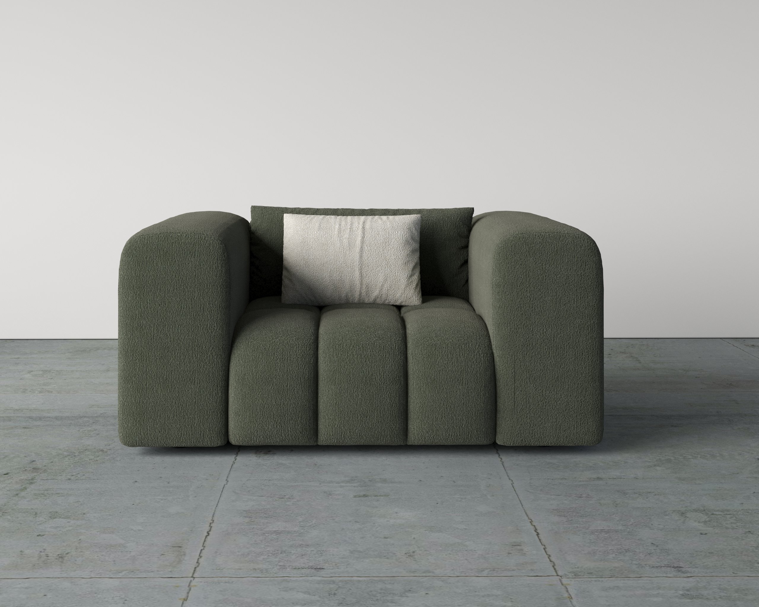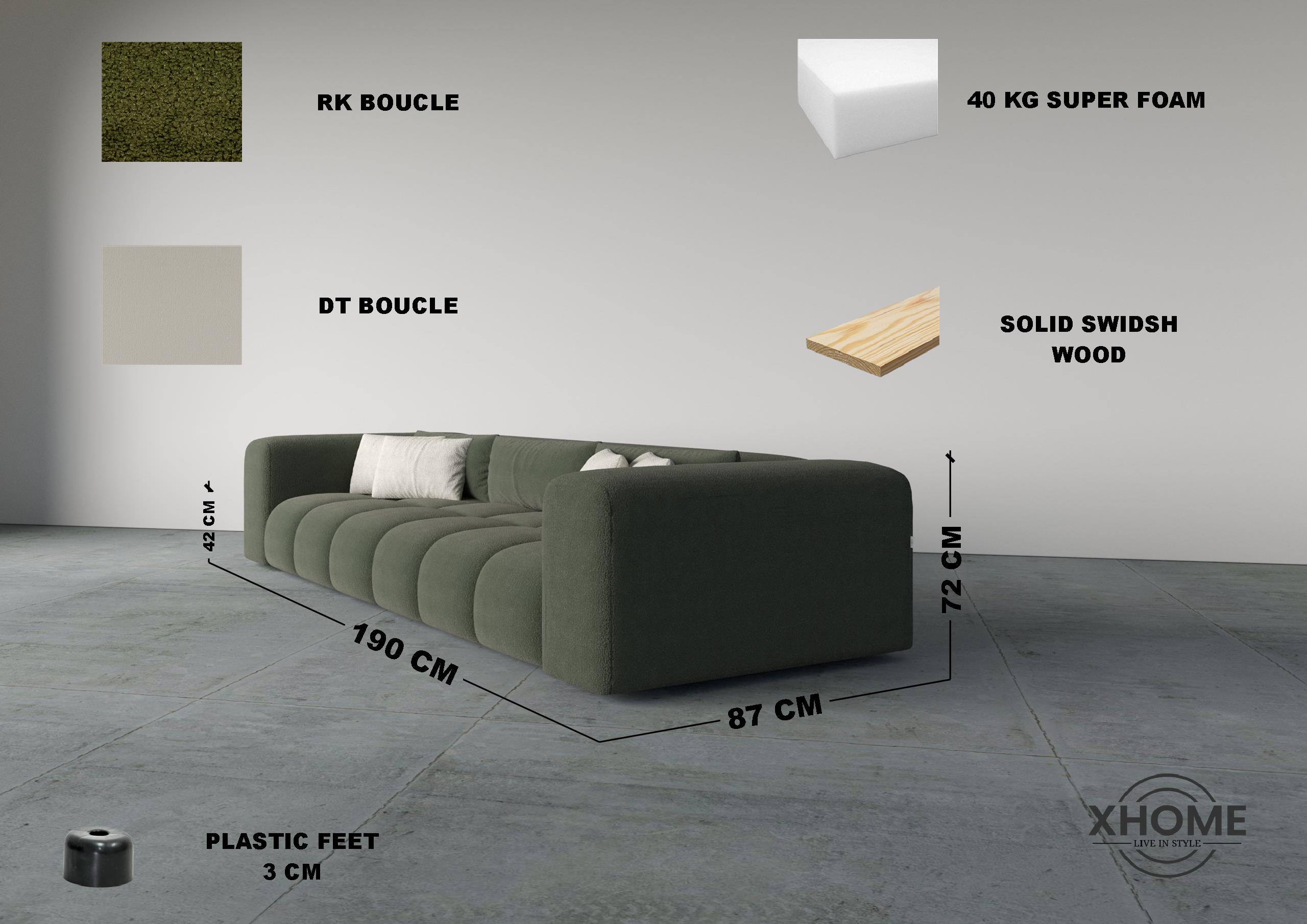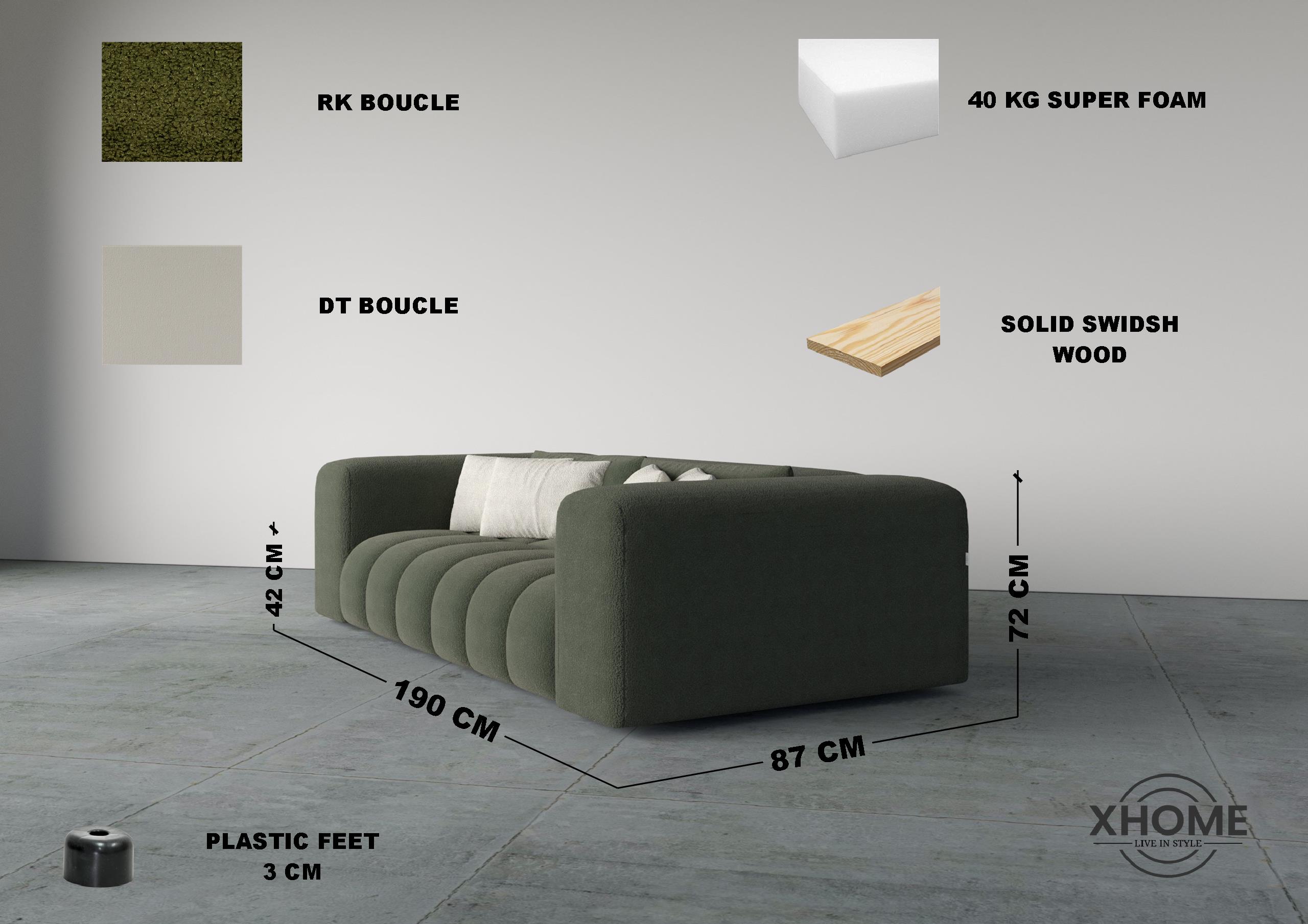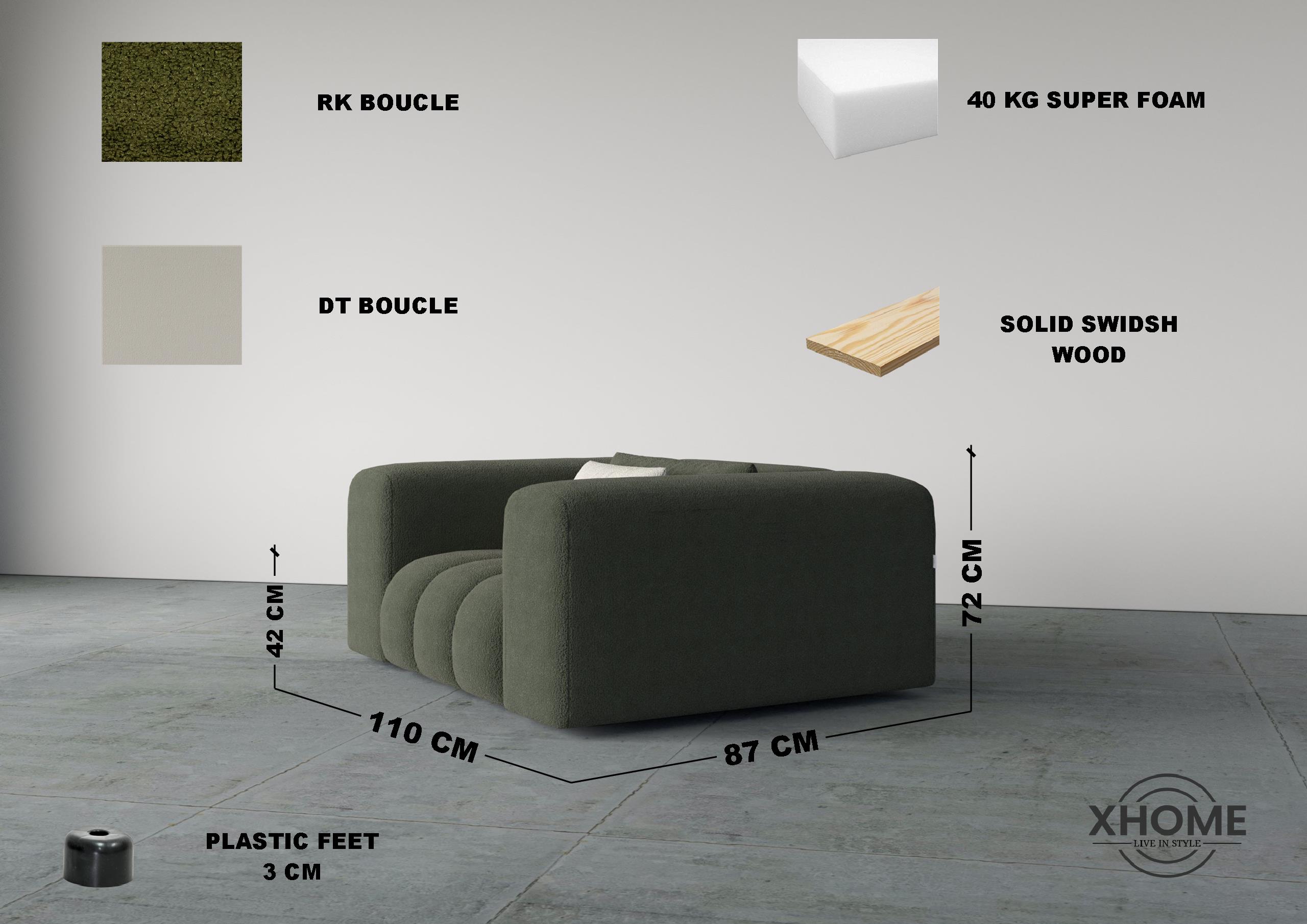 - Premium boucle fabric for a soft, textured finish