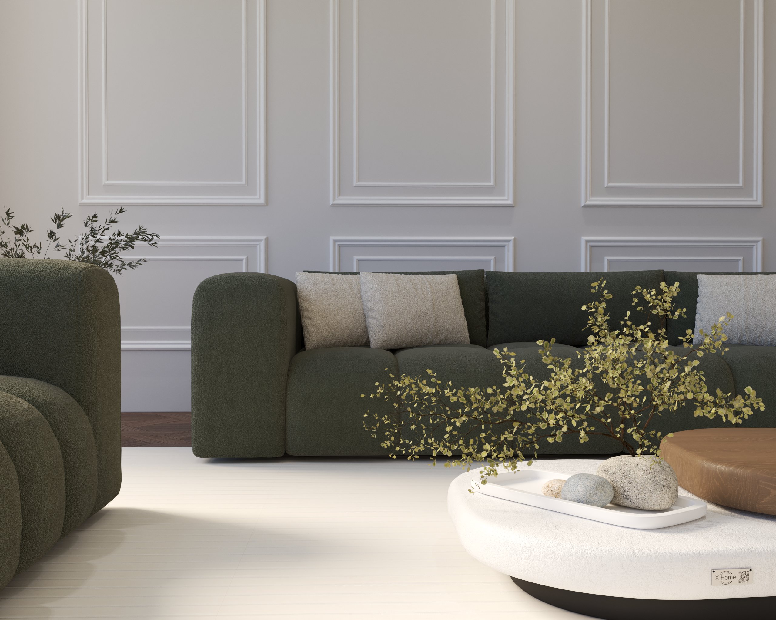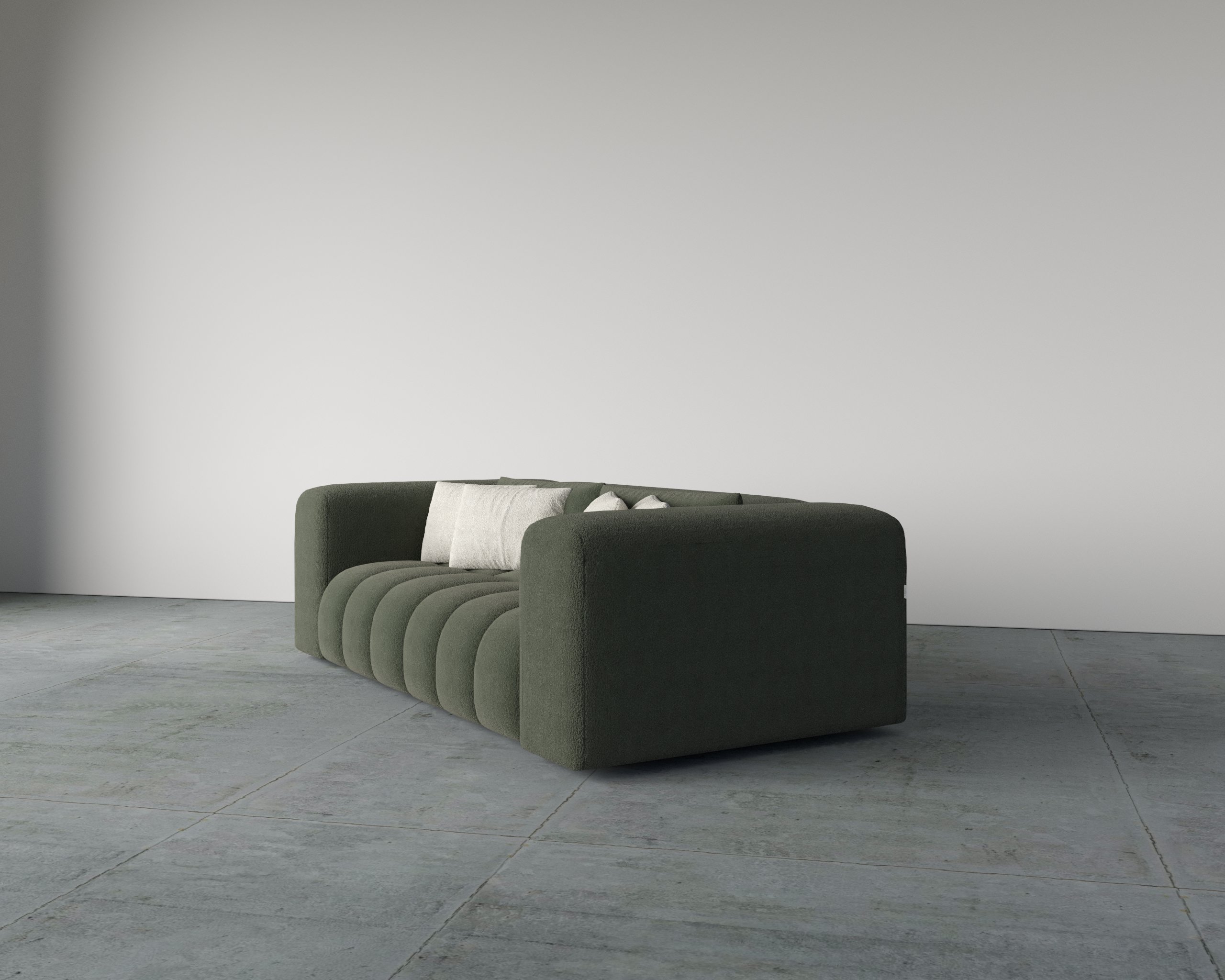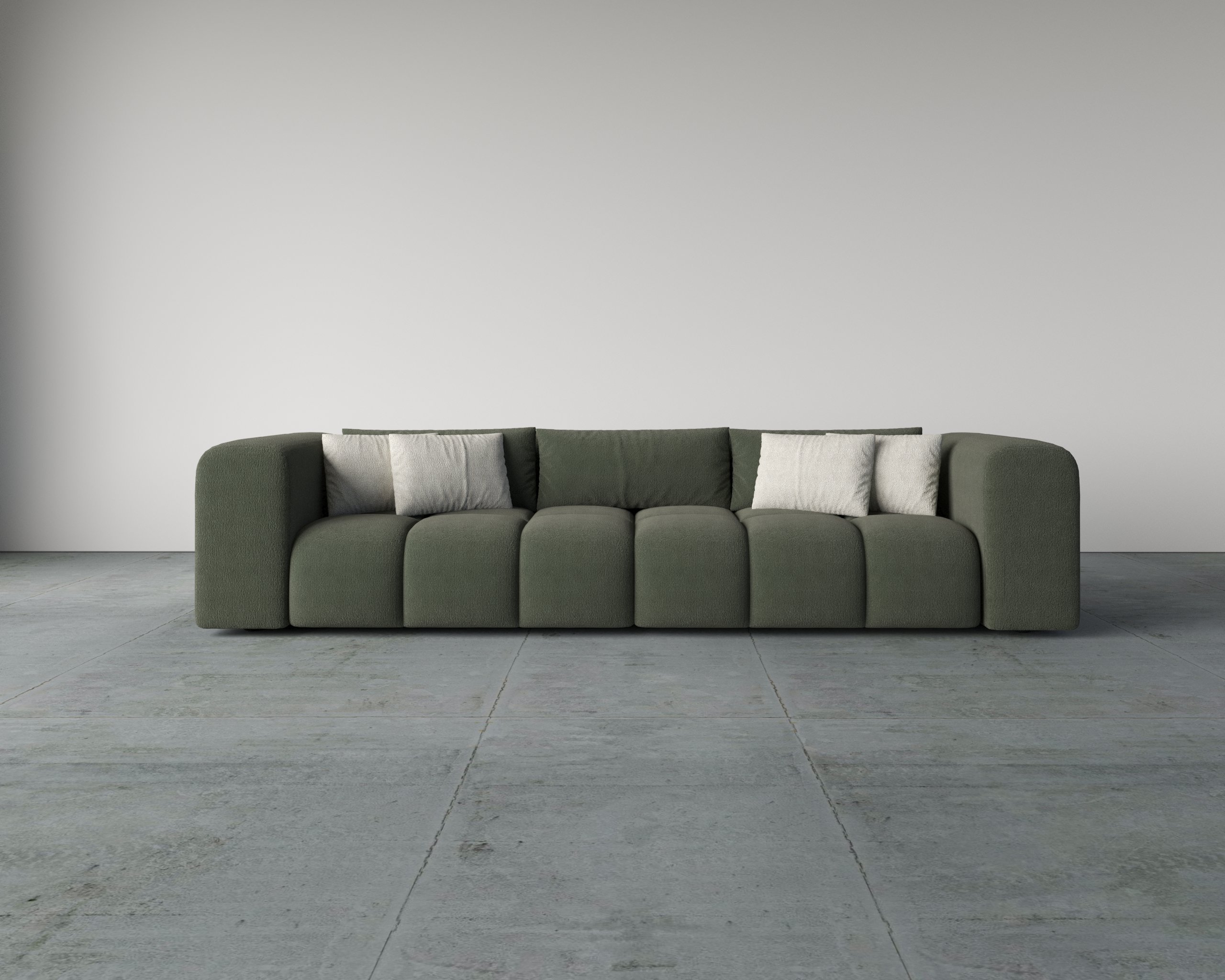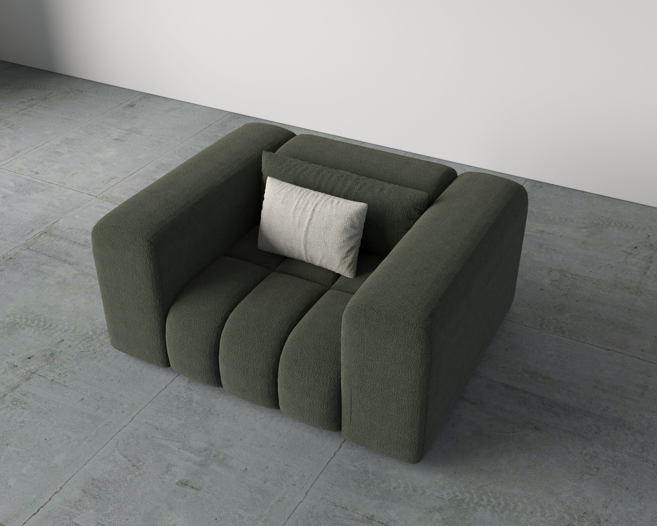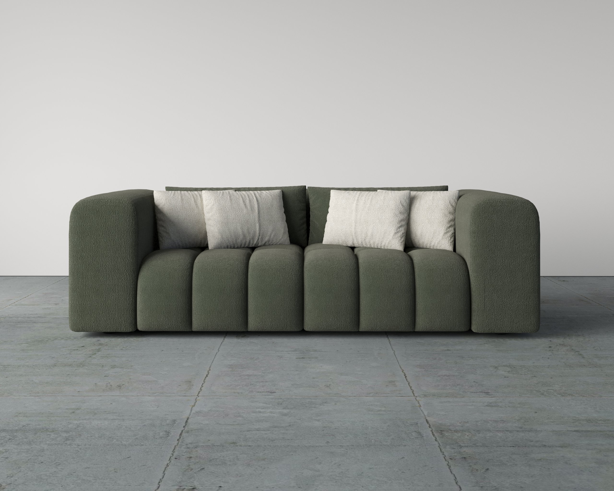 - Premium boucle fabric for a soft, textured finish