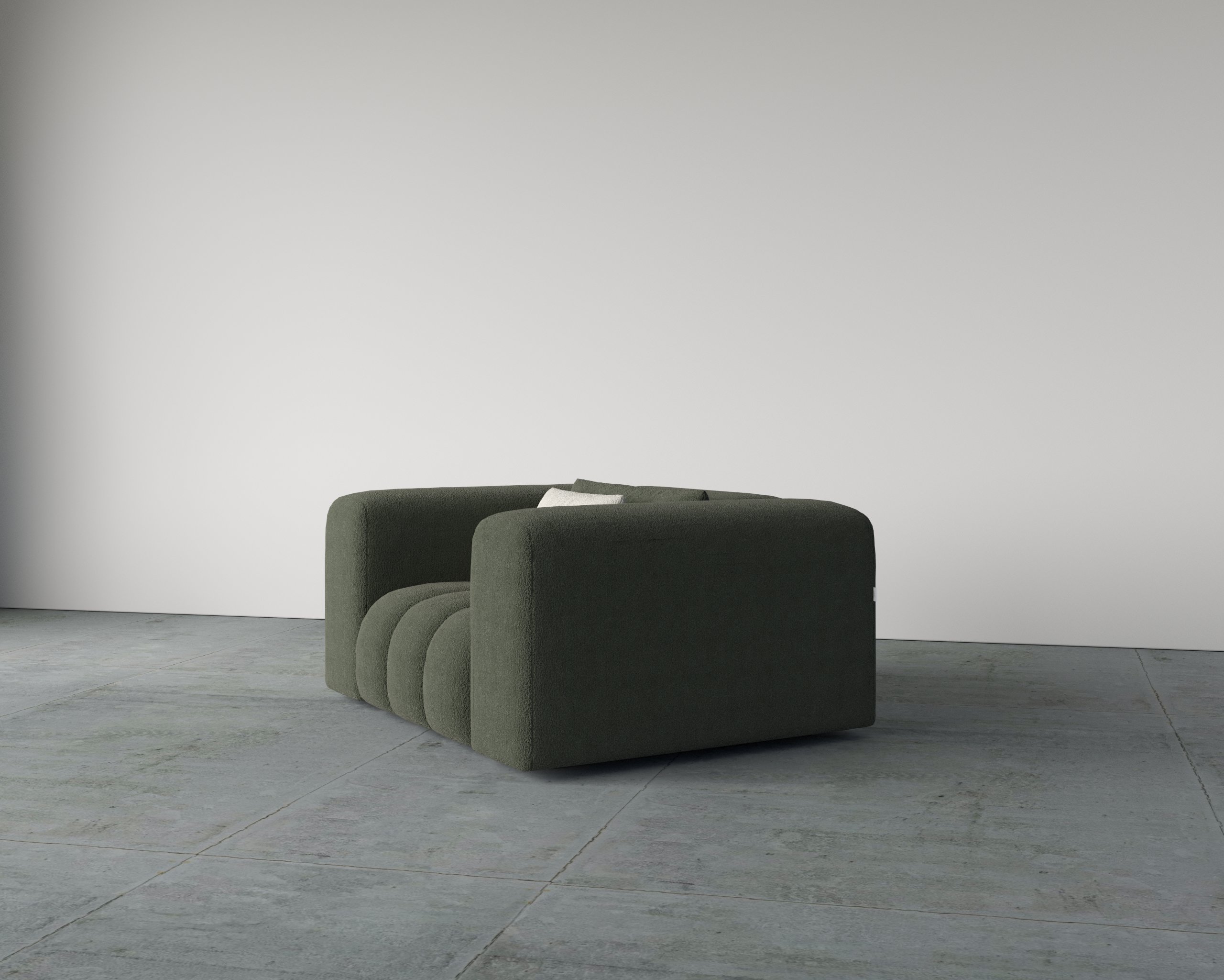 The Cuddle Single Seater Sofa is crafted with a generously cushioned seat and smooth, rounded arms that create a warm, embracing seating experience. Built on a sturdy wooden frame and layered with high-density foam, it delivers lasting comfort and support. The textured boucle upholstery enhances tactile appeal while maintaining a refined look. Compact in size, it fits effortlessly into both small and spacious living areas. Thoughtful detailing and balanced proportions make it ideal for contemporary homes.