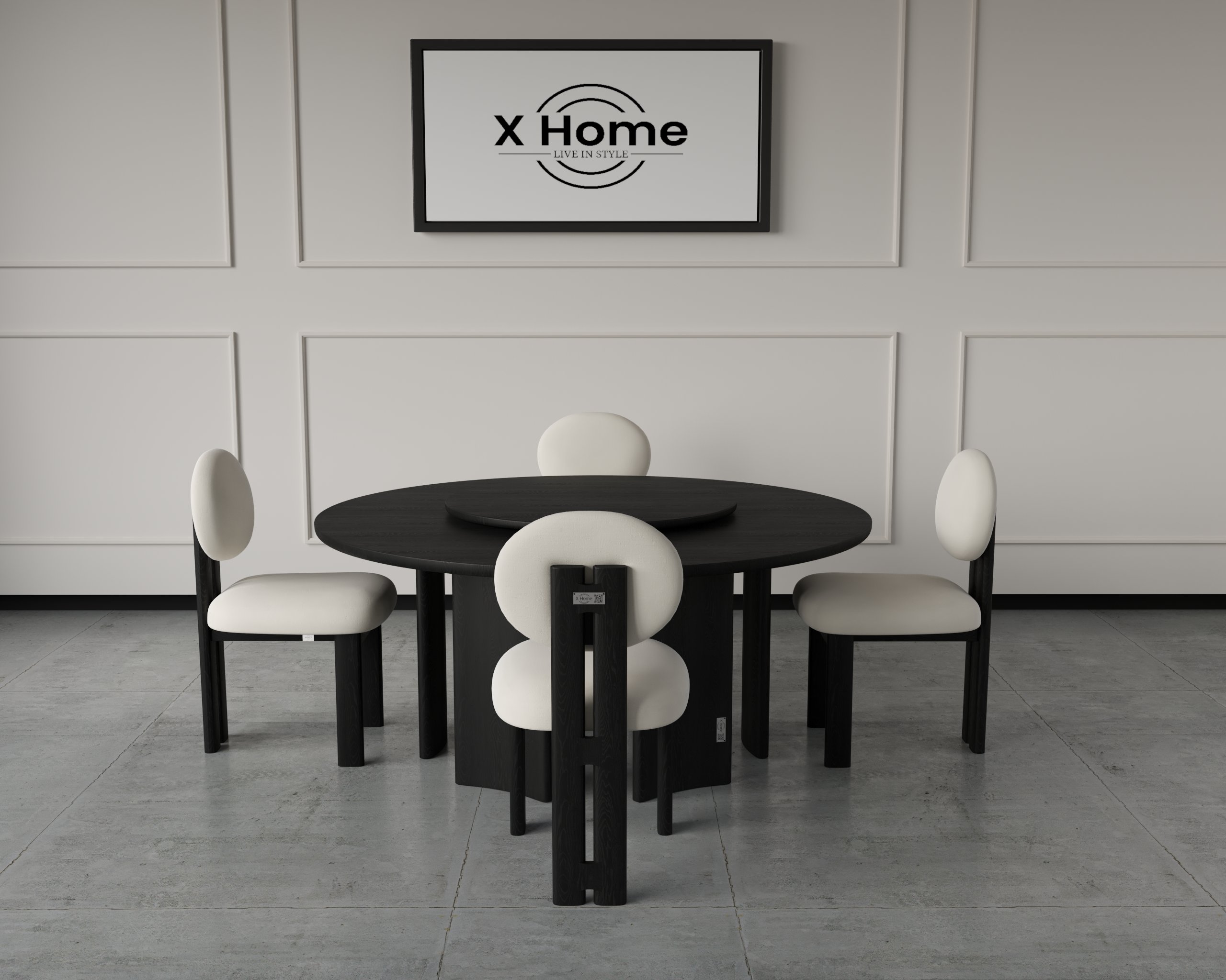 The Lunaris Dining Set features a circular table with a smooth top and curated chairs designed with plush upholstery and a rounded silhouette. Together, they create a harmonious aesthetic that blends contemporary design with functional comfort. Ideal for compact, stylish dining spaces or modern statement interiors.