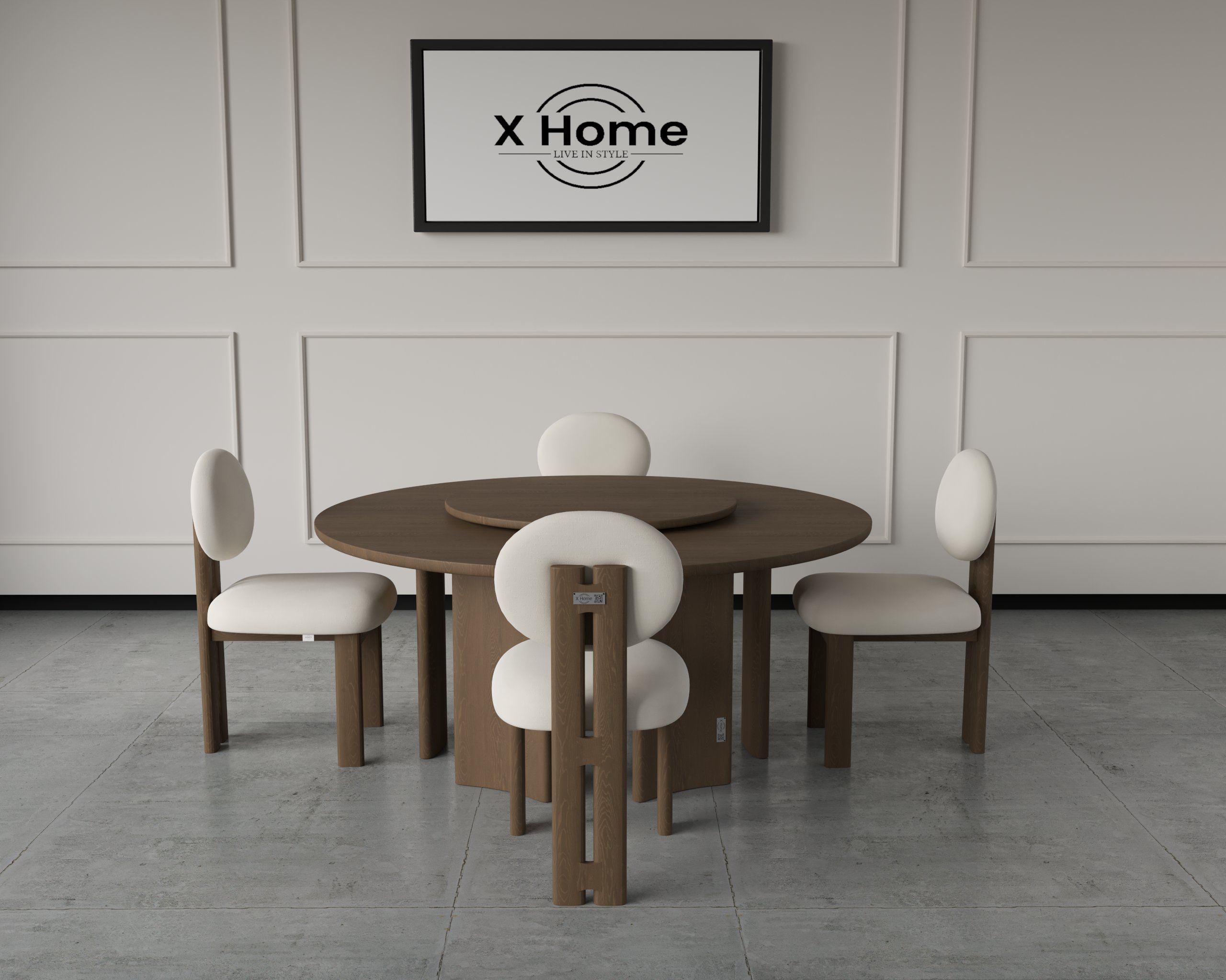 The Lunaris Dining Set pairs a sculpted round table with soft, rounded-back chairs for a refined, modern dining experience. Designed to bring elegance and comfort to any interior.