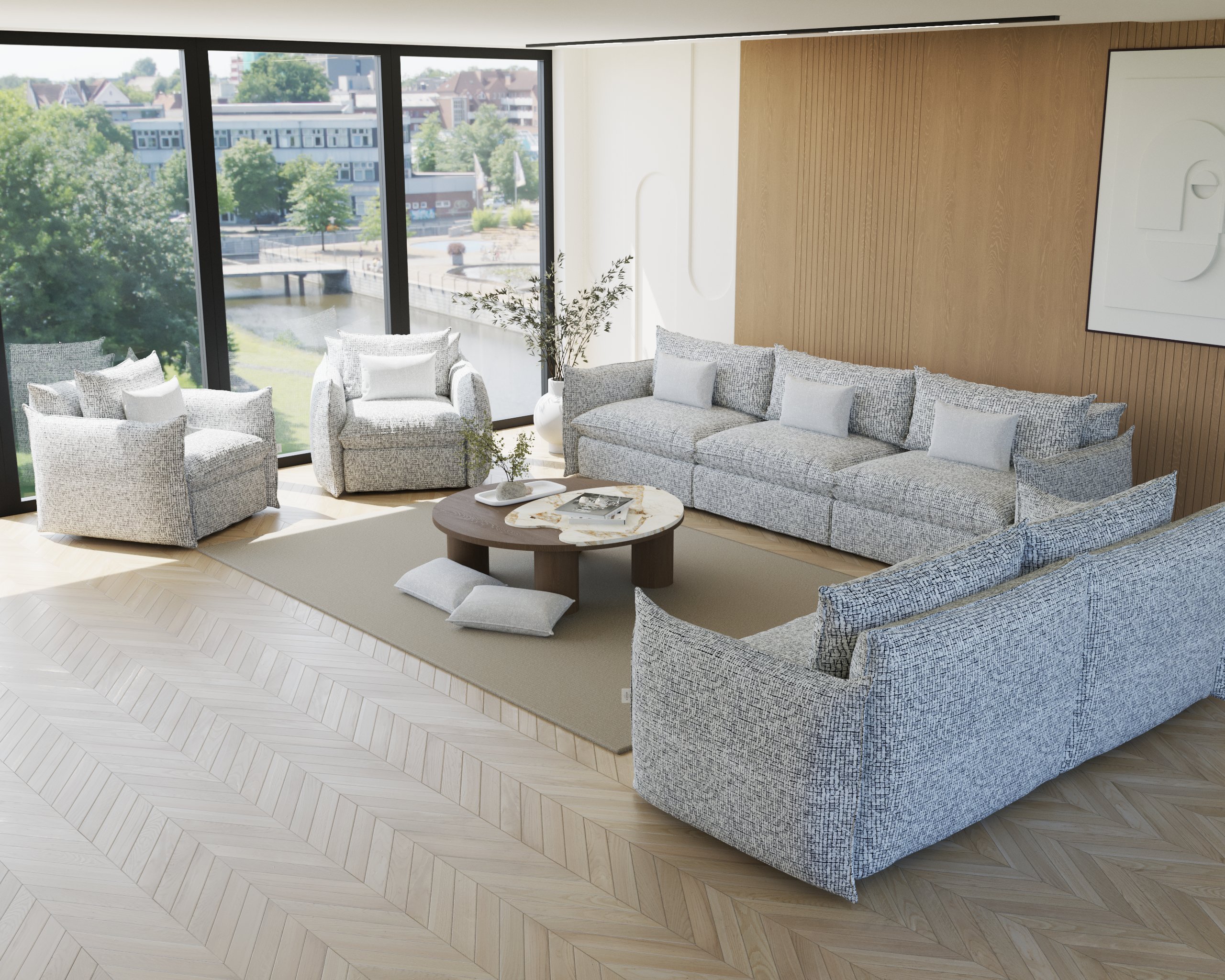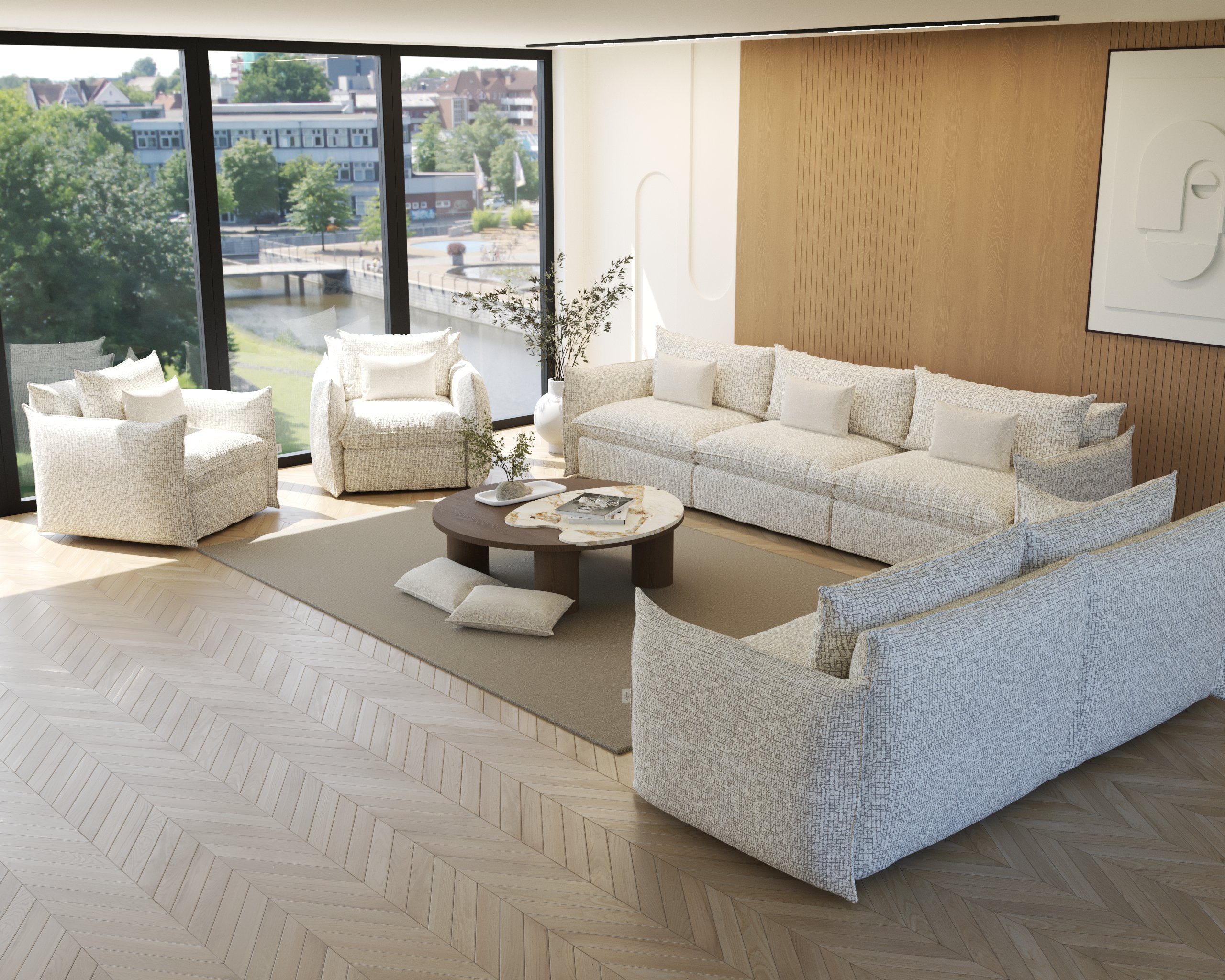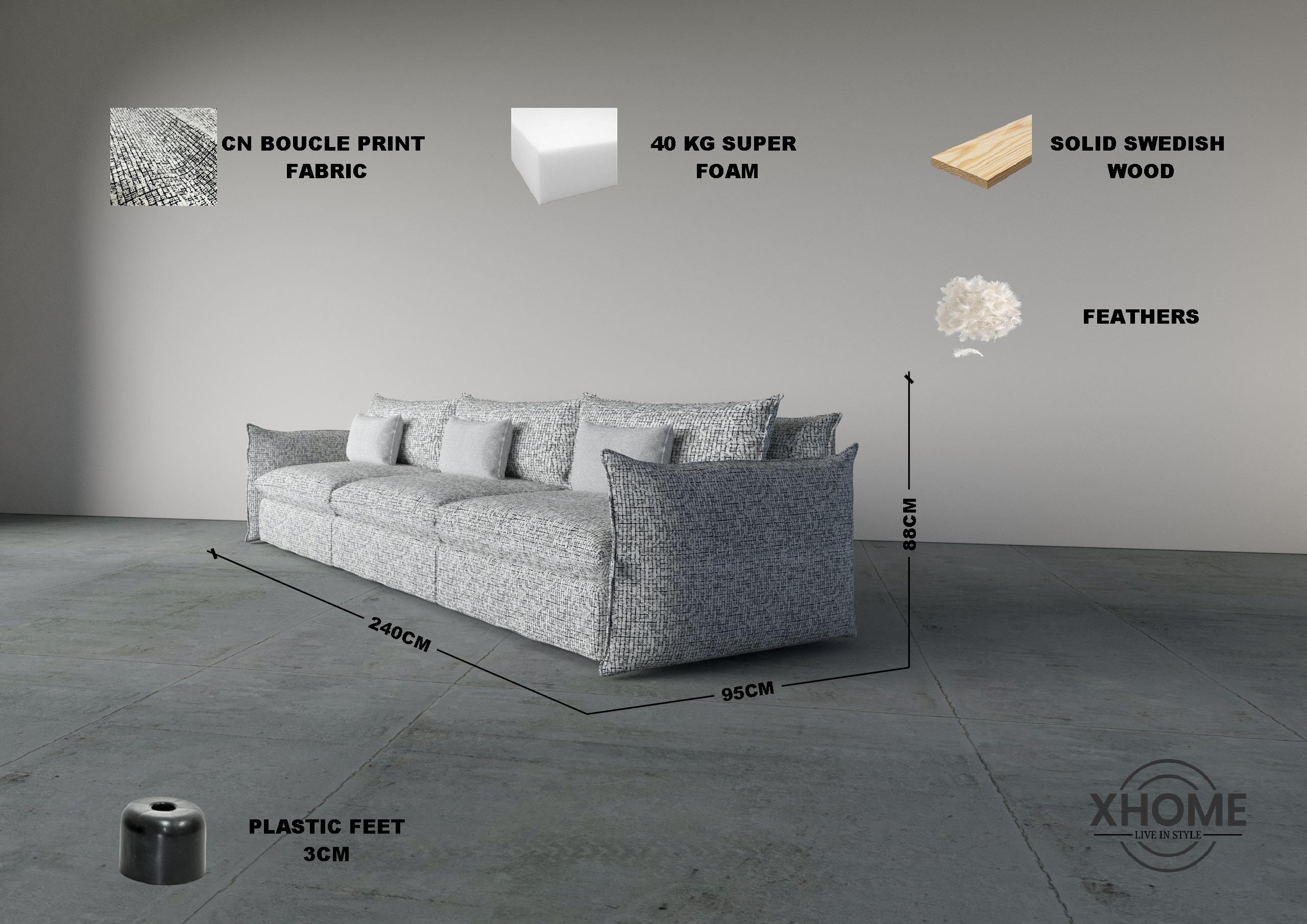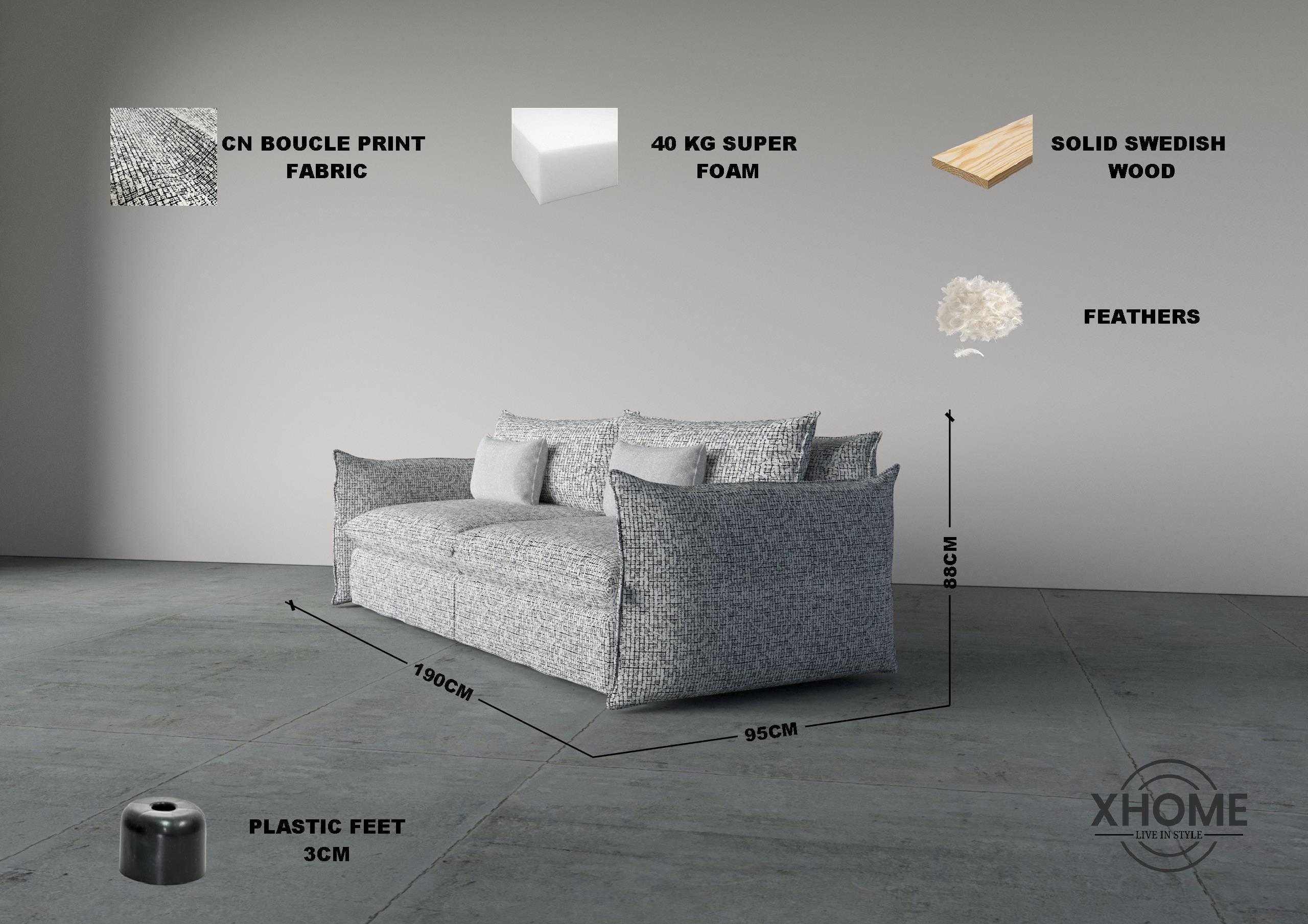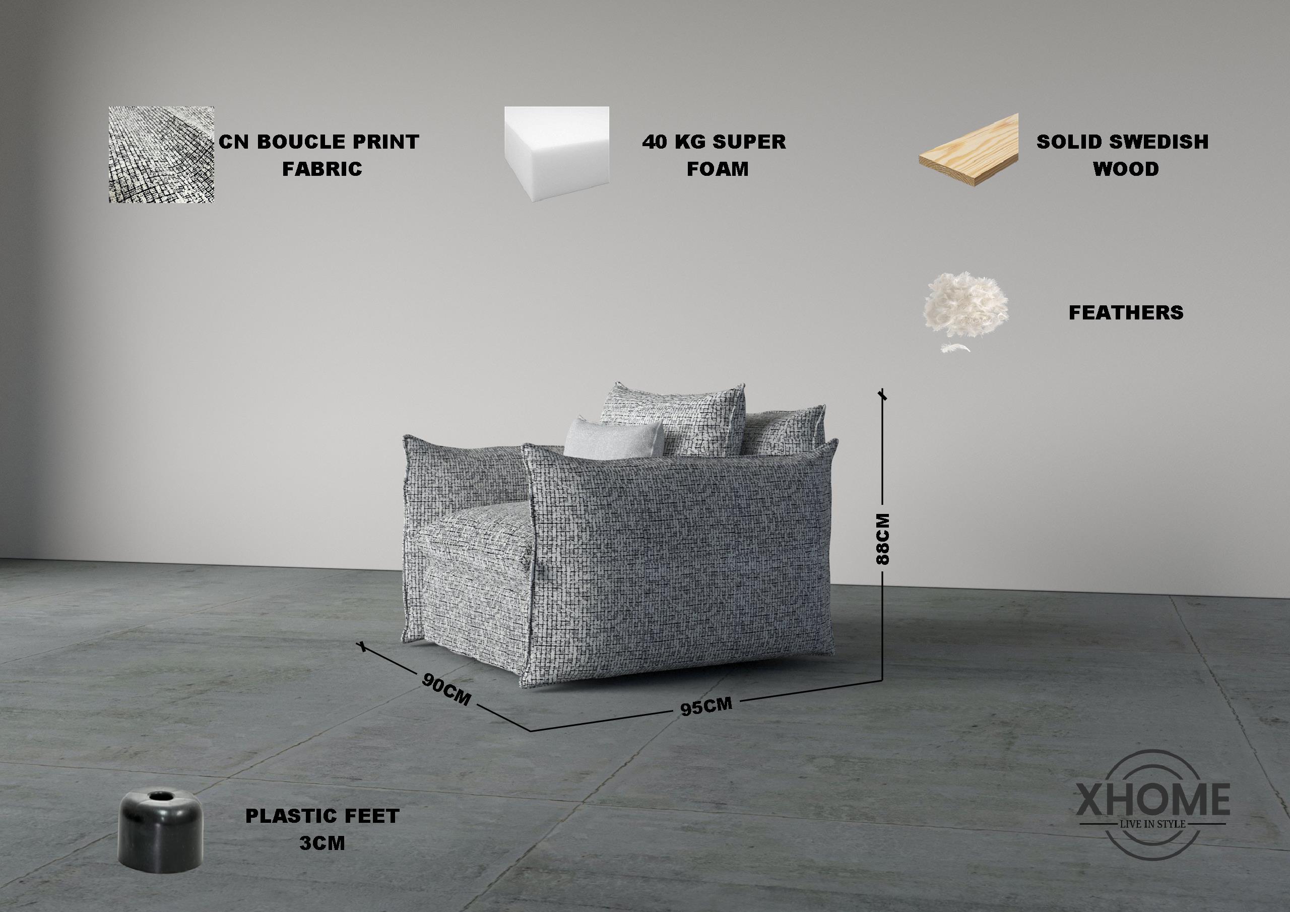 The Embrace Sofa Set includes Two Single Seater, Two Seater, and Three Seater, thoughtfully designed to work harmoniously as a complete seating ensemble. Each piece features plush cushioning supported by high-density foam and feather-filled back cushions for enhanced comfort. The sturdy internal structure ensures durability, while the soft upholstery delivers a relaxed seating experience. Ideal for both intimate and spacious interiors, the set balances comfort, functionality, and modern appeal.
