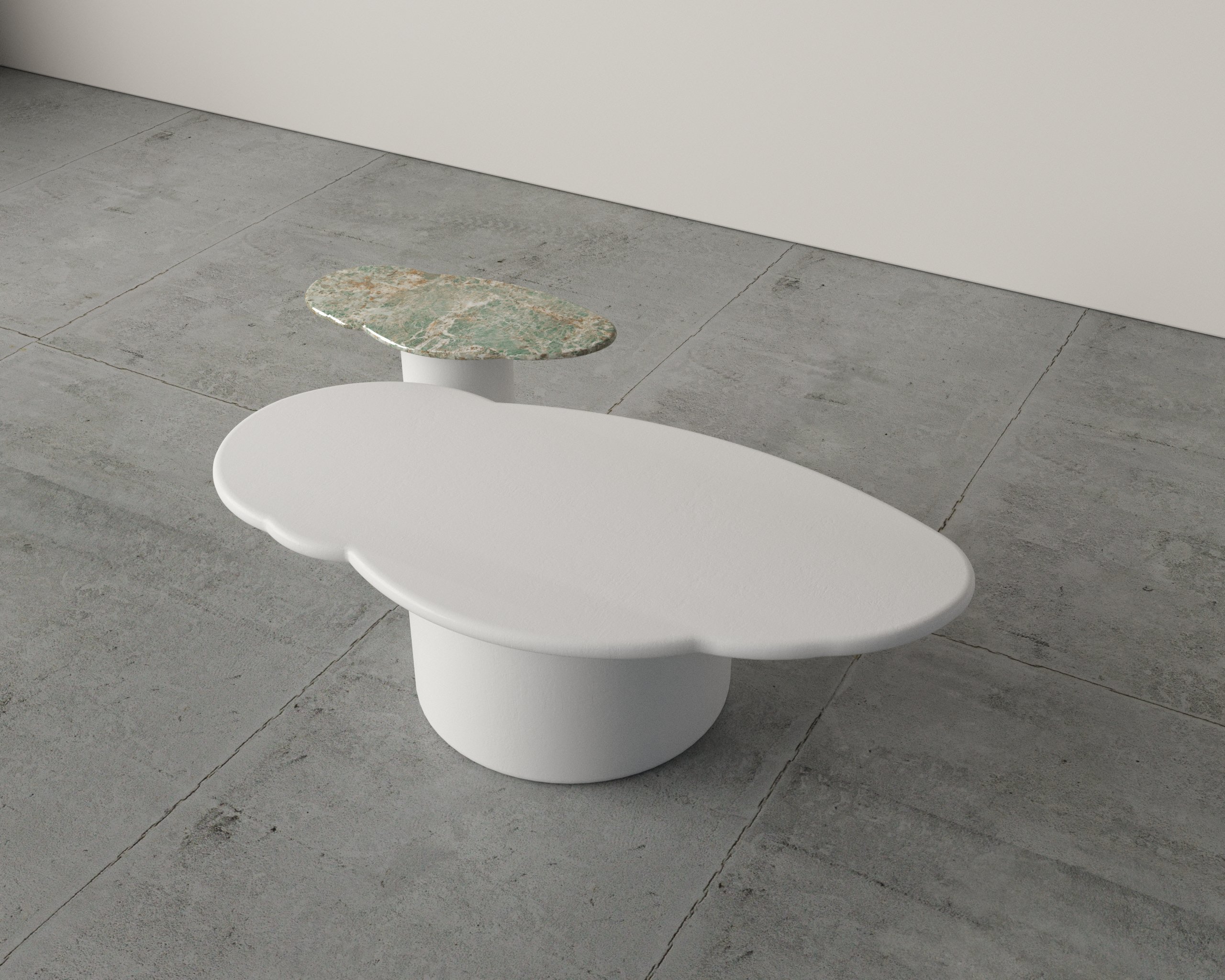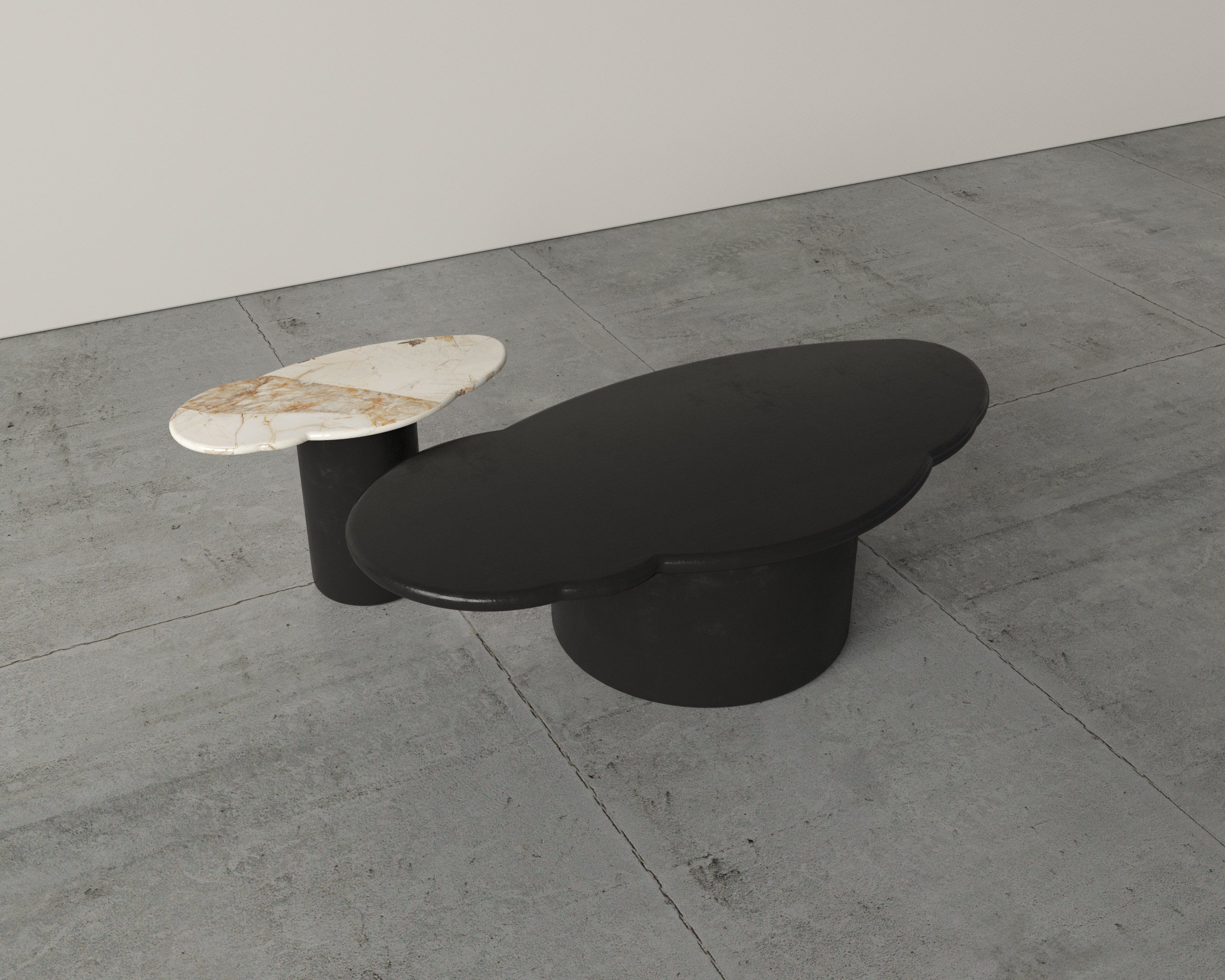 A contemporary dual-table set that combines elegant marble detailing with modern geometry for a refined, balanced aesthetic.