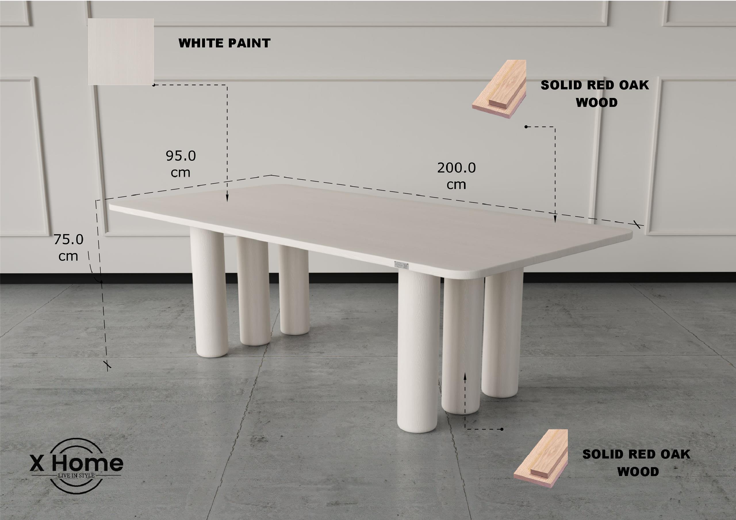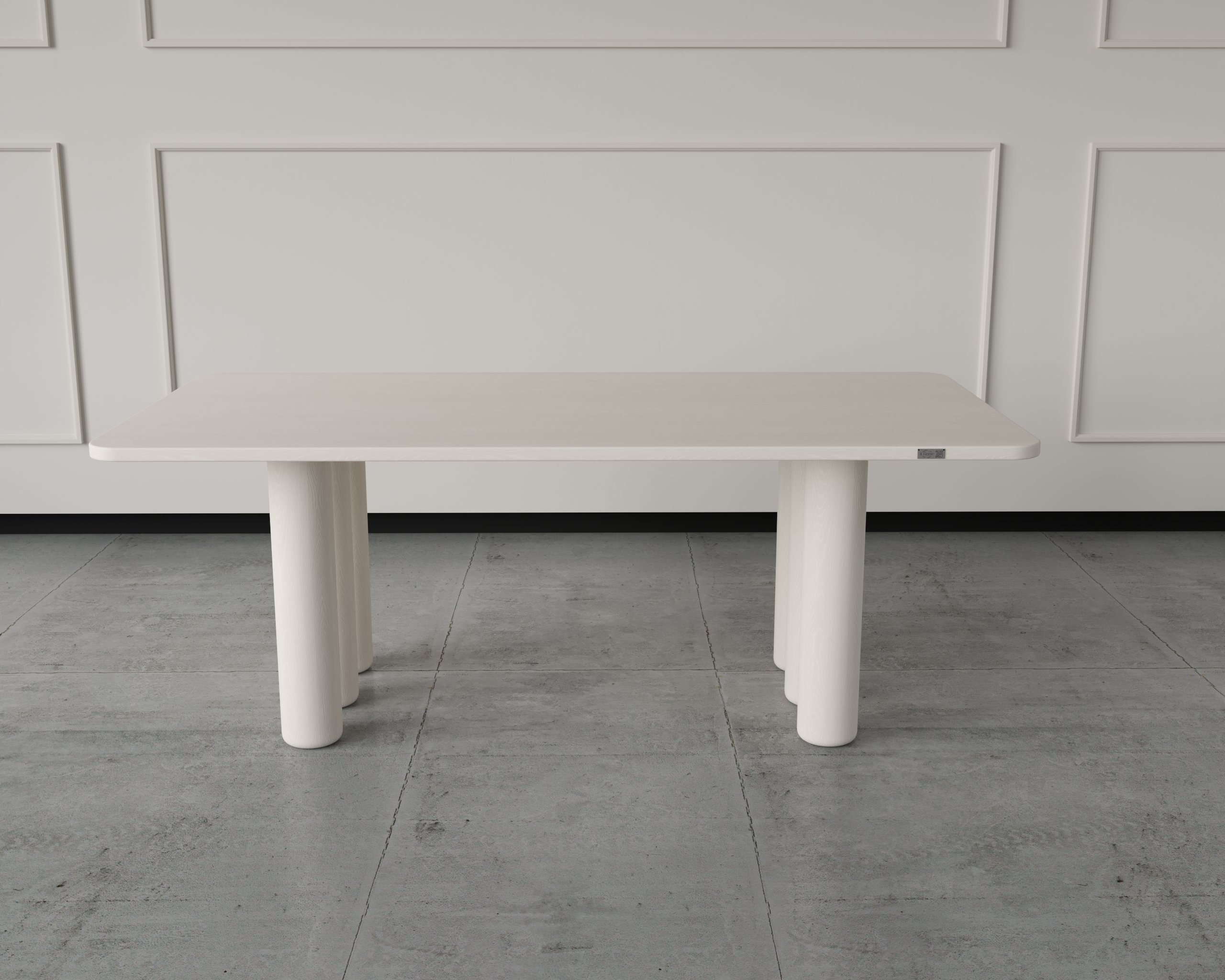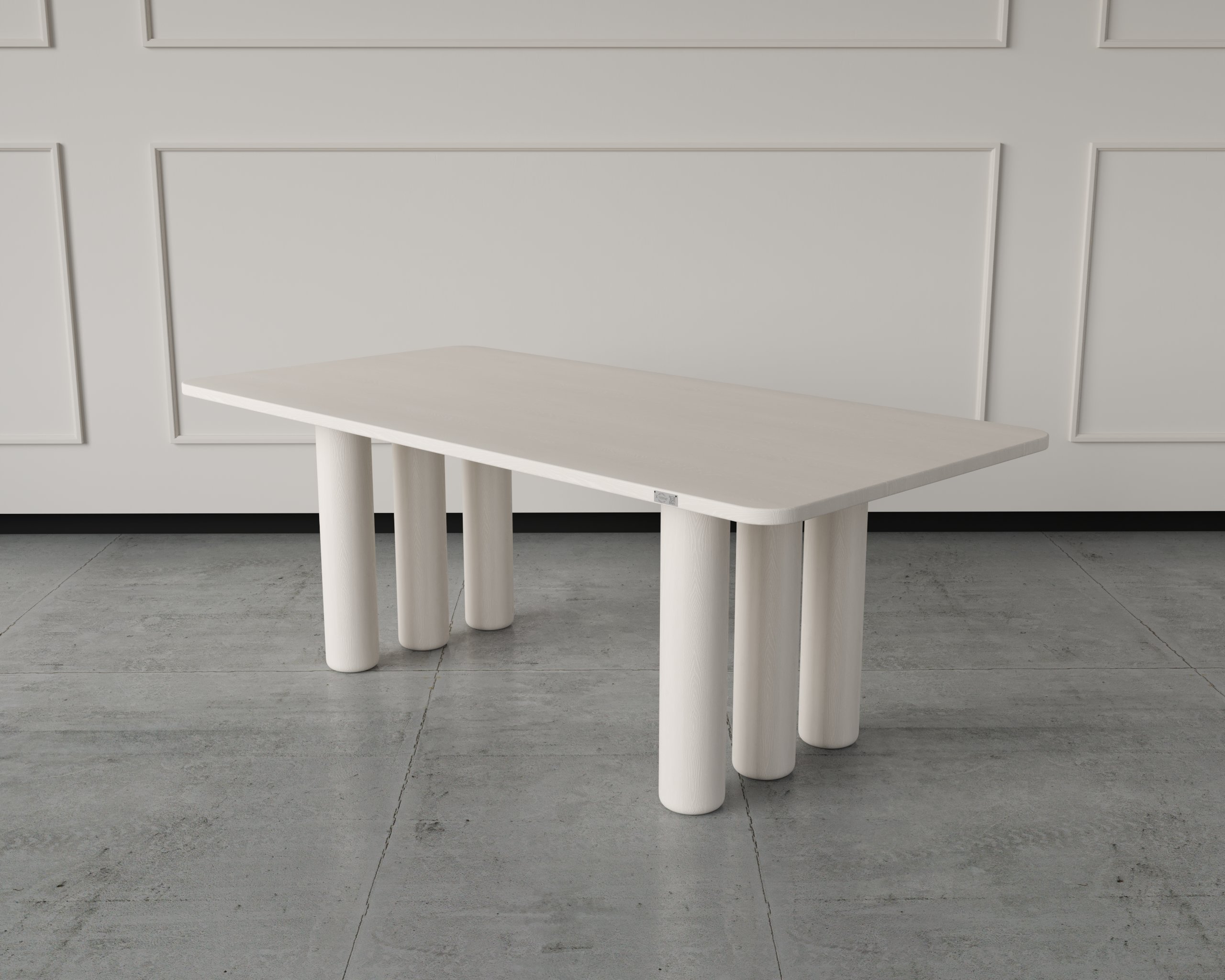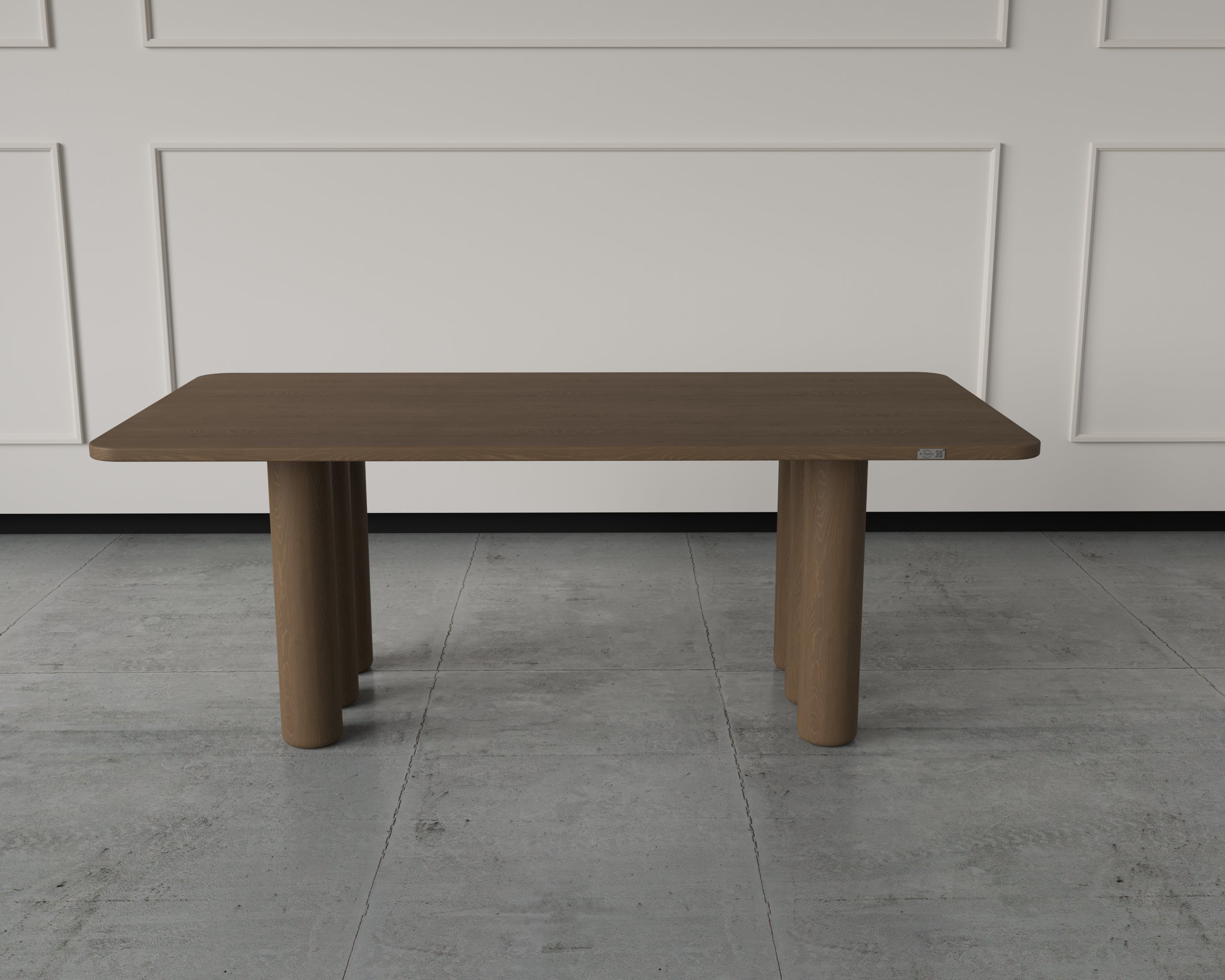 The Iris Table showcases a minimalist silhouette supported by cylindrical pillar legs that create a gallery-like presence in any dining space. Its solid wood top provides lasting durability and a timeless natural appeal. Perfect for homes seeking a balance between contemporary form and organic warmth.