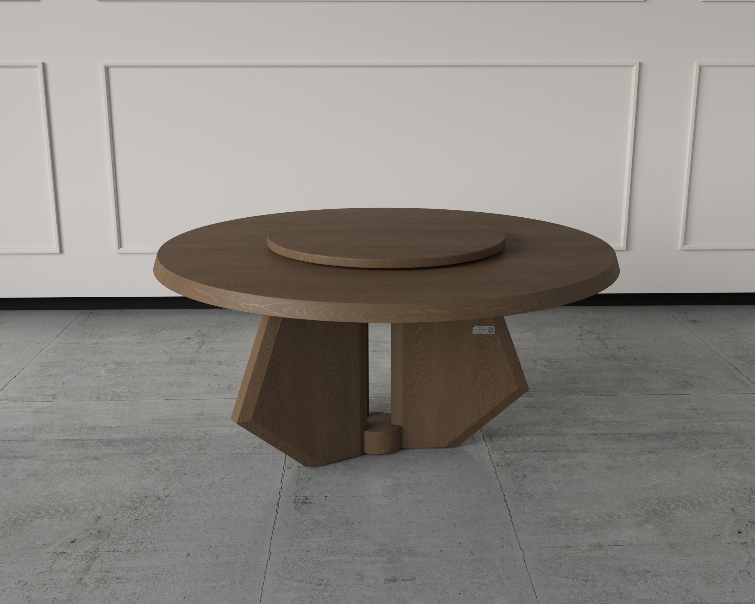 A contemporary round dining table featuring a smooth rotating centerpiece for effortless serving. Crafted with precision to enhance both function and aesthetic appeal.
