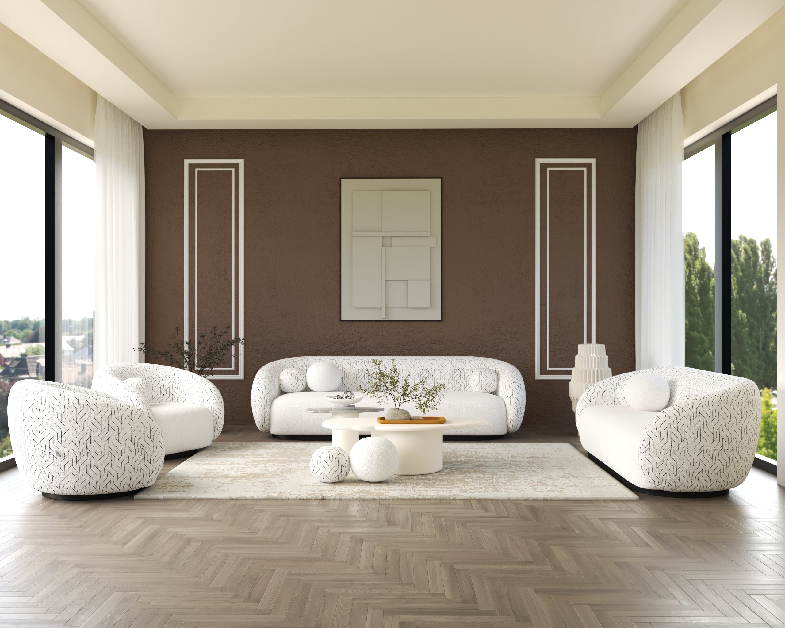 - Soft, rounded silhouettes with enveloping armrests