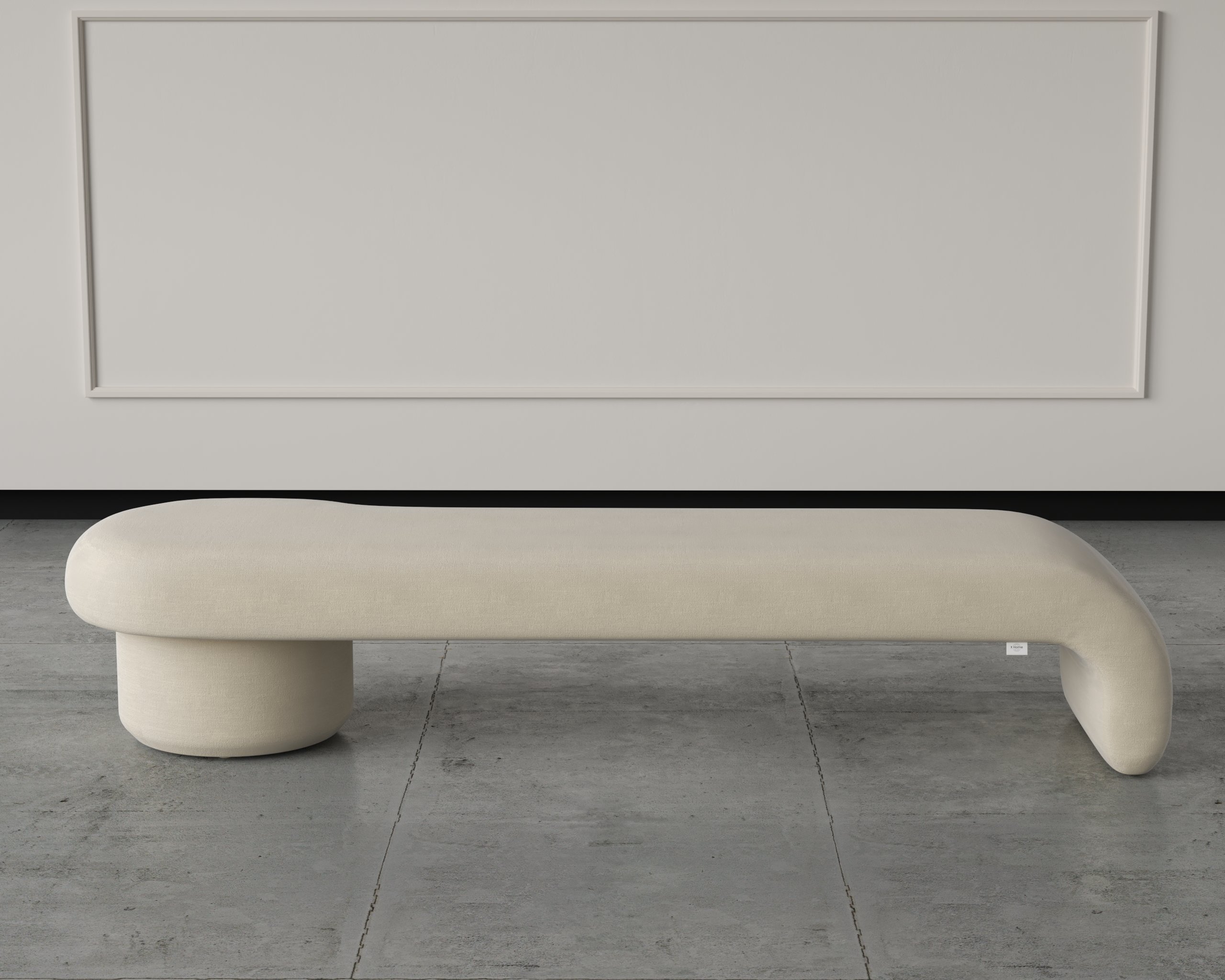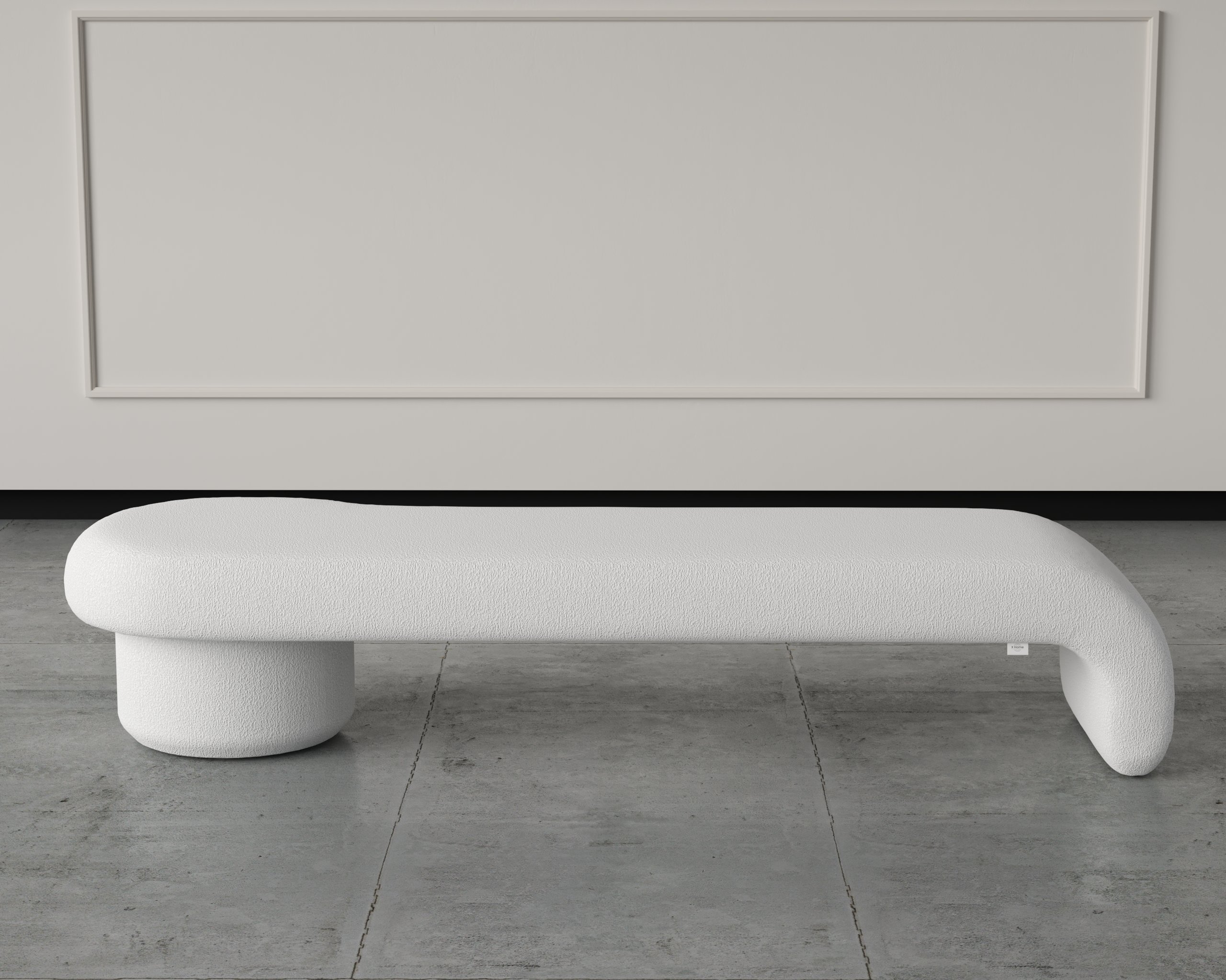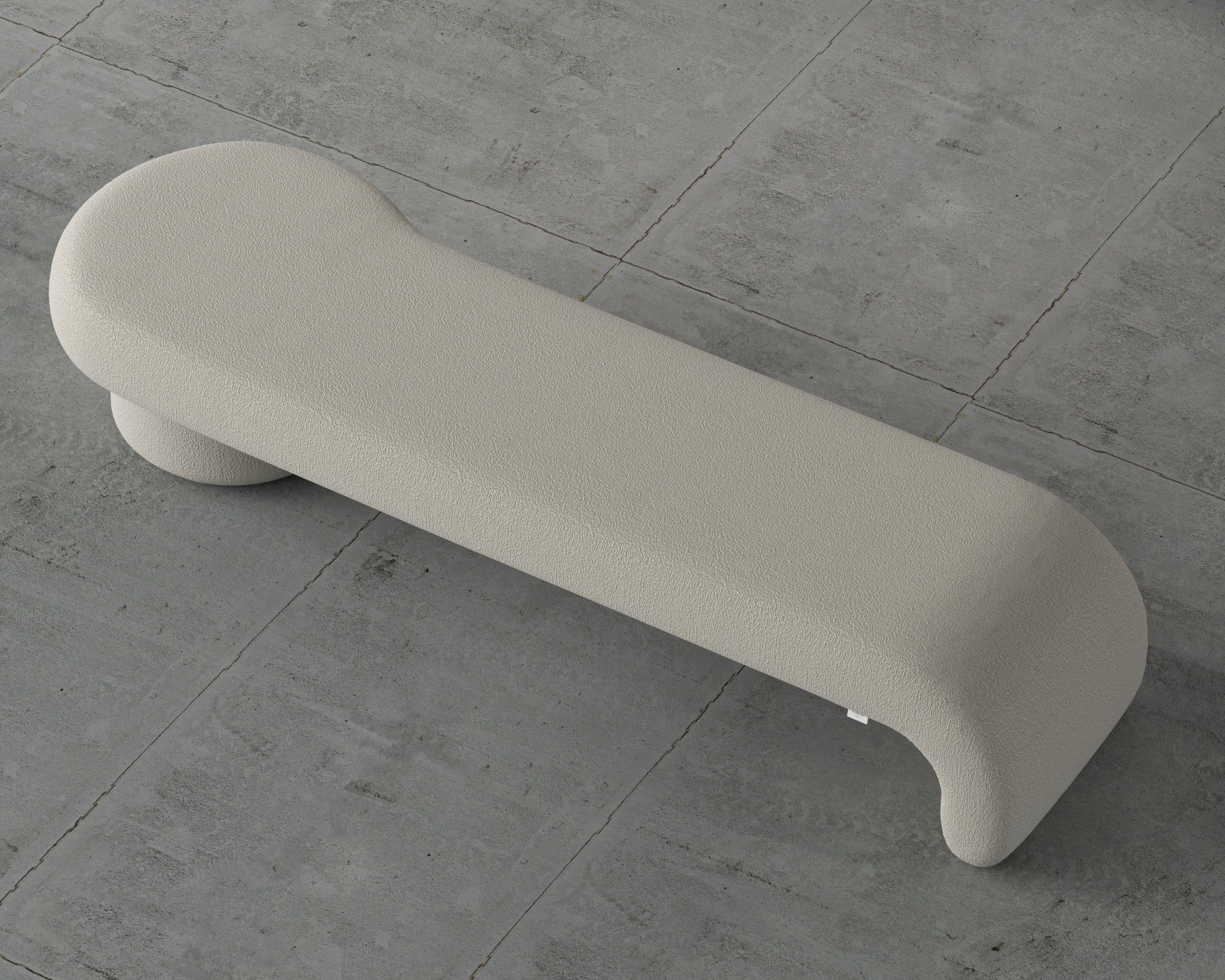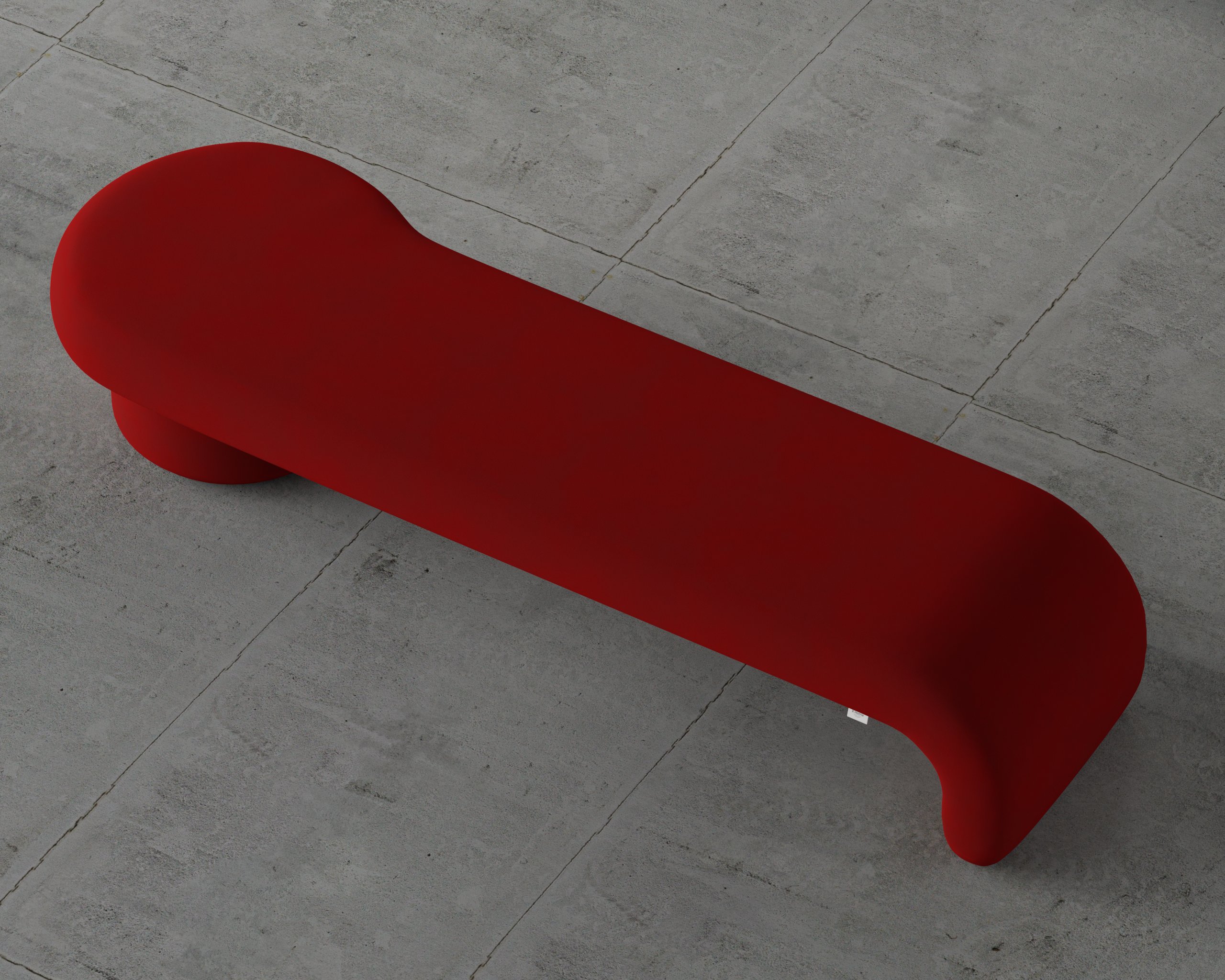 A sculpted modern bench with smooth, flowing contours designed for comfort and visual impact. A statement piece crafted for contemporary interiors.