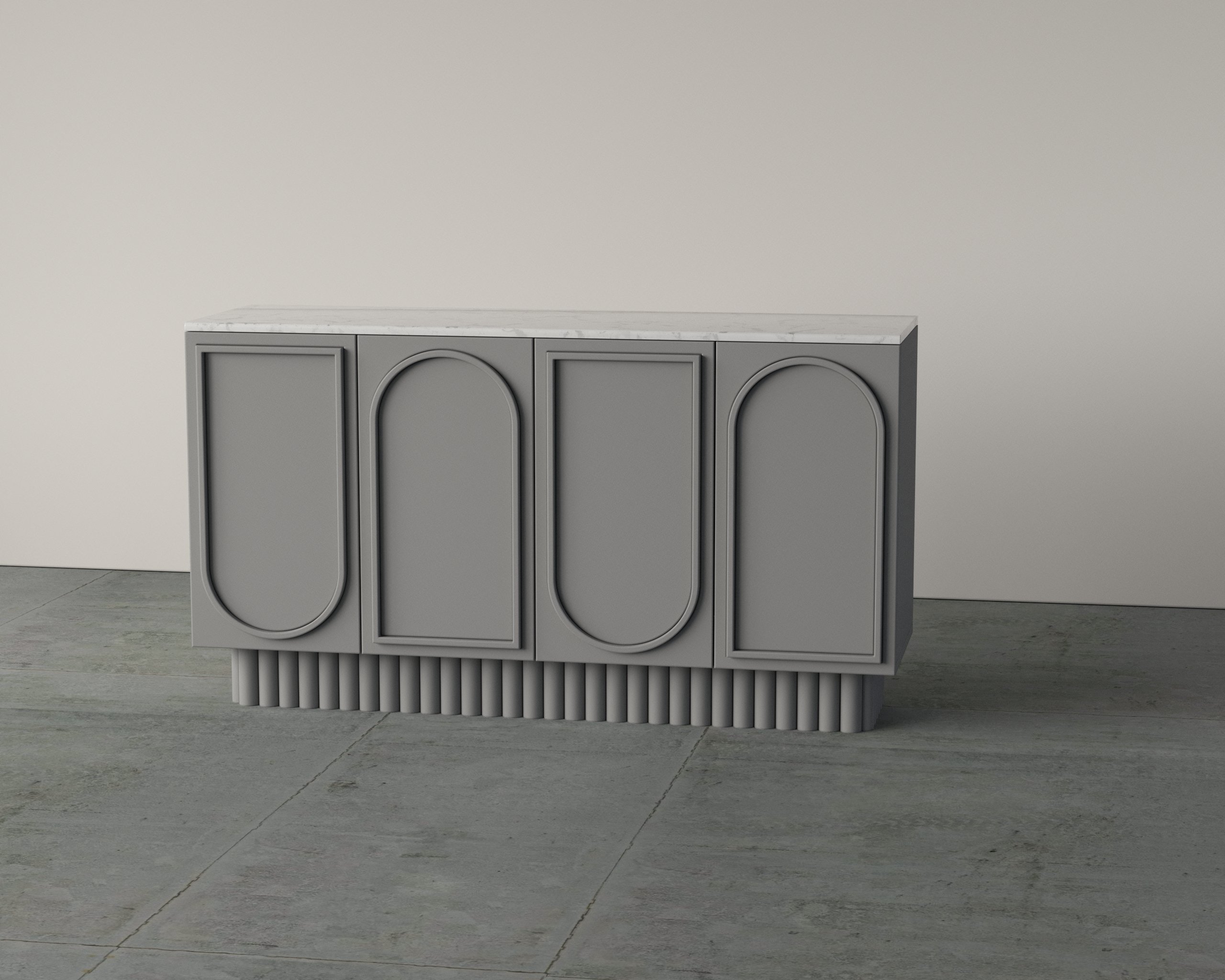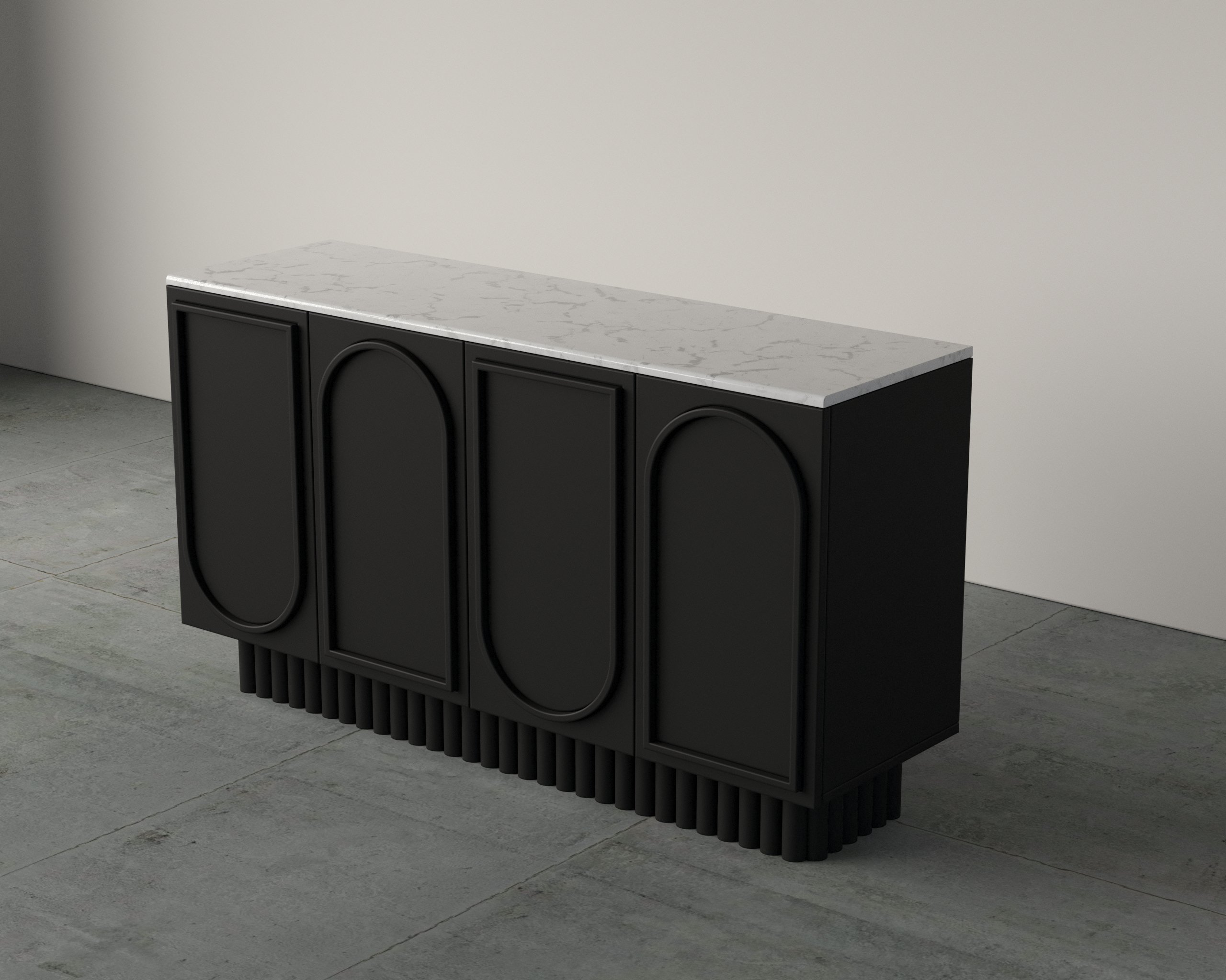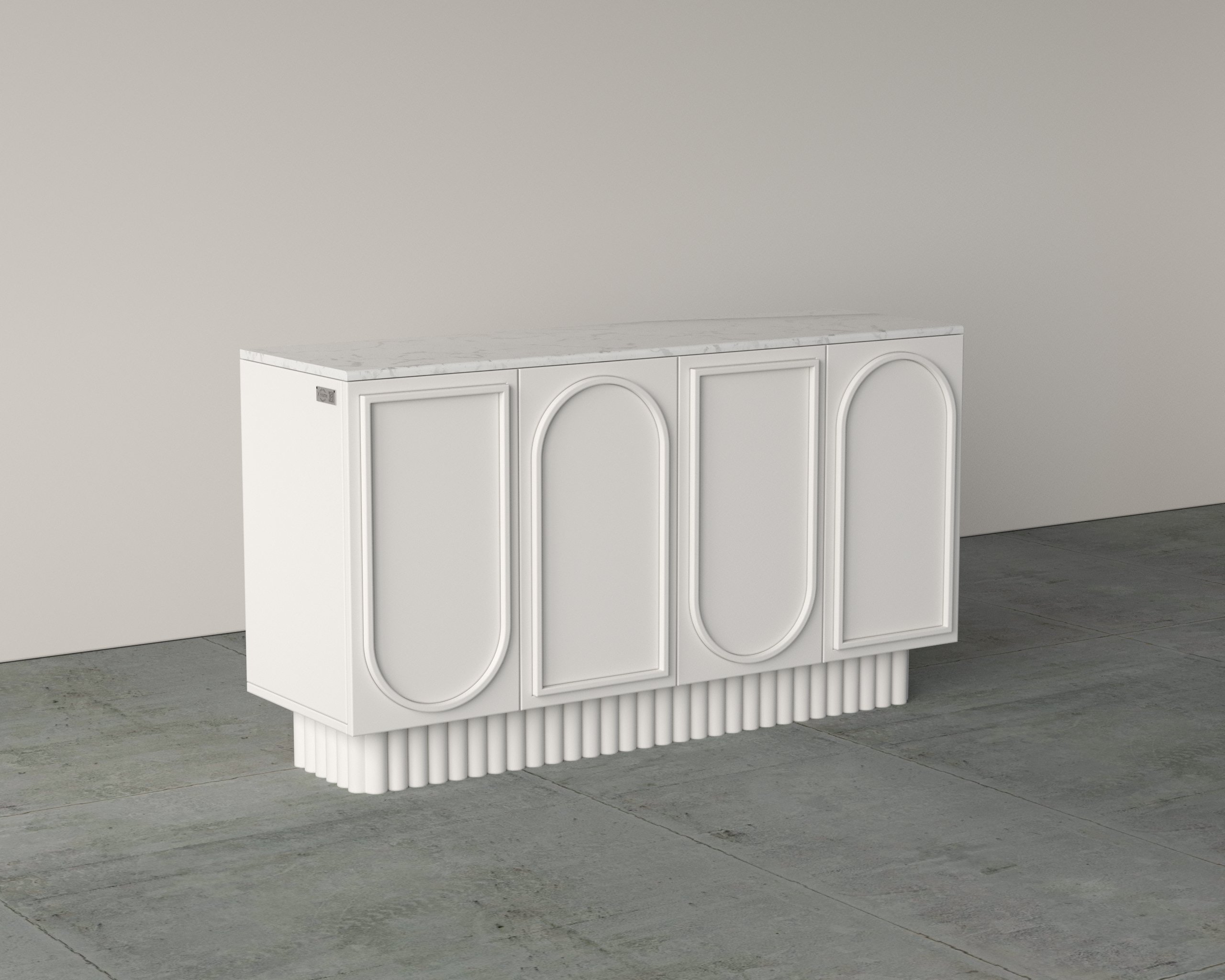 The Nous Dresser features an elegant arched-panel façade paired with a solid stone top, creating a balance of artistry and durability. Crafted with precision, it offers spacious internal shelving and smooth soft-close doors for everyday convenience. Its elevated base design adds visual lightness while ensuring stability. Ideal for dining or living spaces, it combines timeless design with practical storage.