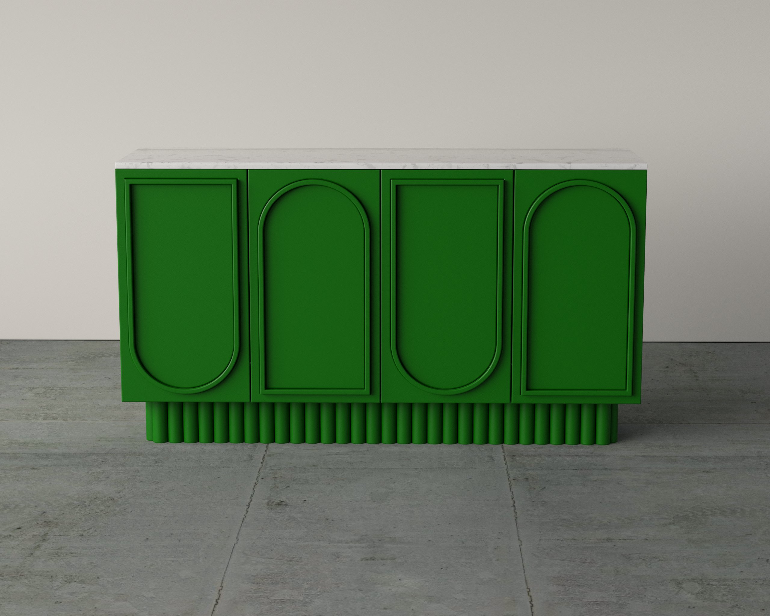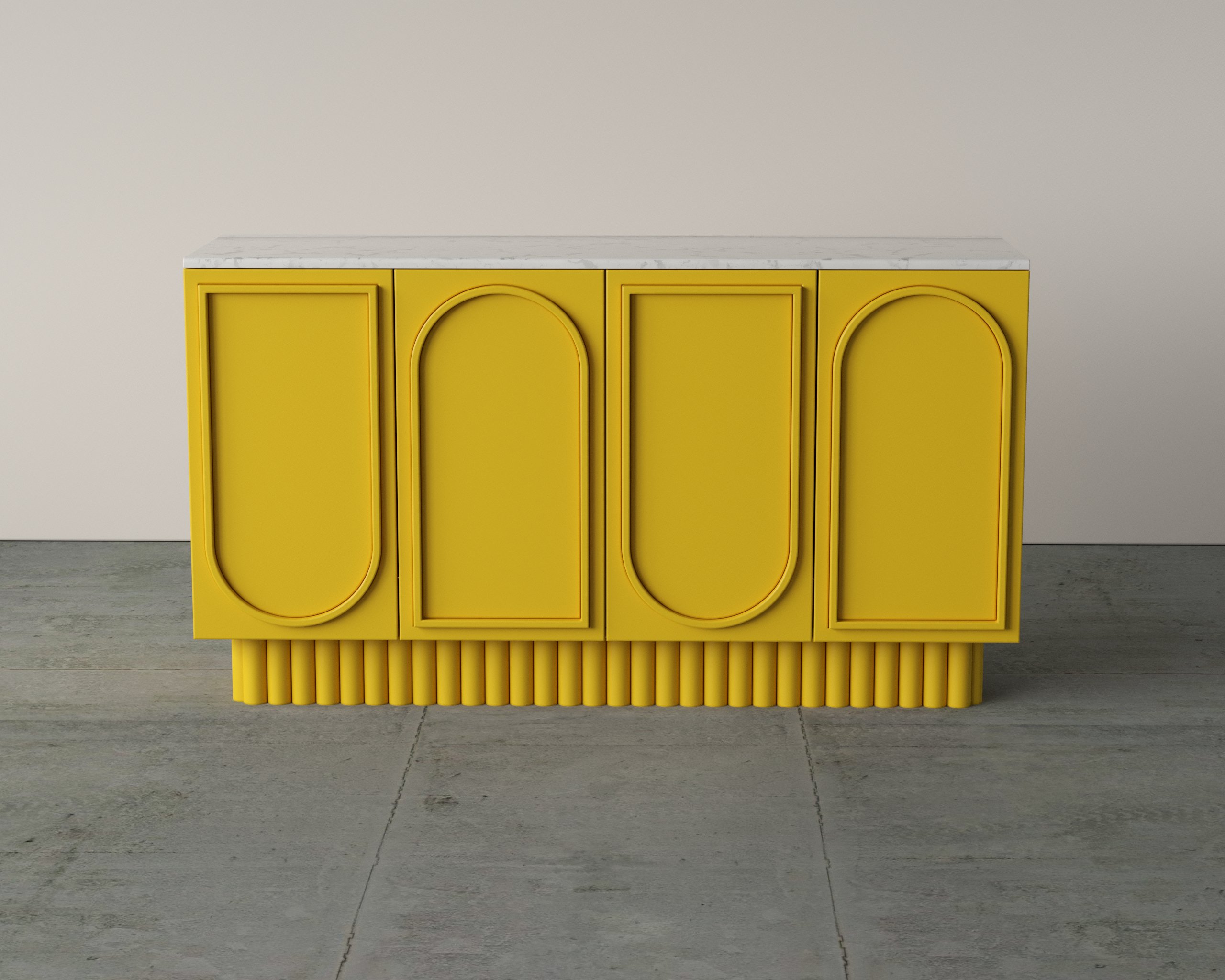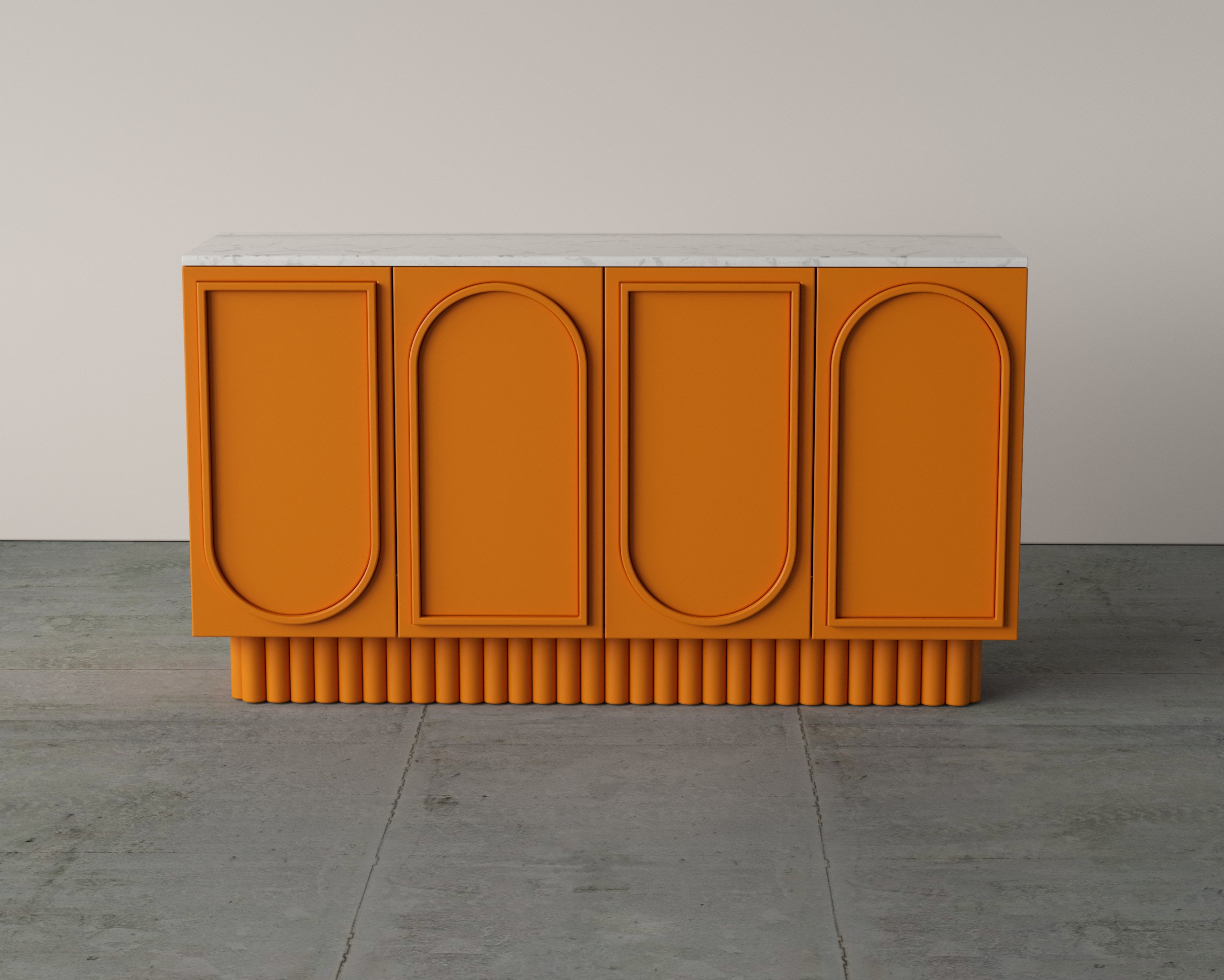 The Nous Dresser features an elegant arched-panel façade paired with a solid stone top, creating a balance of artistry and durability. Crafted with precision, it offers spacious internal shelving and smooth soft-close doors for everyday convenience. Its elevated base design adds visual lightness while ensuring stability. Ideal for dining or living spaces, it combines timeless design with practical storage.