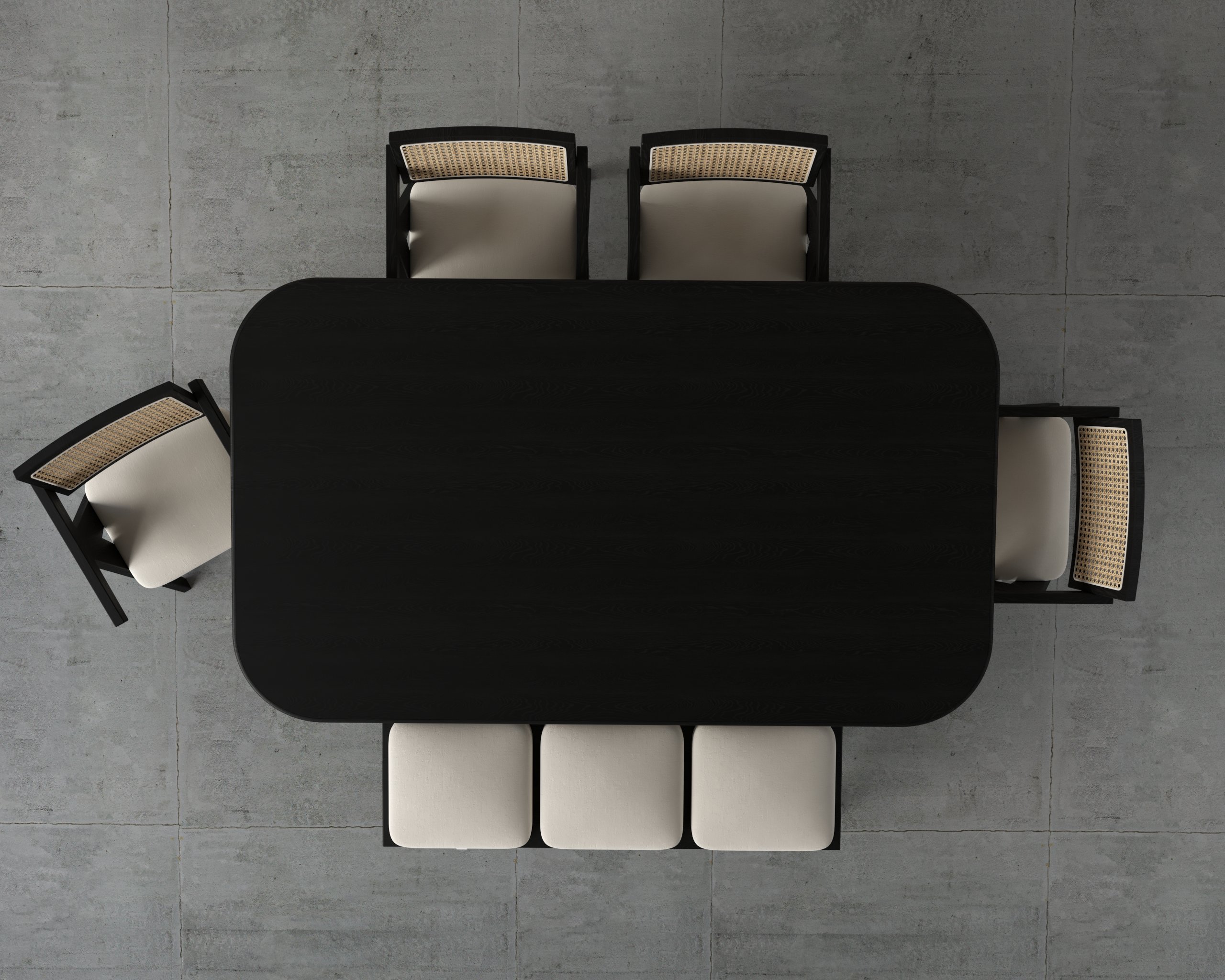 The Oaklyn Cane Dining Set blends contemporary structure with organic warmth through its solid wood craftsmanship and detailed rattan wood finishes. The spacious table, paired with ergonomically designed chairs and a cushioned bench, creates a cohesive and welcoming dining environment. Perfect for homes seeking a balance of style, comfort, and natural detail.