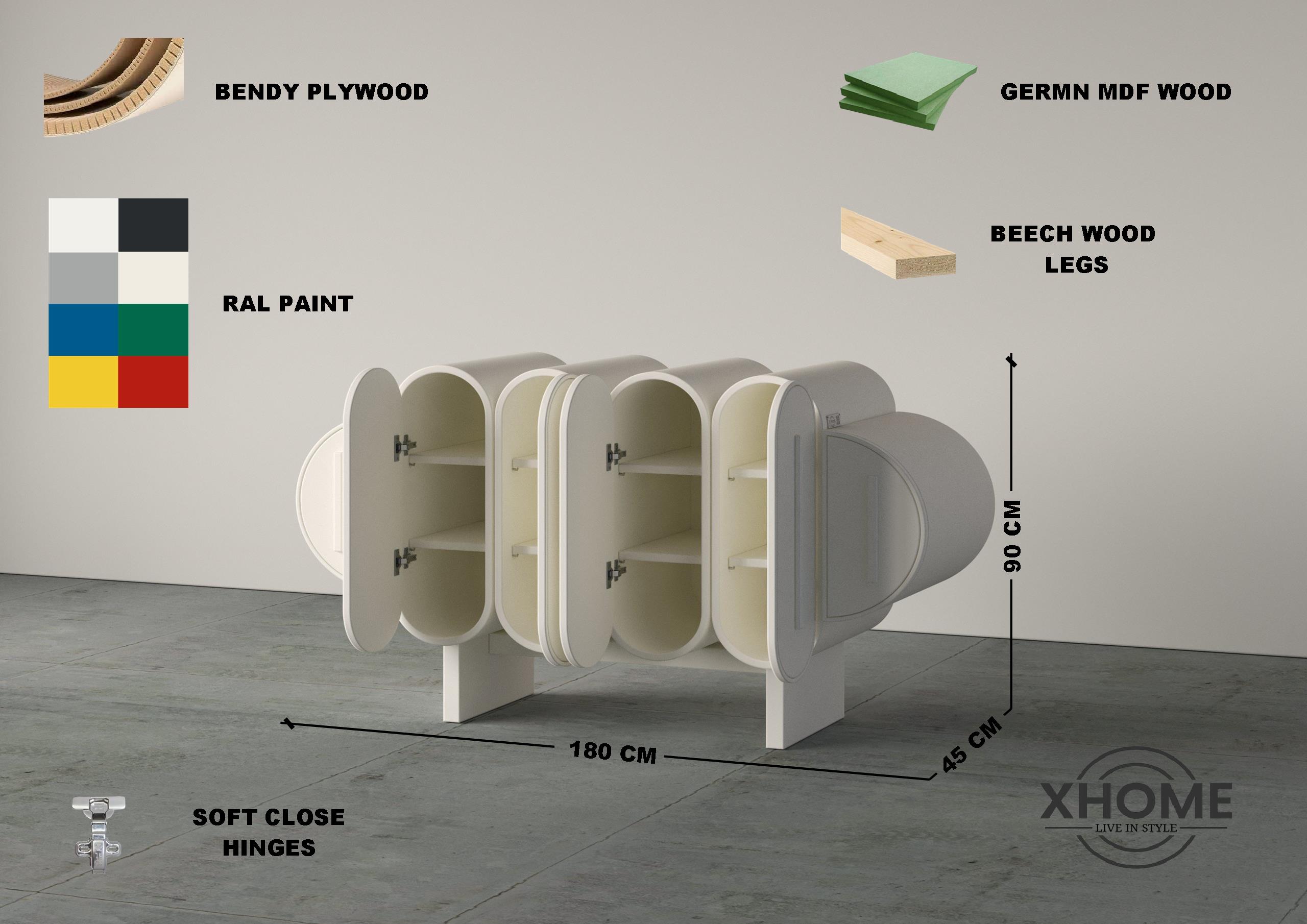 Inspired by fluid architectural shapes, the Olyra Dresser is crafted using curved construction techniques that create a bold yet refined silhouette. Its thoughtfully designed storage compartments and smooth-operating doors offer everyday practicality. A statement piece that elevates modern interiors with ease.