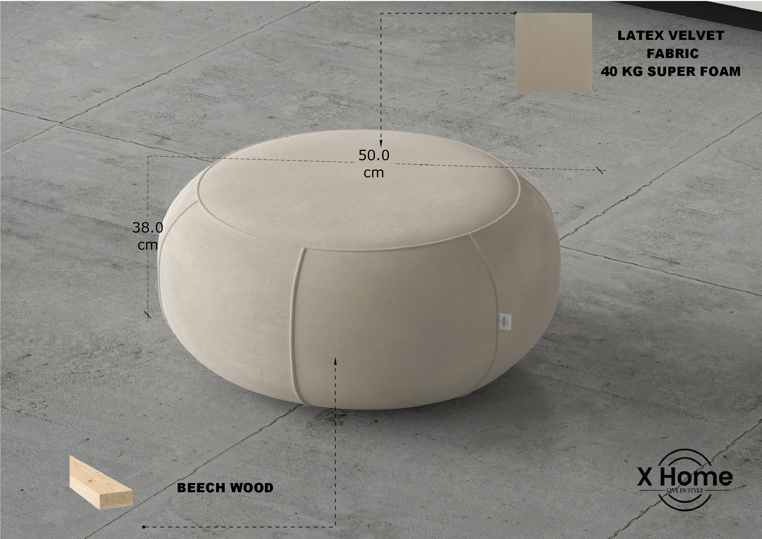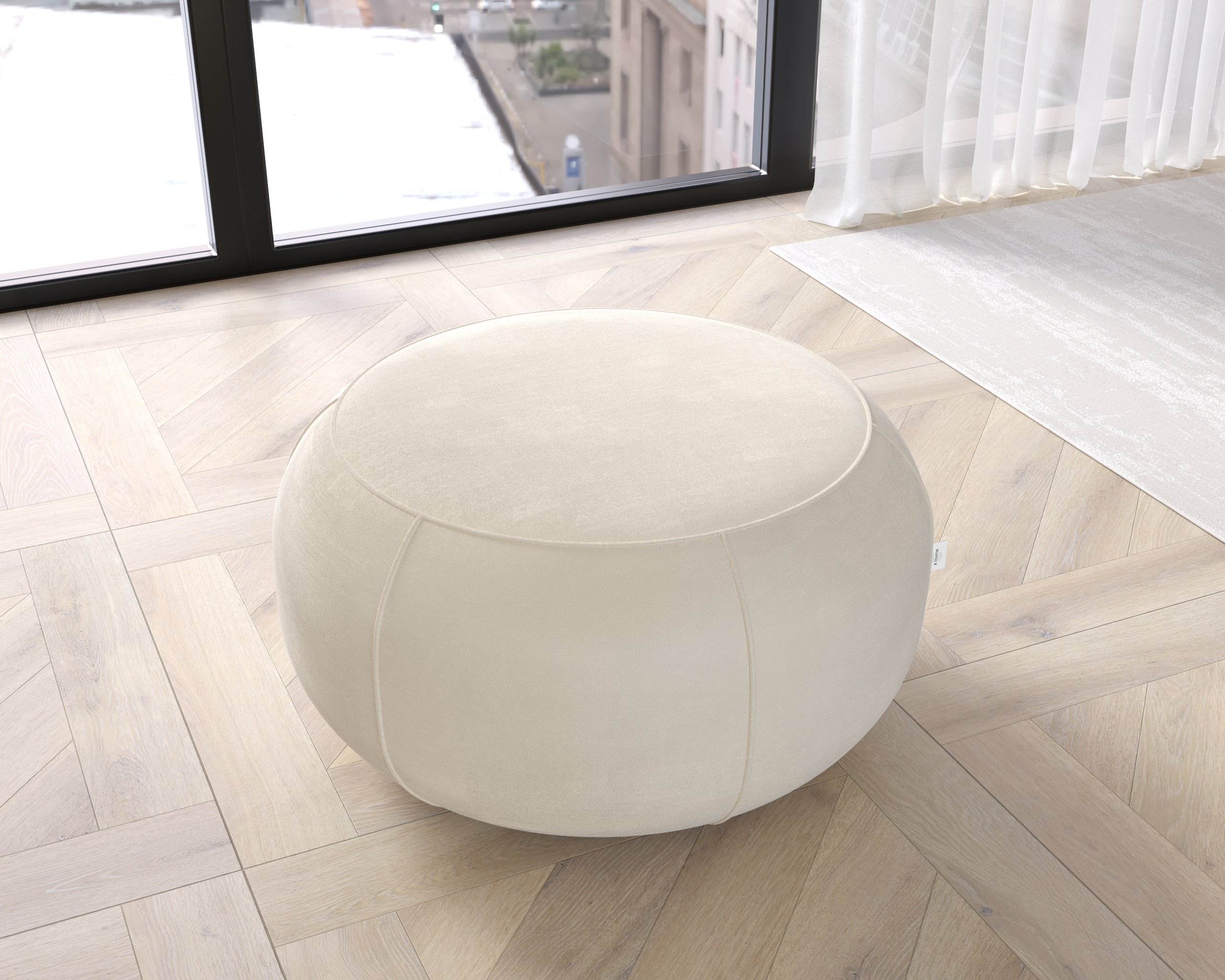 A soft, rounded pouf-style bench crafted with smooth contours and plush cushioning. Designed to bring comfort and sculptural charm to any interior.