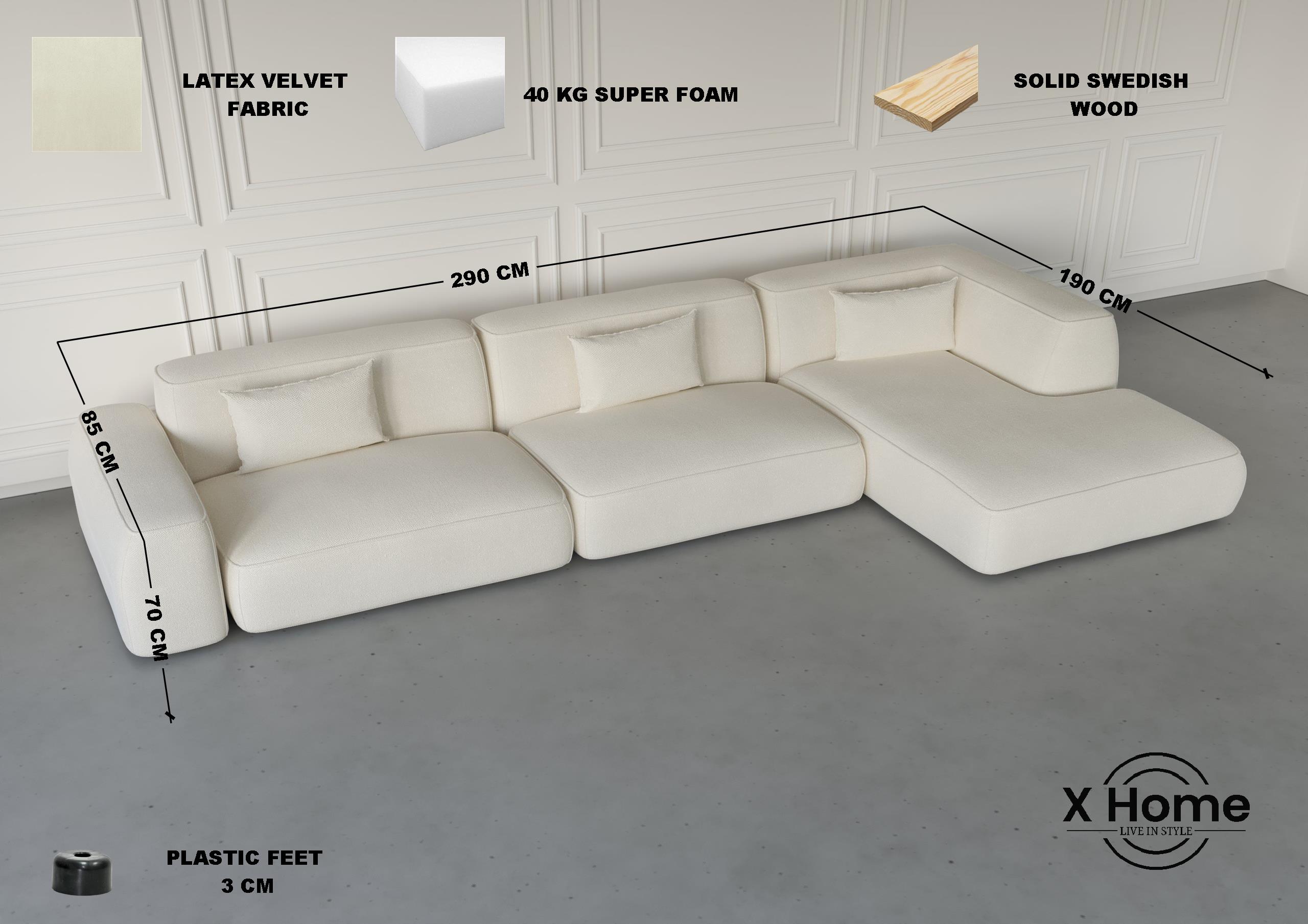 This L-shaped sofa blends modern elegance with everyday functionality. Designed with a clean, low-profile aesthetic, it offers a refined yet inviting seating experience. The deep seats and soft cushions create a cozy retreat, while the high-density foam filling ensures lasting shape and superior comfort. The modular design allows for flexible placement, ideal for open-plan living rooms or cozy lounge corners. With its smooth lines and tailored finish, this sofa brings understated sophistication to any interior.