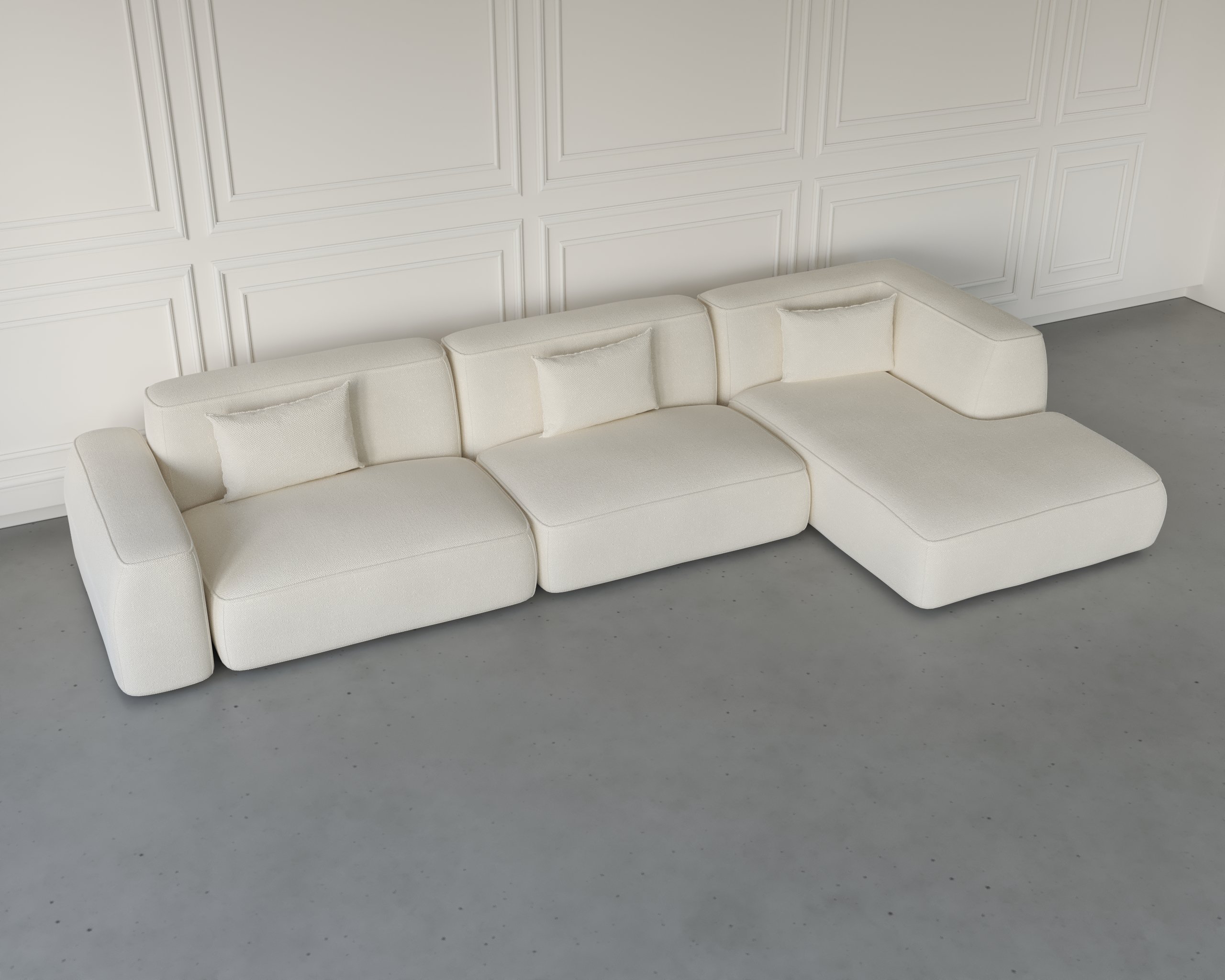 A modern L-shaped sofa featuring a minimalist silhouette, plush cushions, and dense foam for exceptional comfort and long-lasting support — perfect for contemporary living spaces.