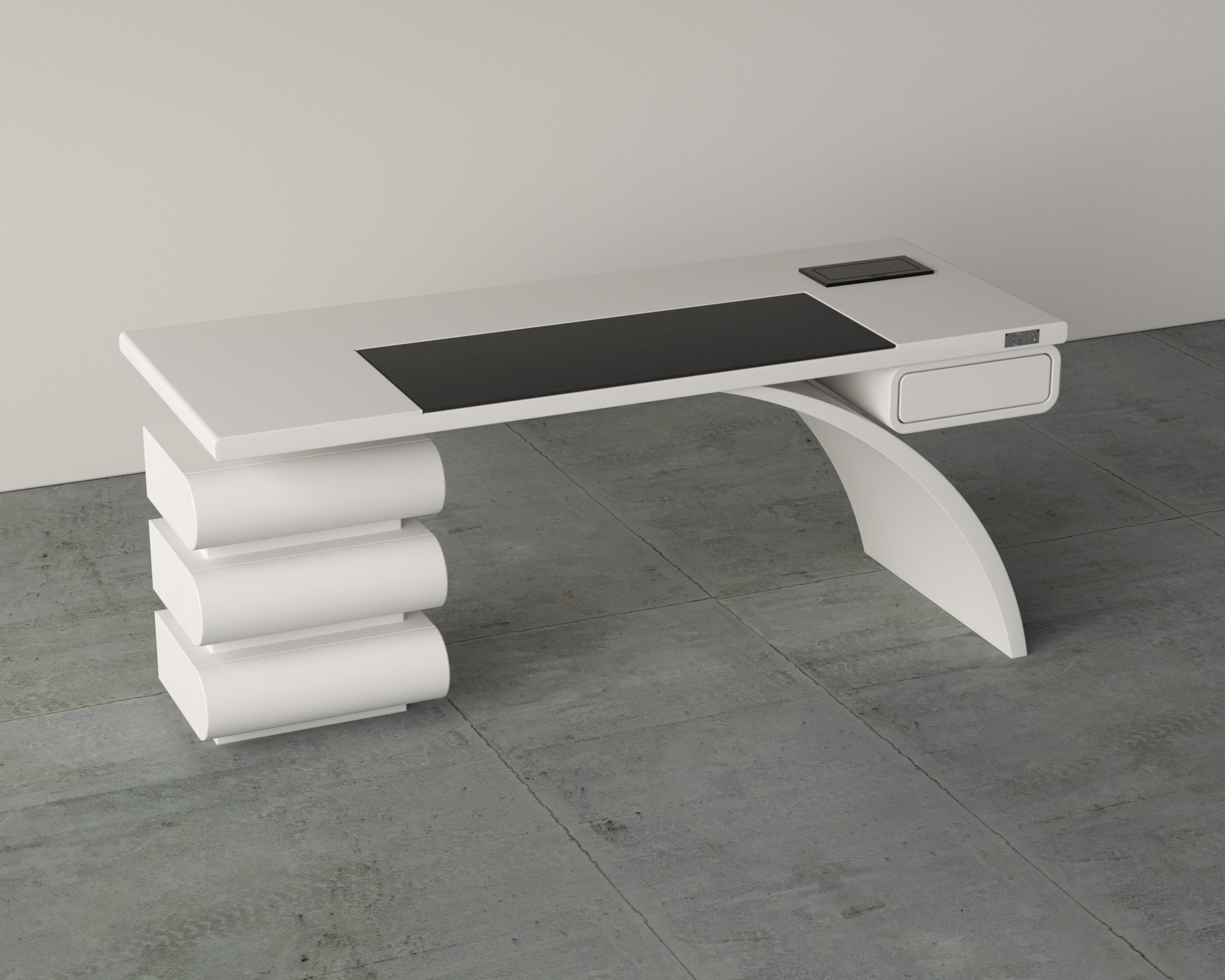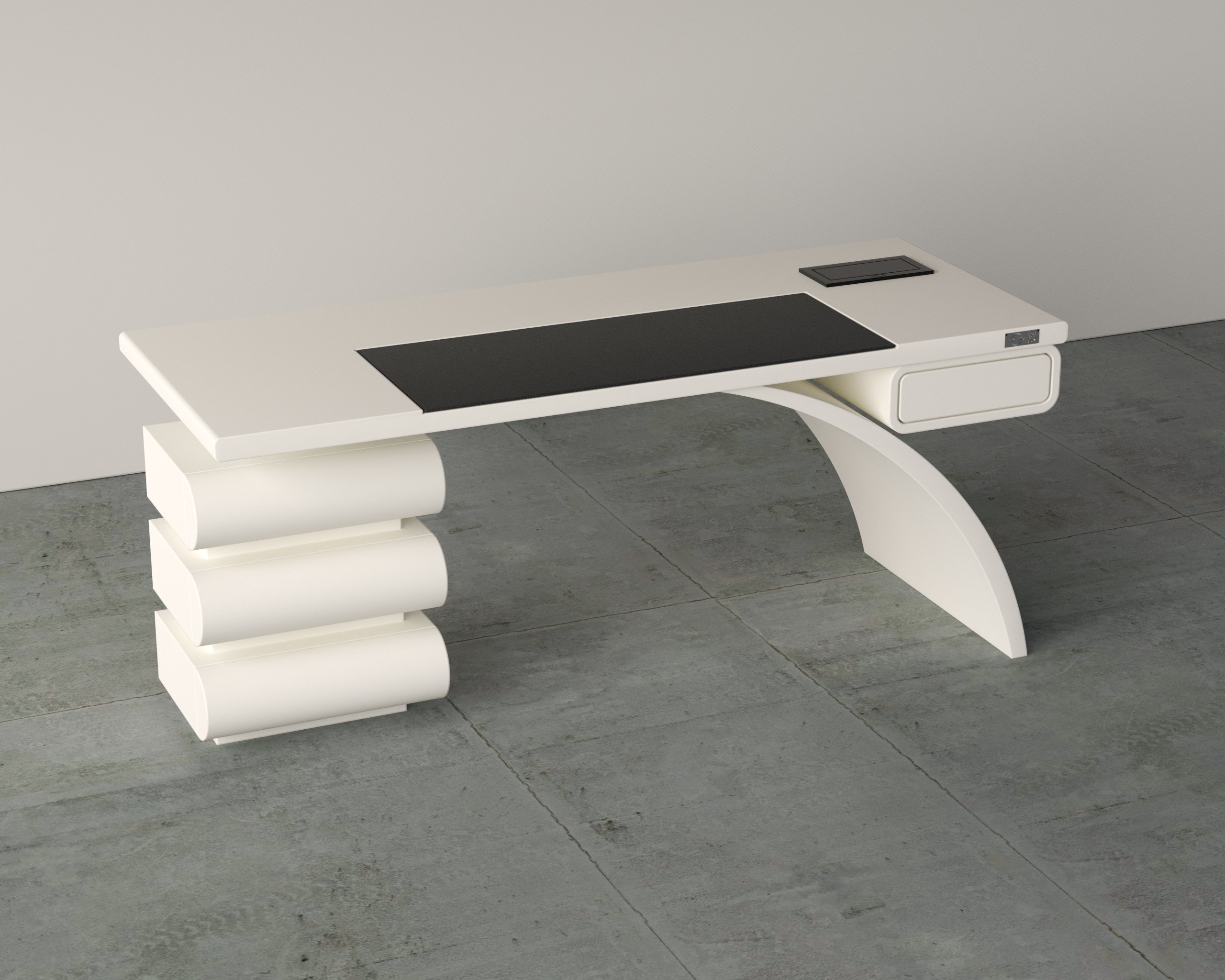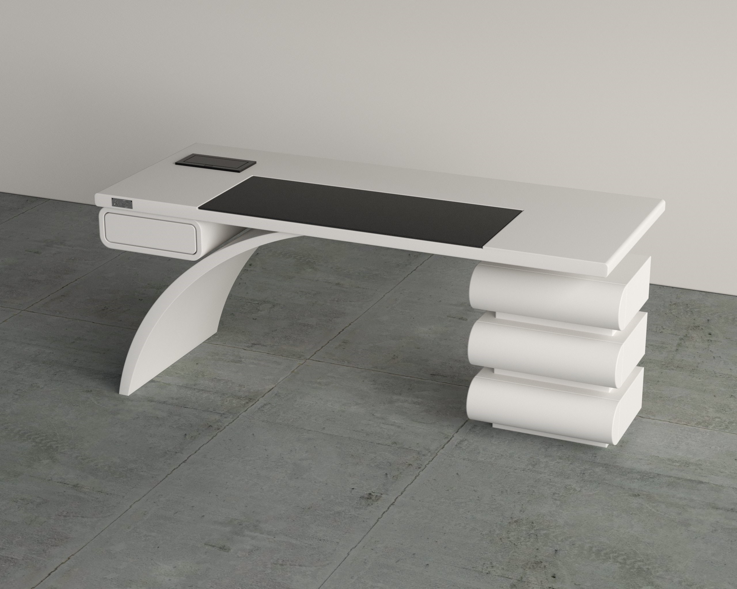 The Prestige Desk is a statement piece crafted to elevate any modern work space with sculptural design and integrated functionality. Designed for executives and creators, it blends refined form with practical workspace efficiency.