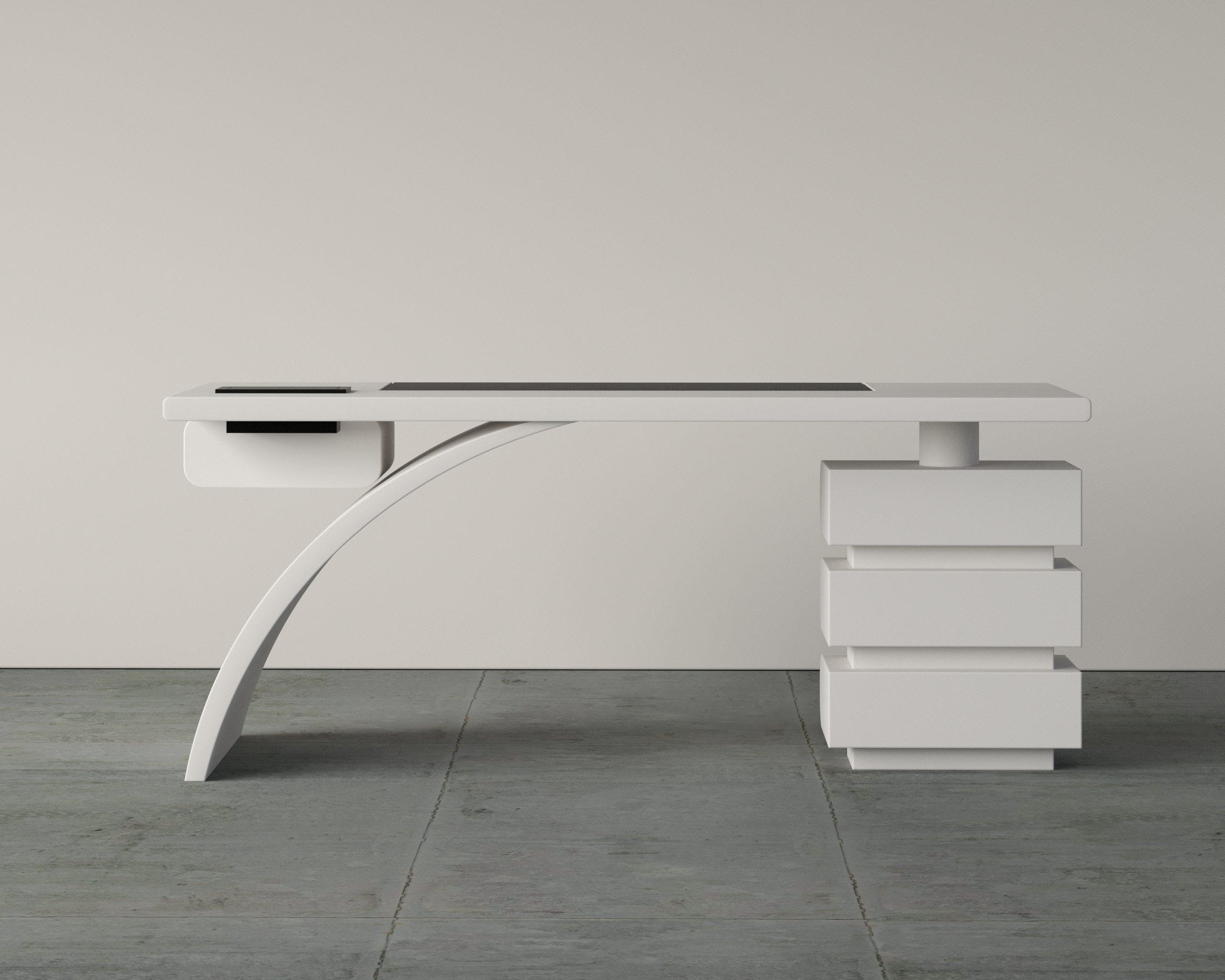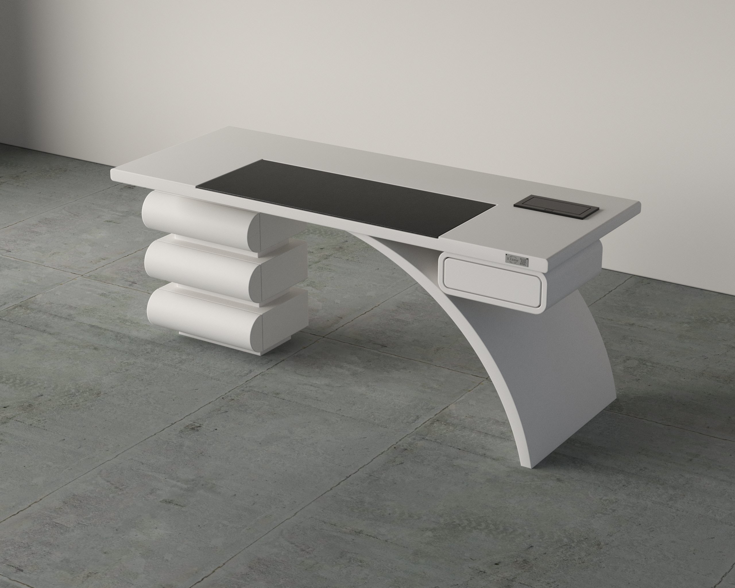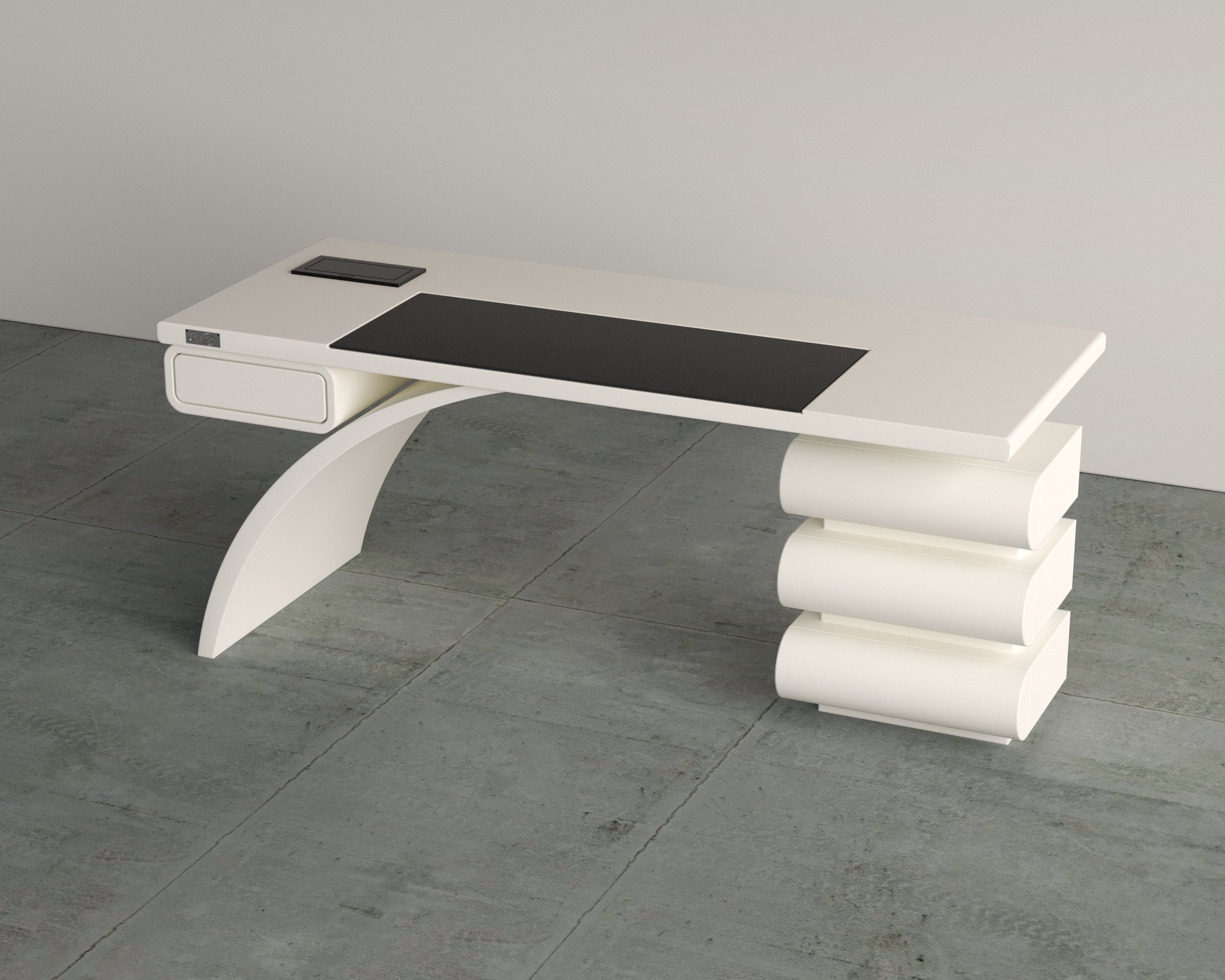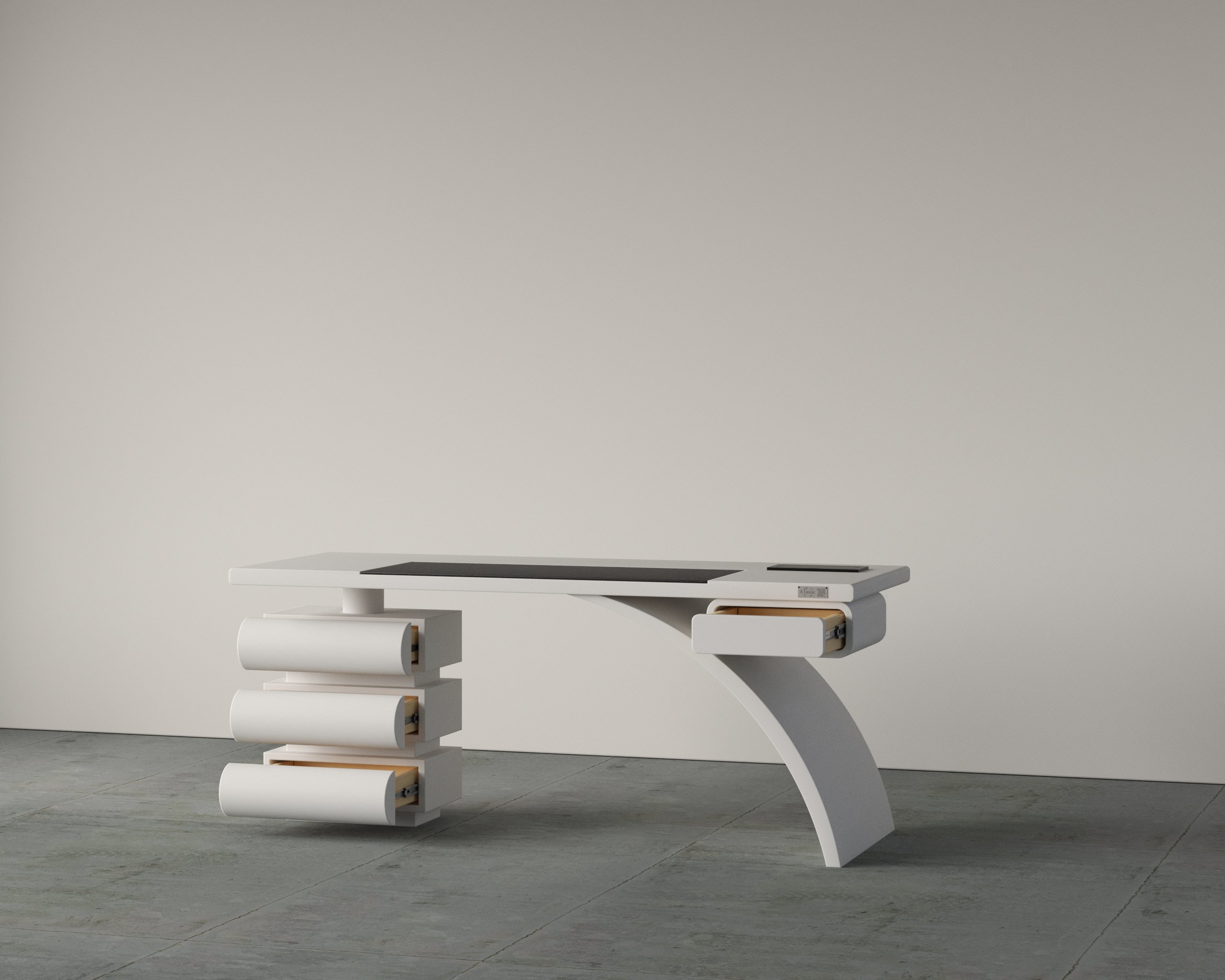 The Prestige Desk is a statement piece crafted to elevate any modern work space with sculptural design and integrated functionality. Designed for executives and creators, it blends refined form with practical workspace efficiency.