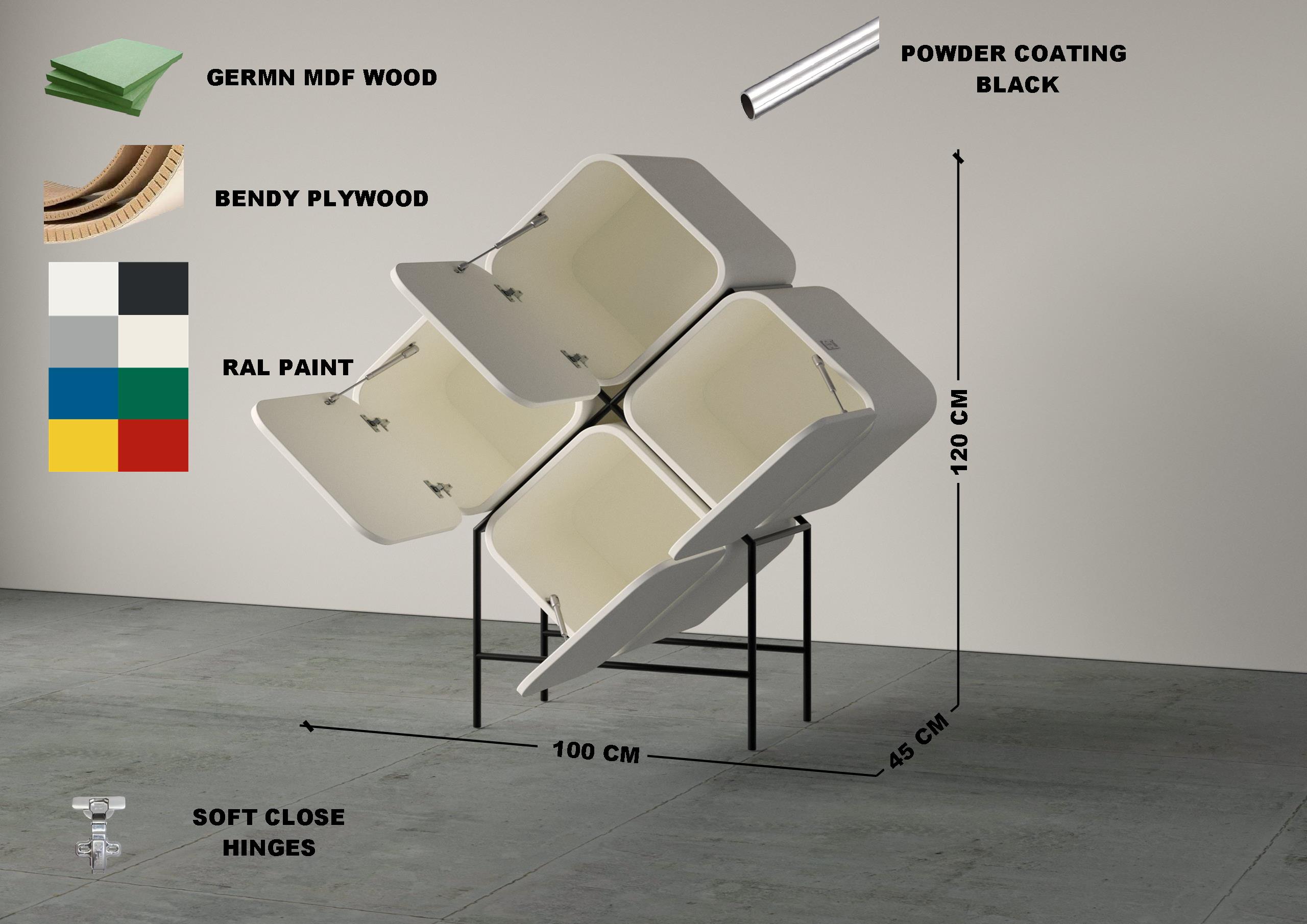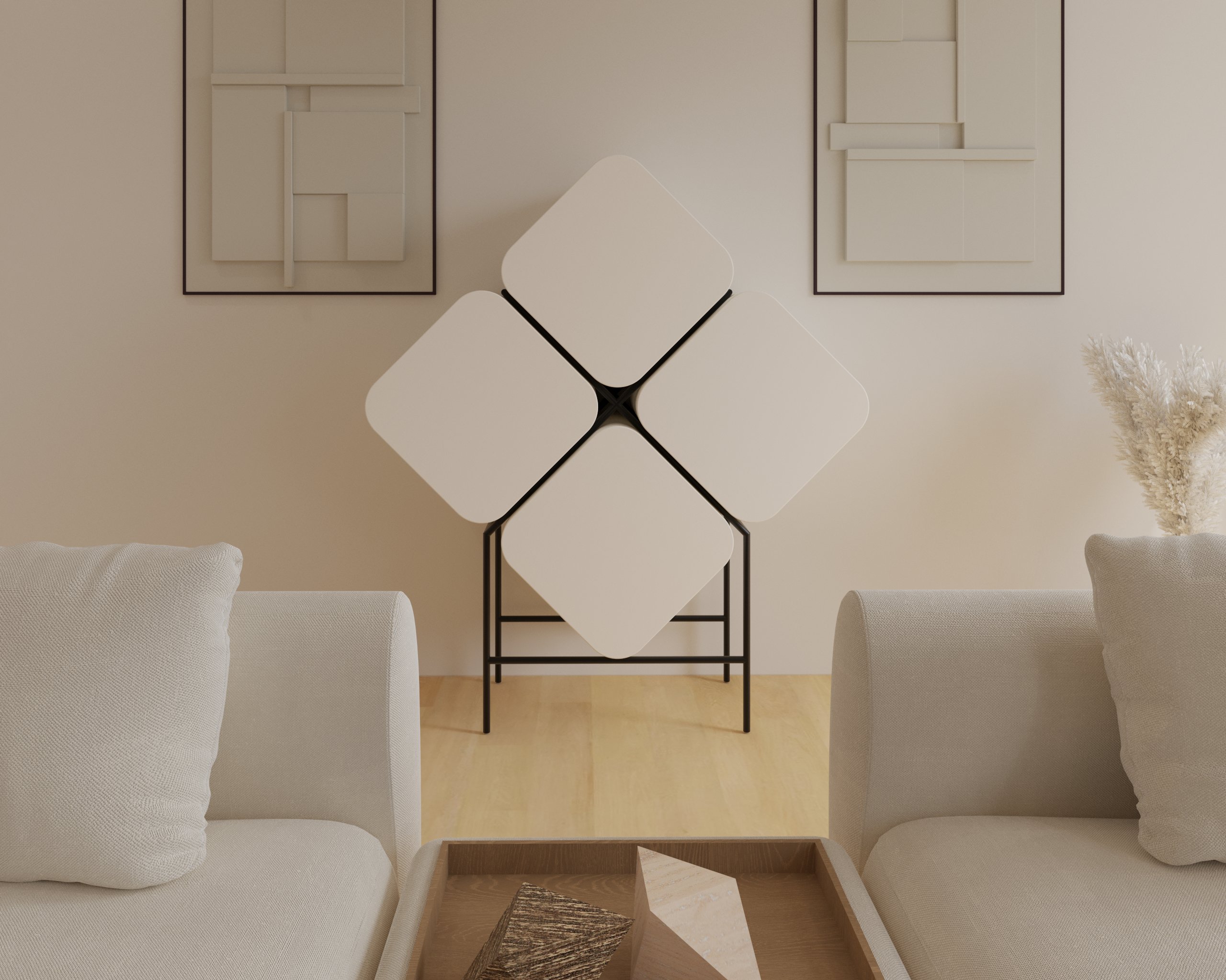 Defined by four intersecting forms, the Quadra Dresser transforms storage into functional art. Crafted with precision-engineered materials and supported by a sleek metal frame, it delivers durability, visual depth, and thoughtful organization in a compact footprint.