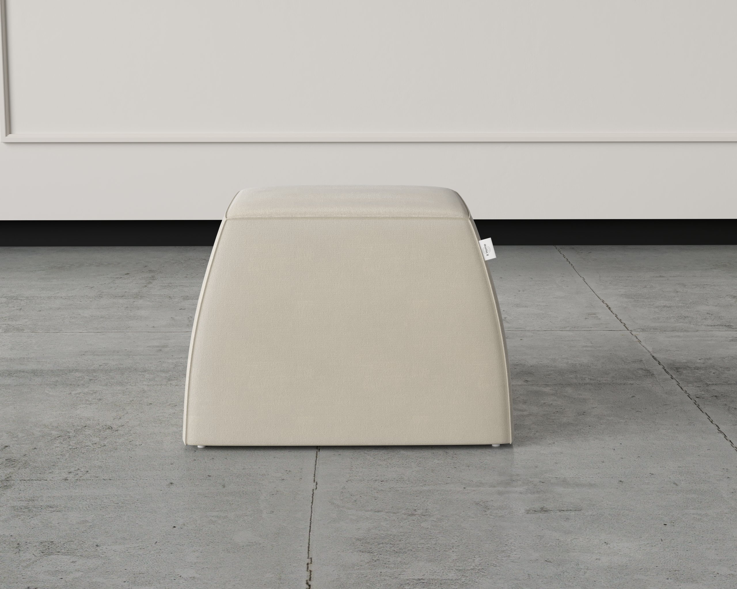 A modern geometric pouf bench featuring clean lines and a soft cushioned top. Designed to blend comfort with sculptural simplicity.