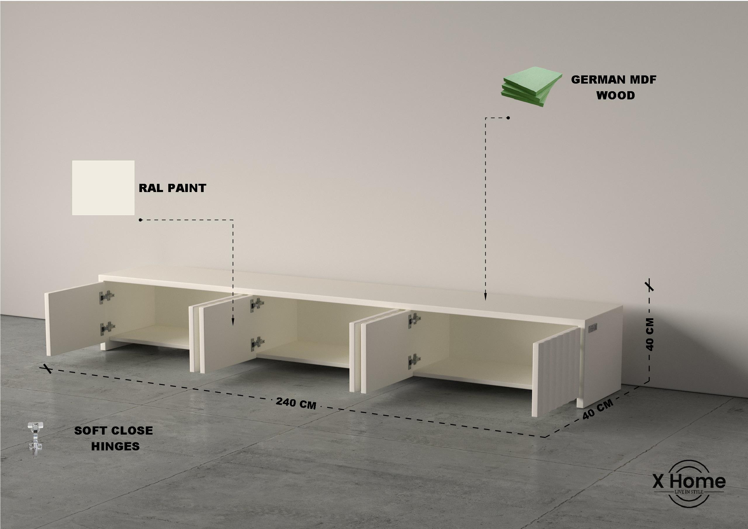 The Ribbloc TV Unit showcases a sculpted ribbed façade that adds depth and rhythm to its clean, elongated structure. Its spacious compartments and soft-close hinges ensure smooth, practical everyday use. Crafted from premium materials, Ribbloc blends durability with modern design elegance.