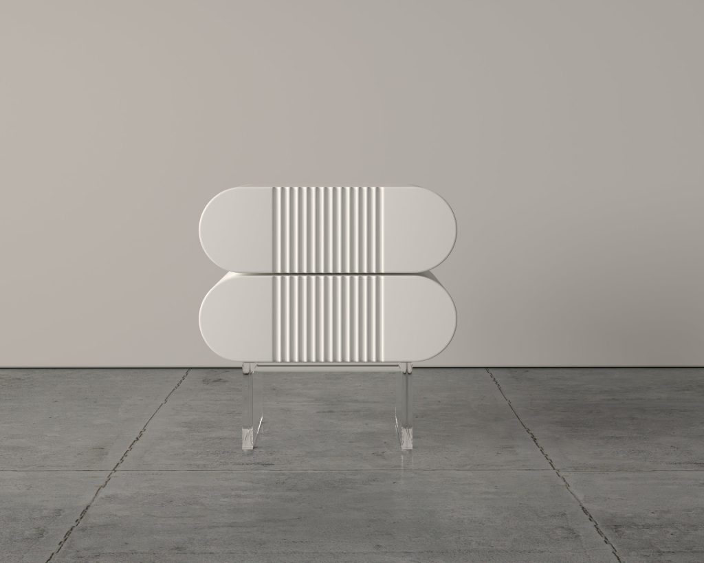 ribbed, textured, tall nightstand, sculptural, Serena, modern deco