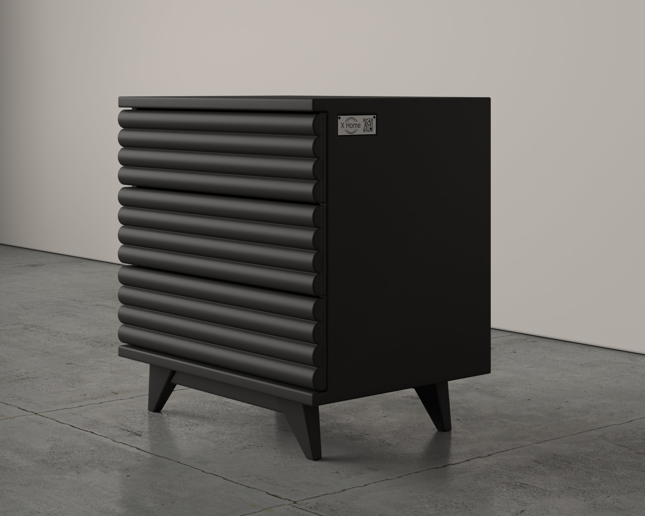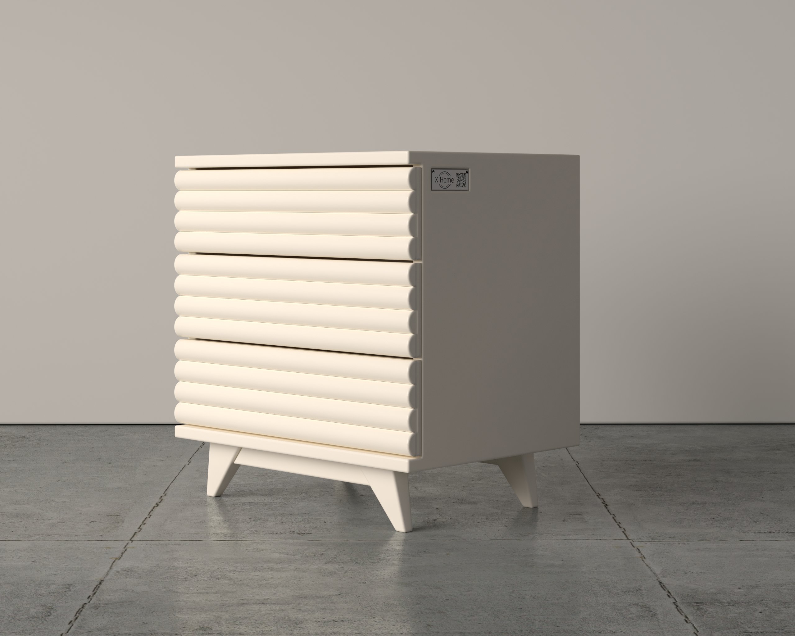 The Serena Bedside Table is where calm elegance meets sculptural form. Its curved ribbed drawer fronts add dimensional texture and visual rhythm, softened by a neutral matte finish. Tapered, angled legs give the piece a light stance, while the taller profile enhances presence beside higher beds or in rooms where height matters. Designed for modern, art deco, or transitional spaces, Serena blends subtle flair with practical two-drawer storage.