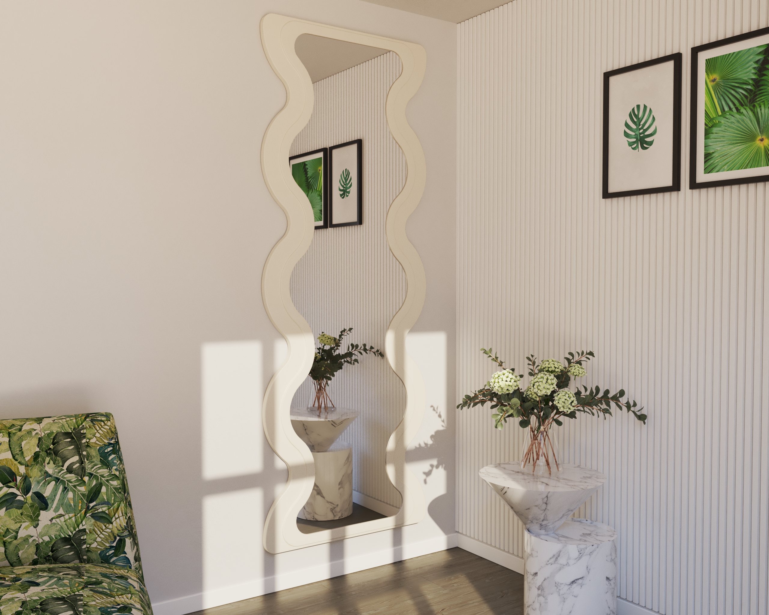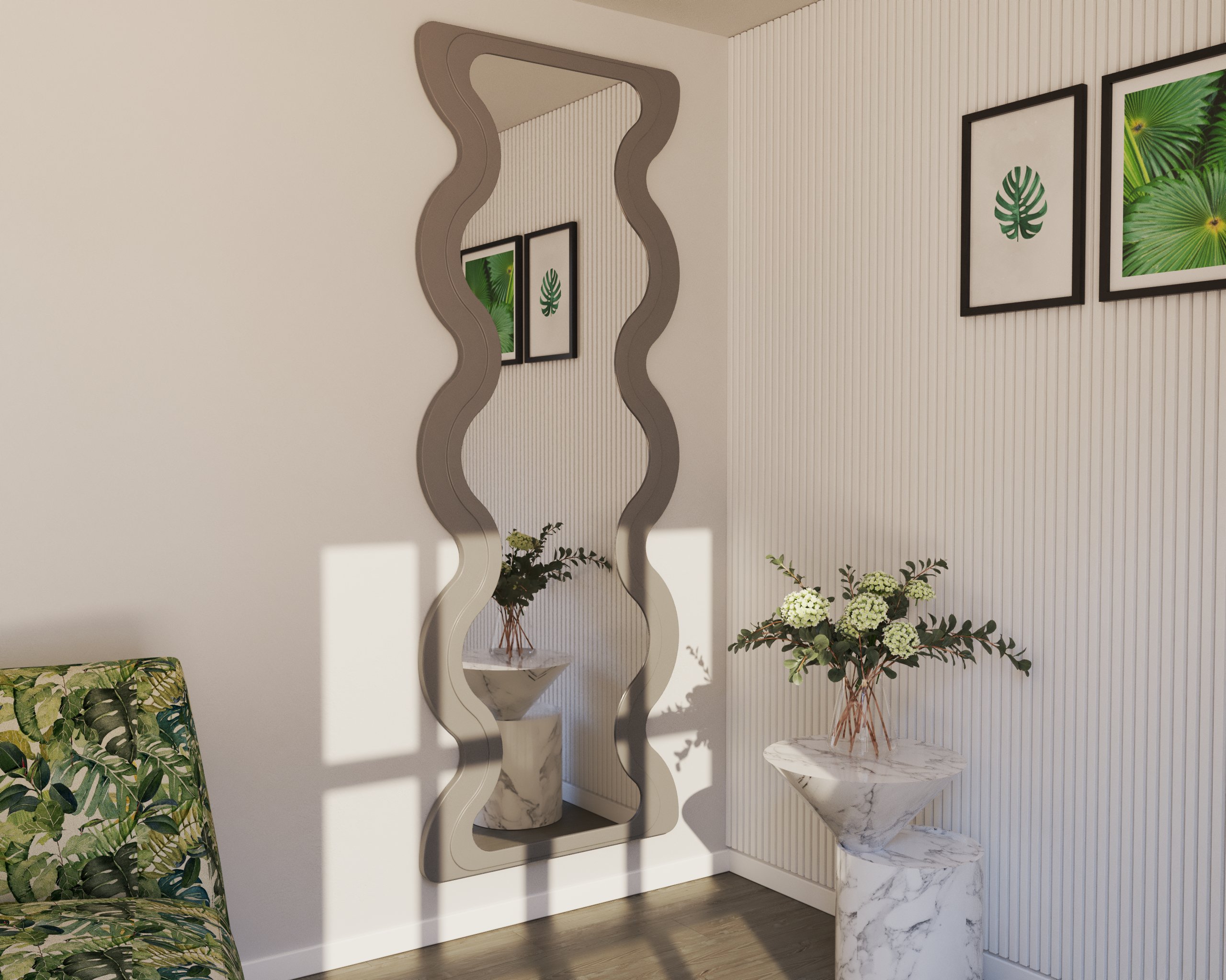 The SlimWave Mirror blends artistic curves with a refined full-length silhouette, creating a visually captivating accent for bedrooms, hallways, and living spaces. Its slim, sculptural wave design adds movement and sophistication while maintaining a clean contemporary feel. Built using high-quality materials, it enhances both décor and functional daily use.