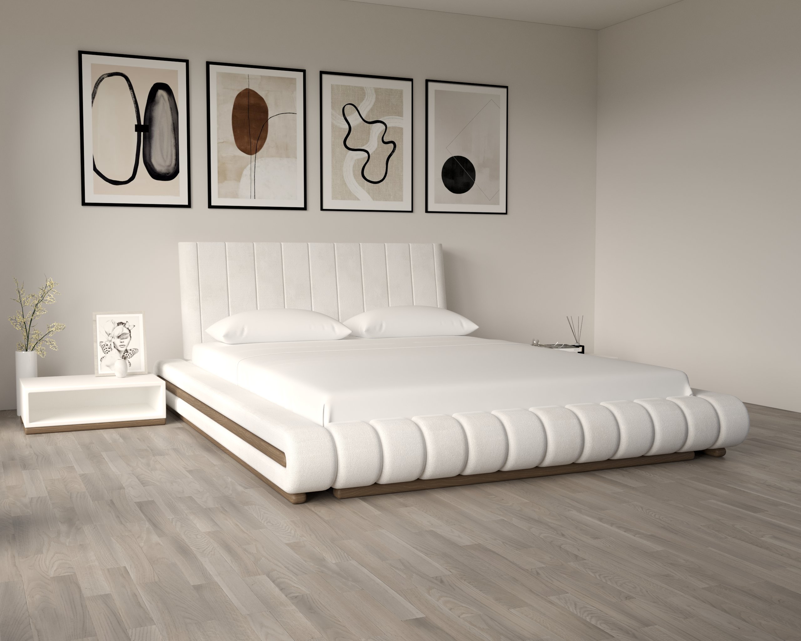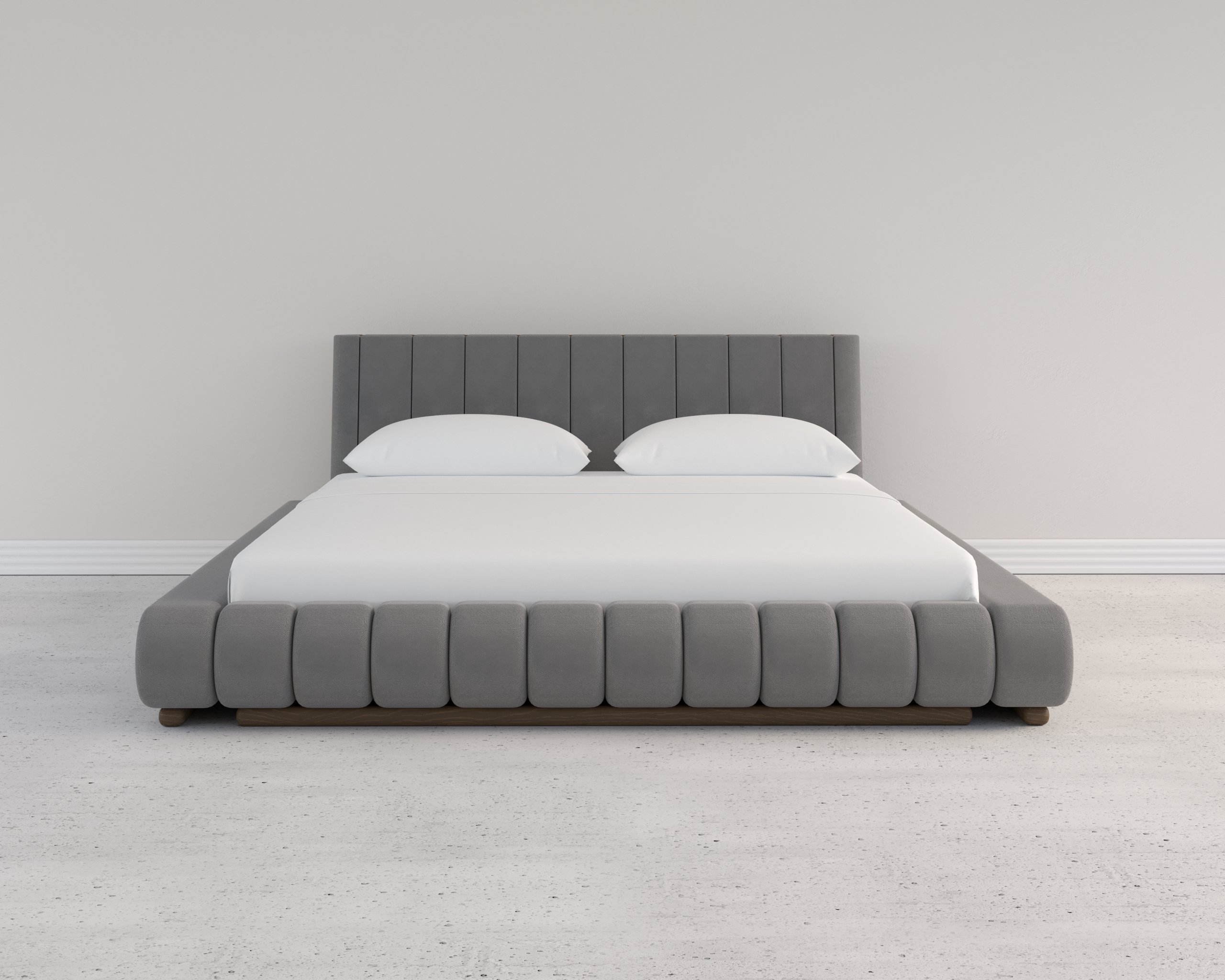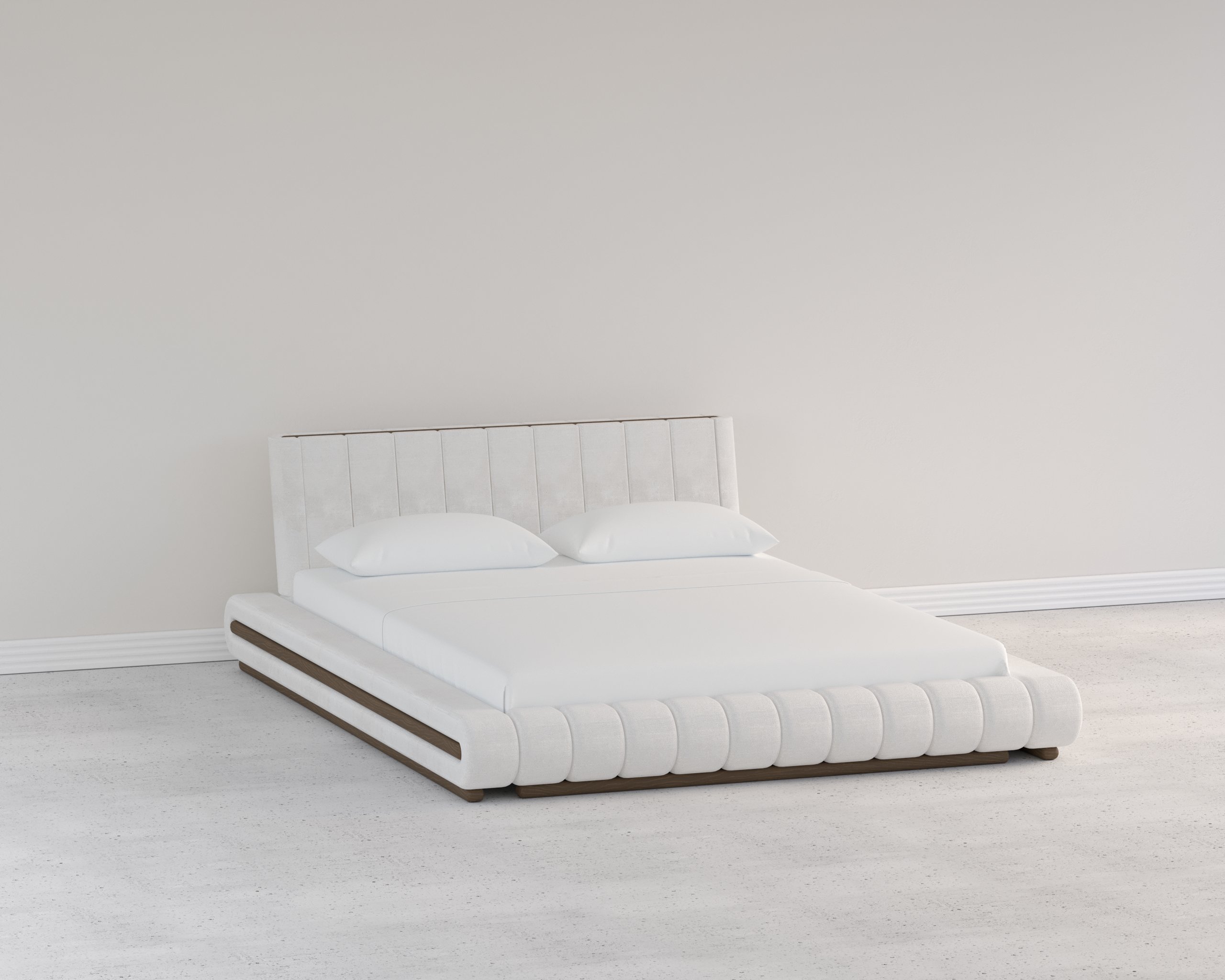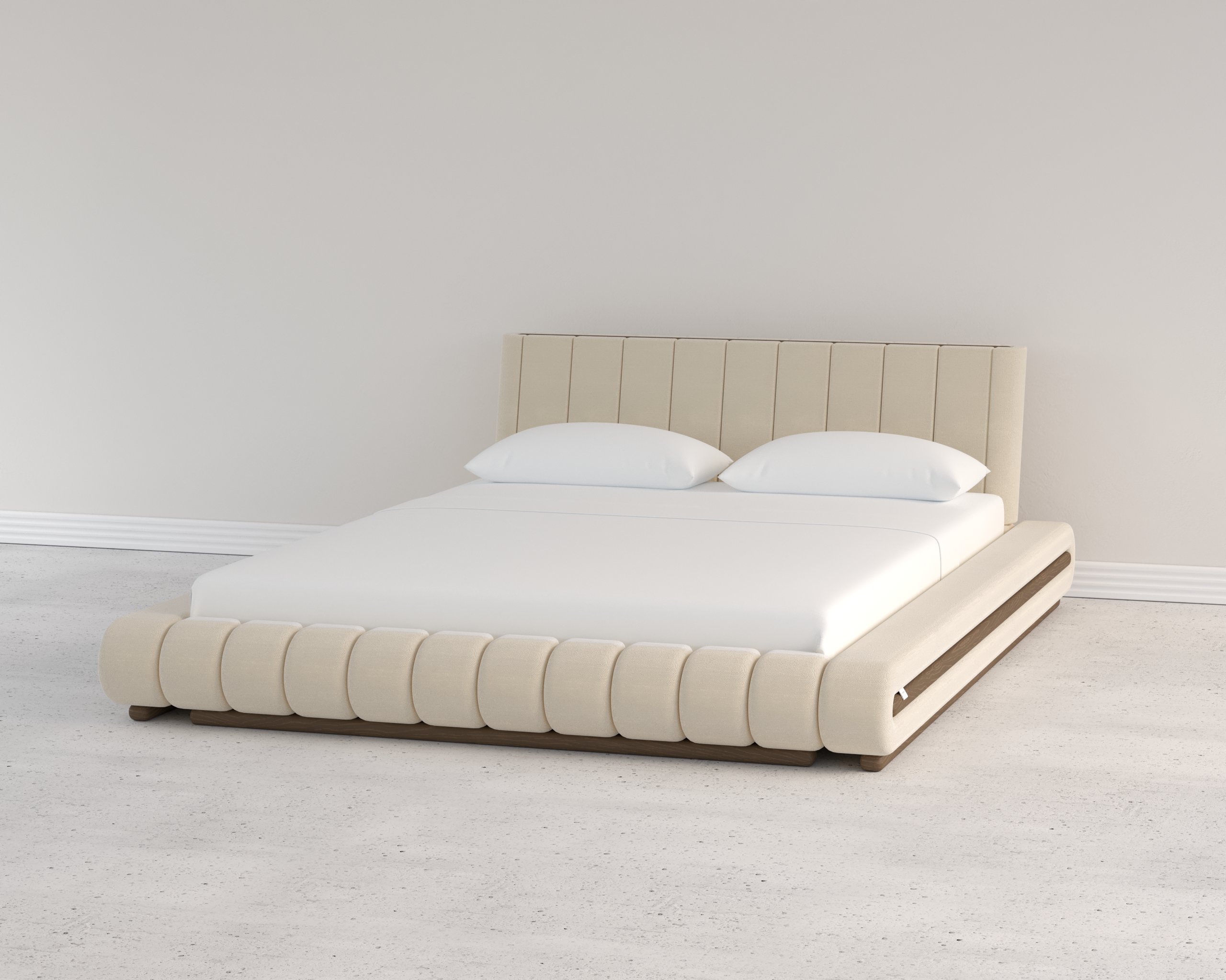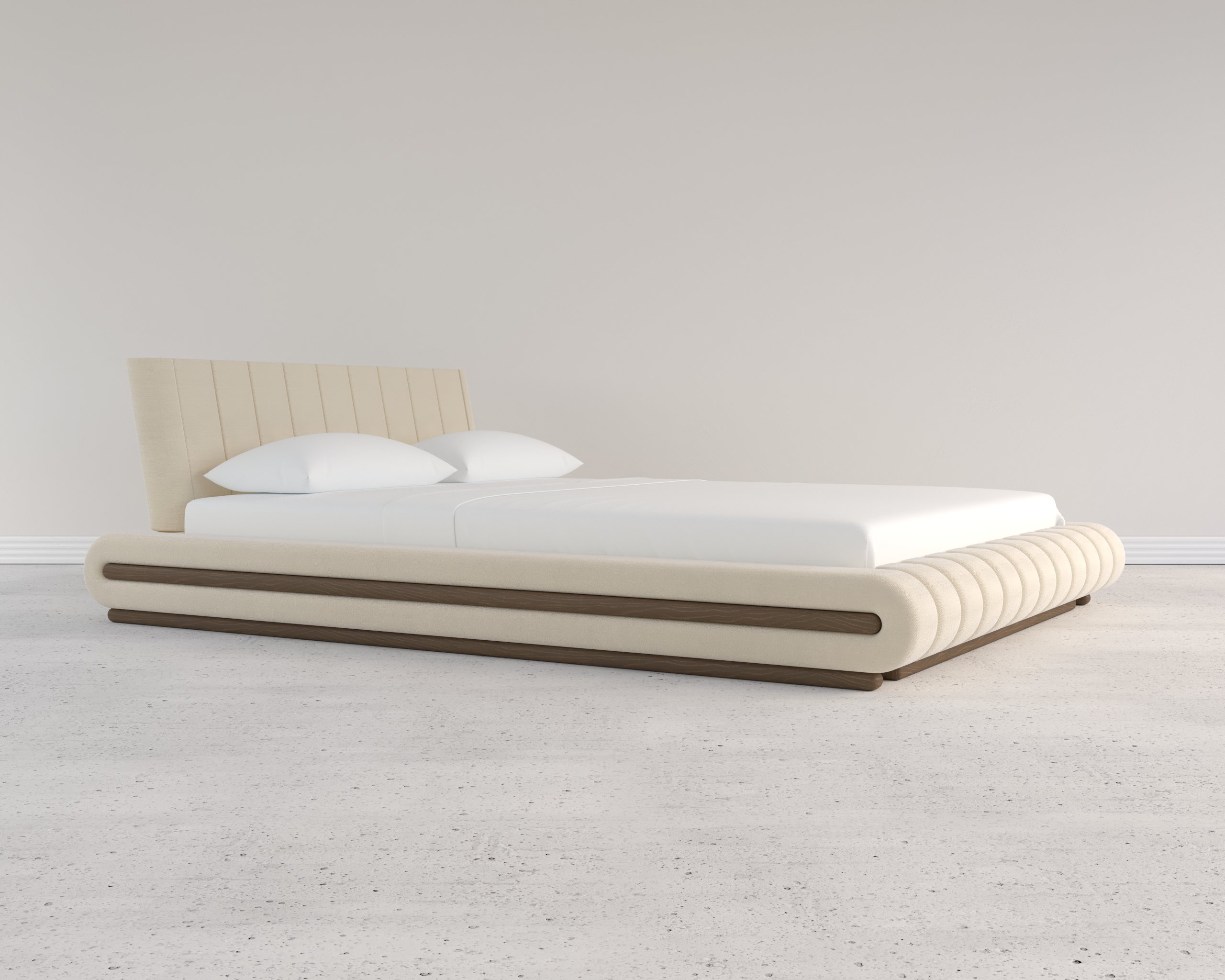 The bed’s soft, rounded edges and low silhouette create a smooth, inviting visual flow—perfect for modern minimalist interiors. - Channel-Tufted Headboard