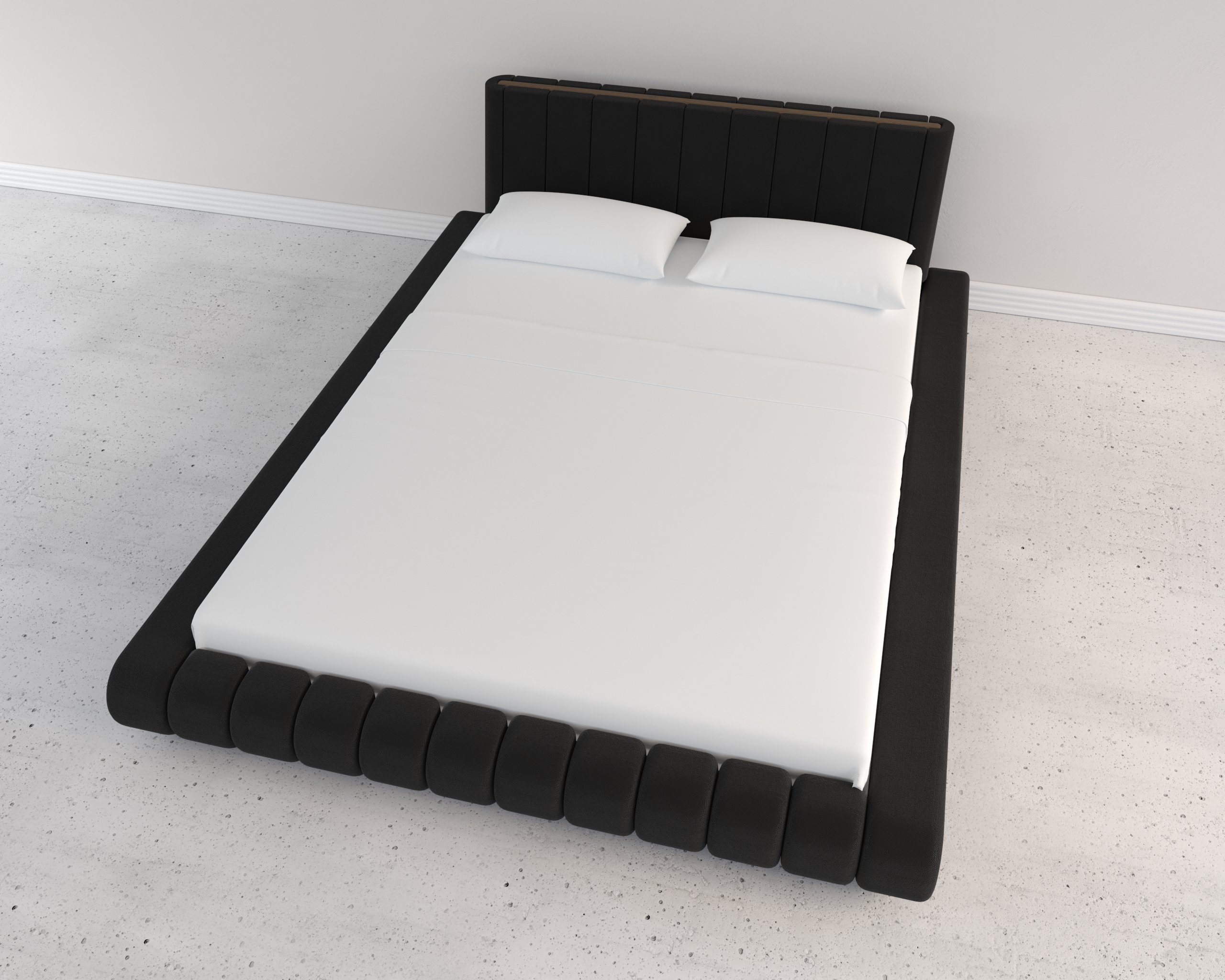 The design maintains visual unity by merging the headboard, side rails, and footboard into one continuous padded form, eliminating sharp transitions. - Low, Grounded Profile