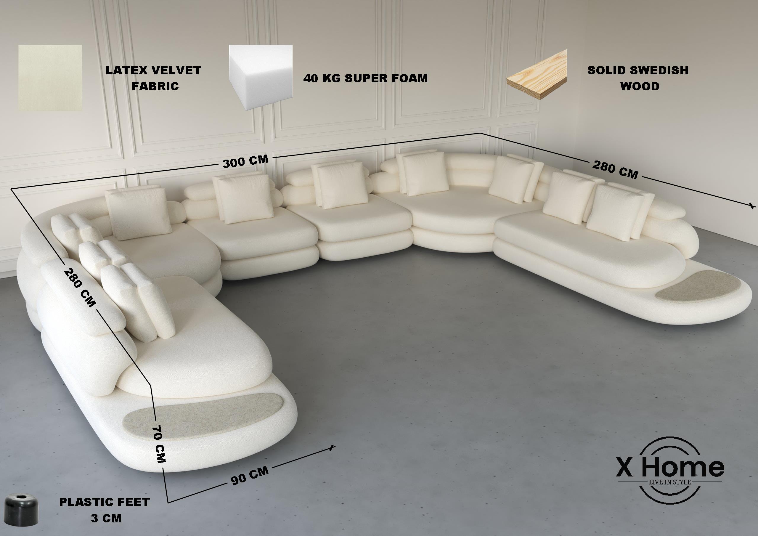 This sophisticated U-shaped sectional sofa redefines comfort and contemporary design through its seamless blend of form and function. Crafted with 40 kg high-density foam, it offers long-lasting support and a plush seating experience, ensuring both relaxation and durability. The sofa’s fluid silhouette features smooth, rounded lines that create a harmonious visual balance while enhancing the sense of softness and space within any interior.