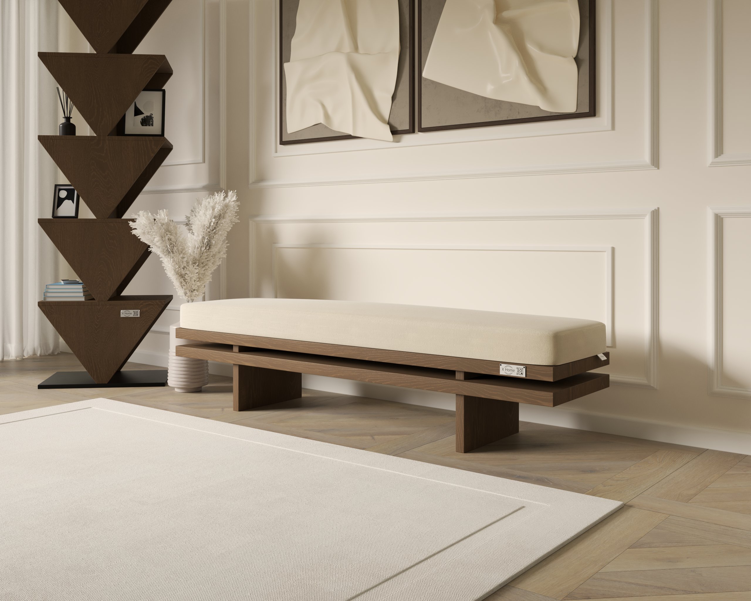 The Vistaar Bench blends minimalist architecture with a supportive cushioned top, offering both style and functionality. Its extended profile adds visual balance while providing ample seating. Crafted with premium materials, it delivers durability and contemporary elegance suitable for living rooms, bedrooms, hallways, or commercial spaces.