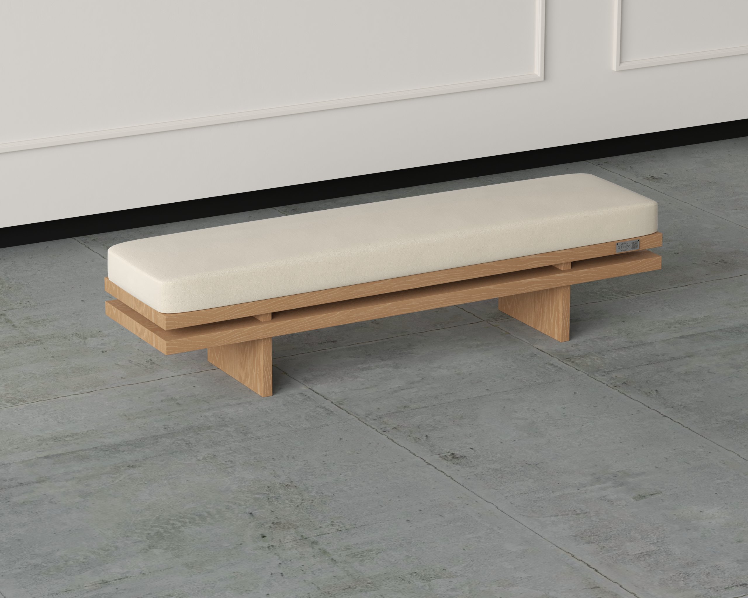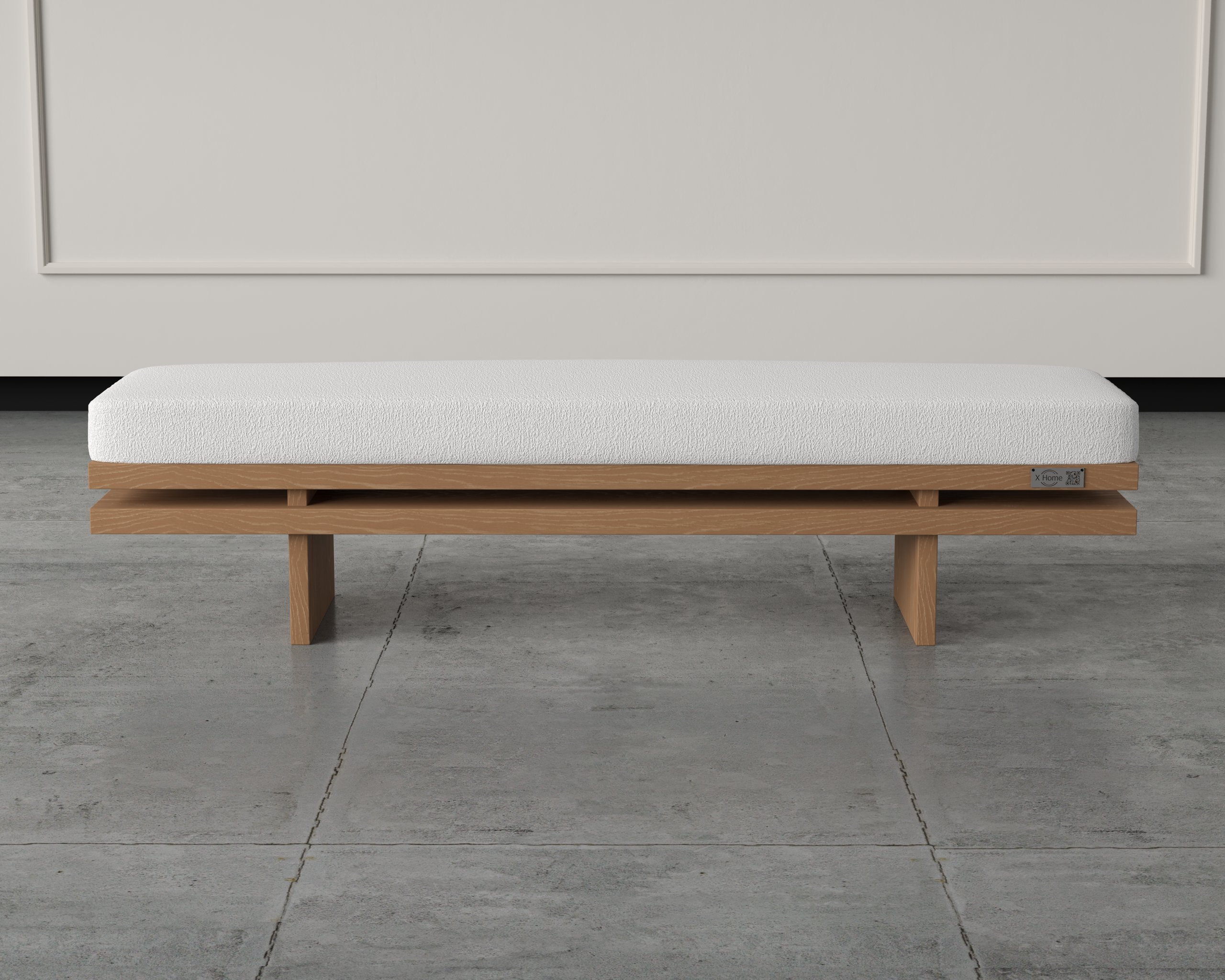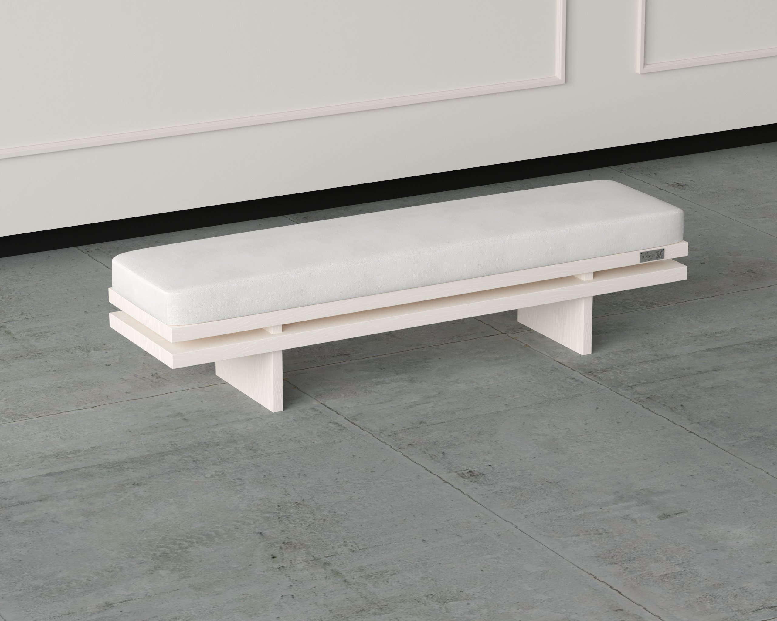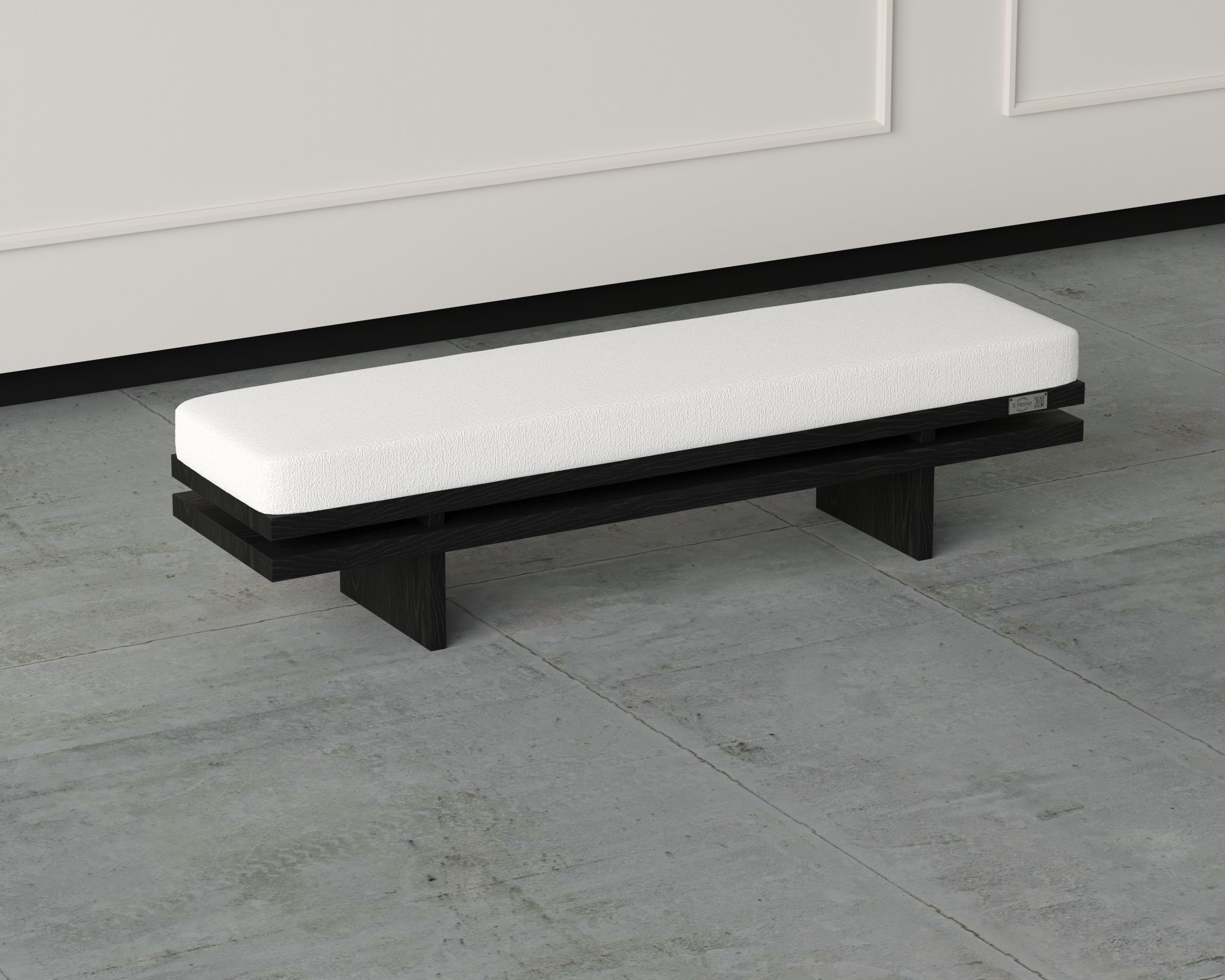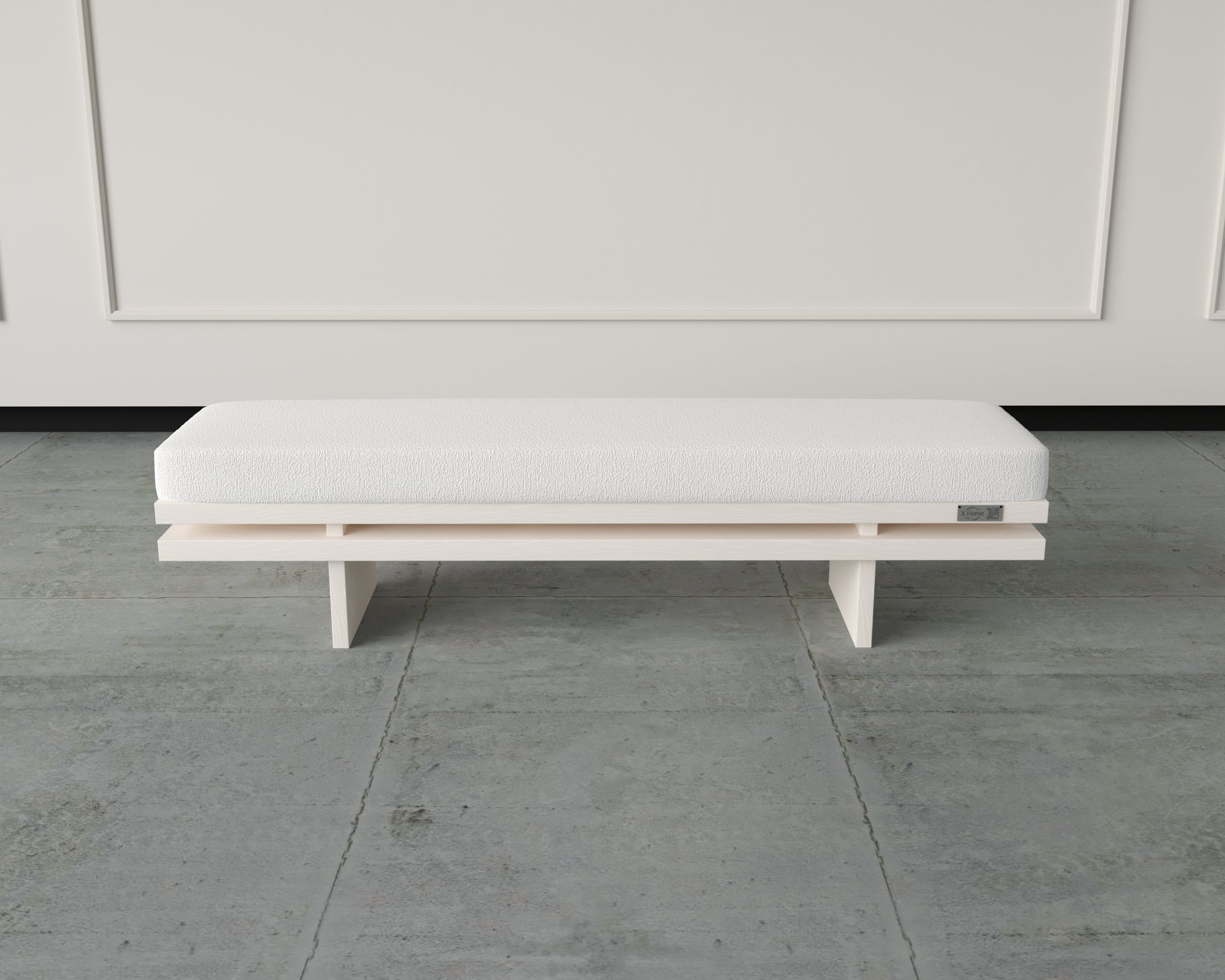 A sleek, elongated bench designed with clean lines and a modern structural frame. Built to enhance any space with its refined simplicity and robust comfort.