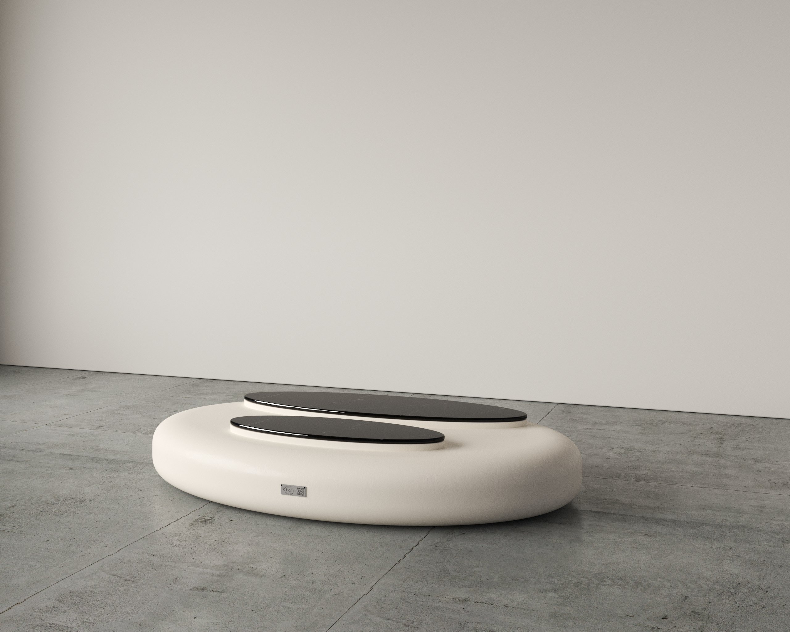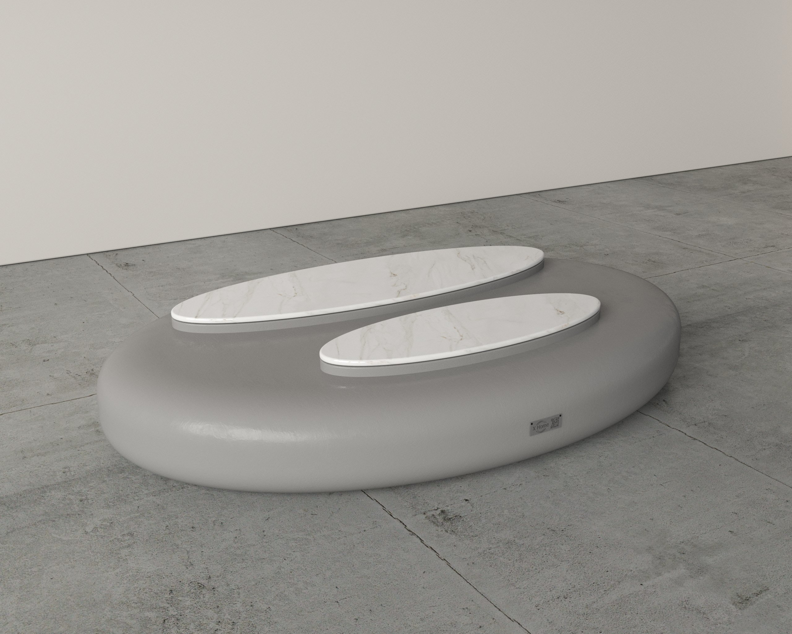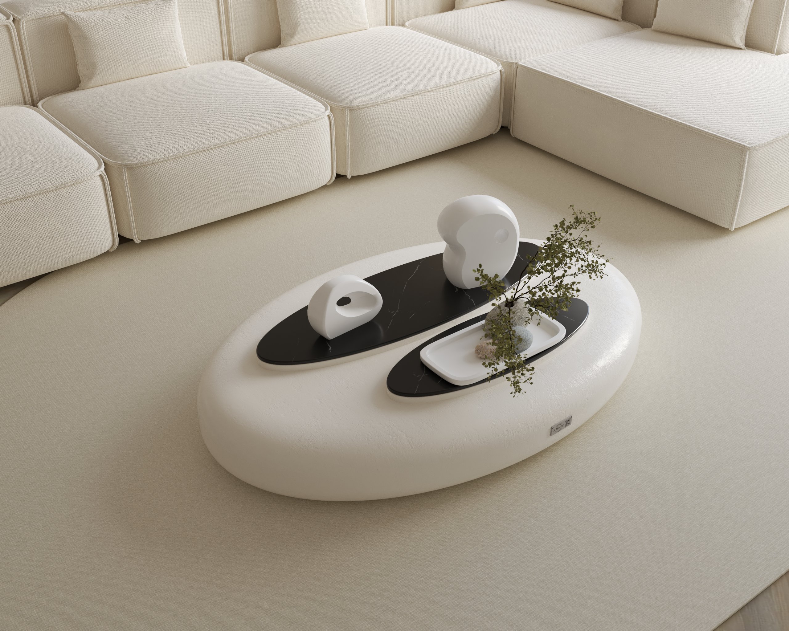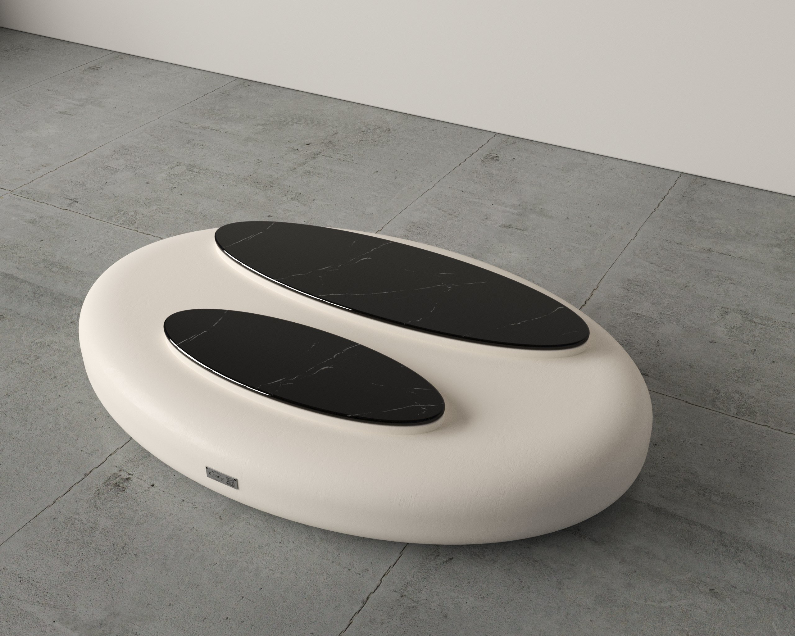 - Sculptural organic form with smooth, rounded contours.