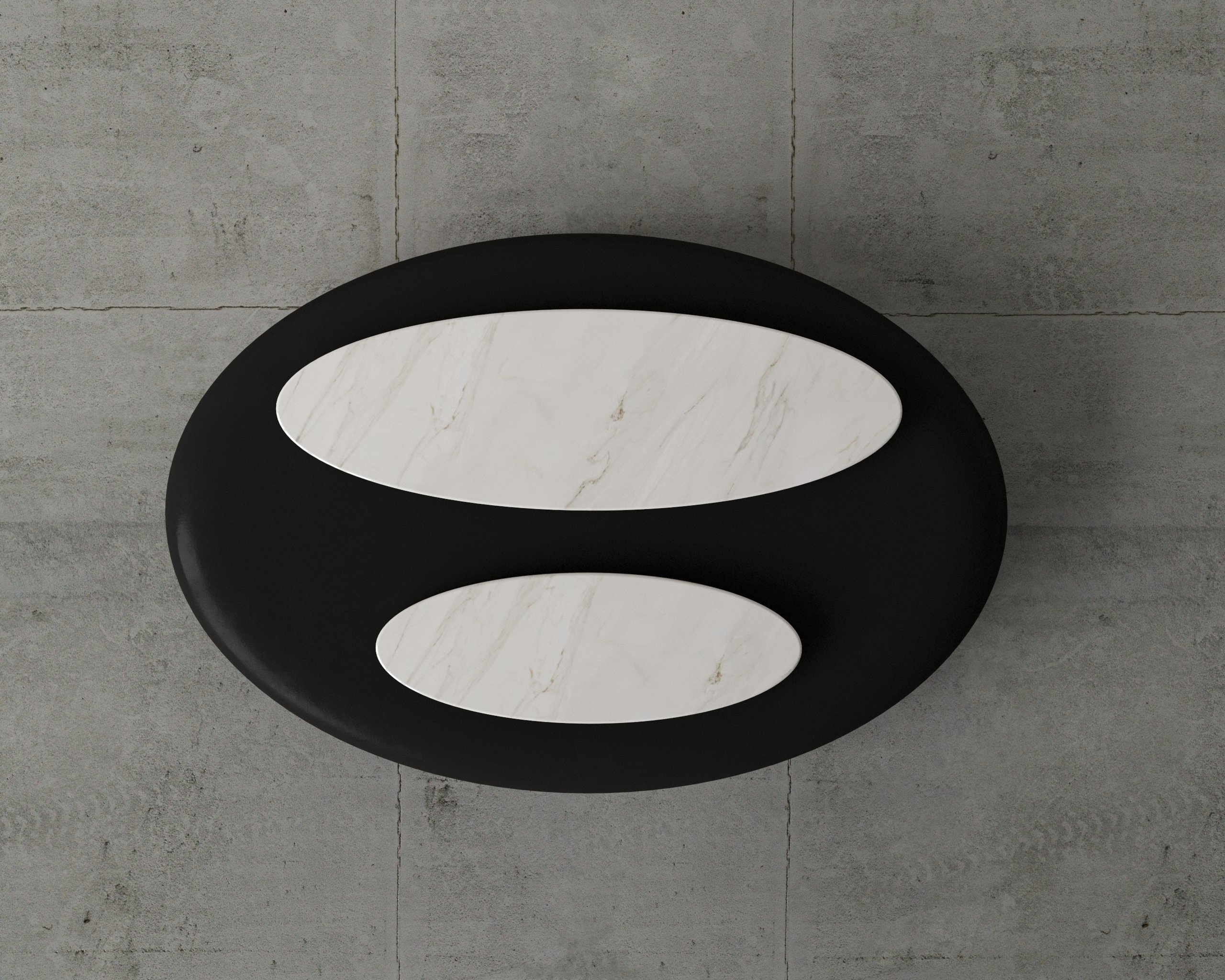 A sculptural coffee table featuring a refined marble top and organic curved form, designed to bring elegance and balance to modern interiors.